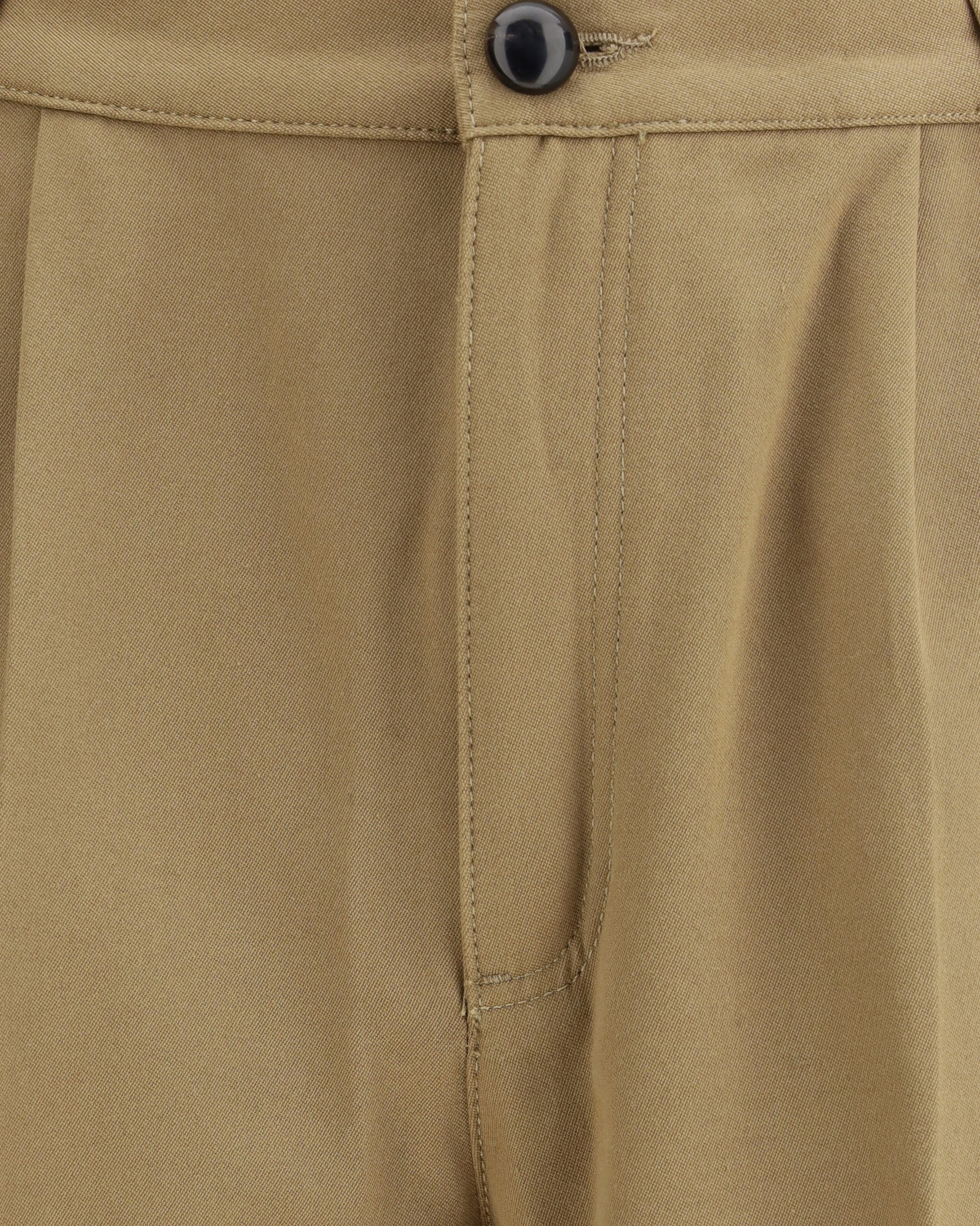 The Togo Pants by Namacheko embody the balance between sartorial precision and contemporary functionality. Crafted from soft cotton, they feature a sharply tailored silhouette with front slit pockets and a bold oversized button fastening with zip closure. Belt loops and welt back pockets enhance the clean lines, while the small pocket details on the right leg add a subtle utilitarian touch. A design that merges sophistication with everyday practicality.