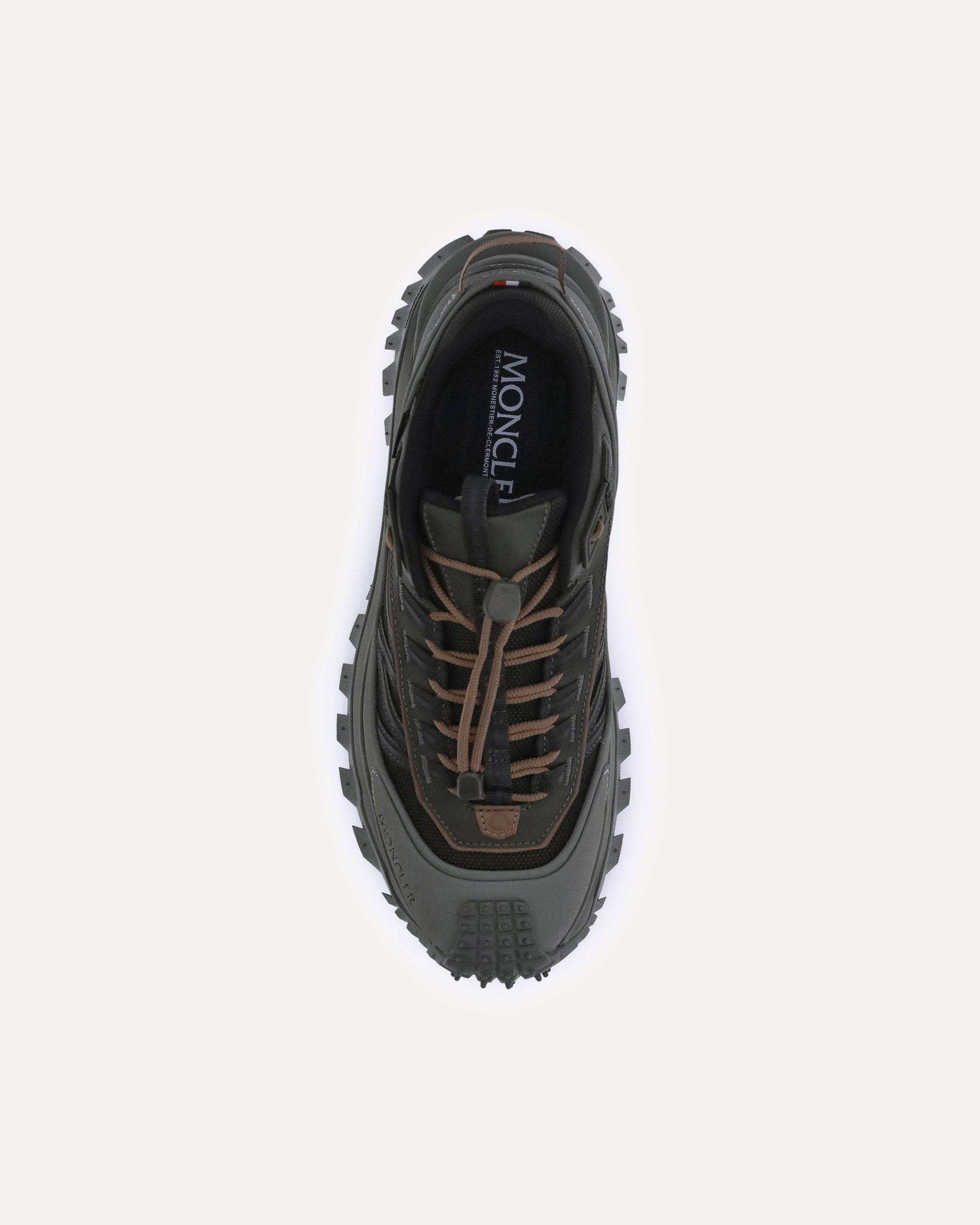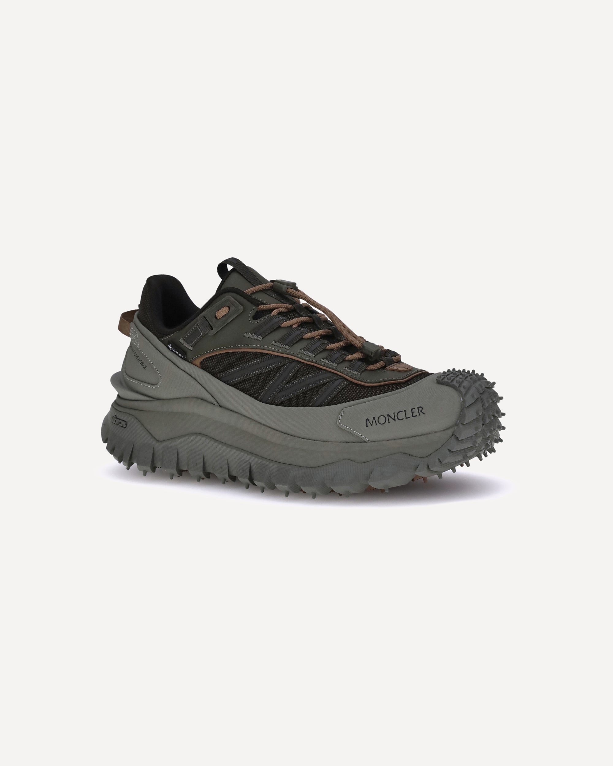Moncler's Trailgrip GTX Sneakers combine technical performance and urban style in a design designed to tackle any terrain. Made with nylon, Tectuff and leather uppers, they feature a mesh lining with a waterproof GORE-TEX membrane for total protection from the elements. The lace-up model features a TPU spoiler, EVA midsole and a carbon fiber layer between midsole and tread for maximum stability and responsiveness. The Vibram MEGAGRIP rubber tread provides excellent grip, while the OrthoLite® footbed ensures lasting comfort. Ideal for those looking for technical and waterproof men's sneakers by Moncler.