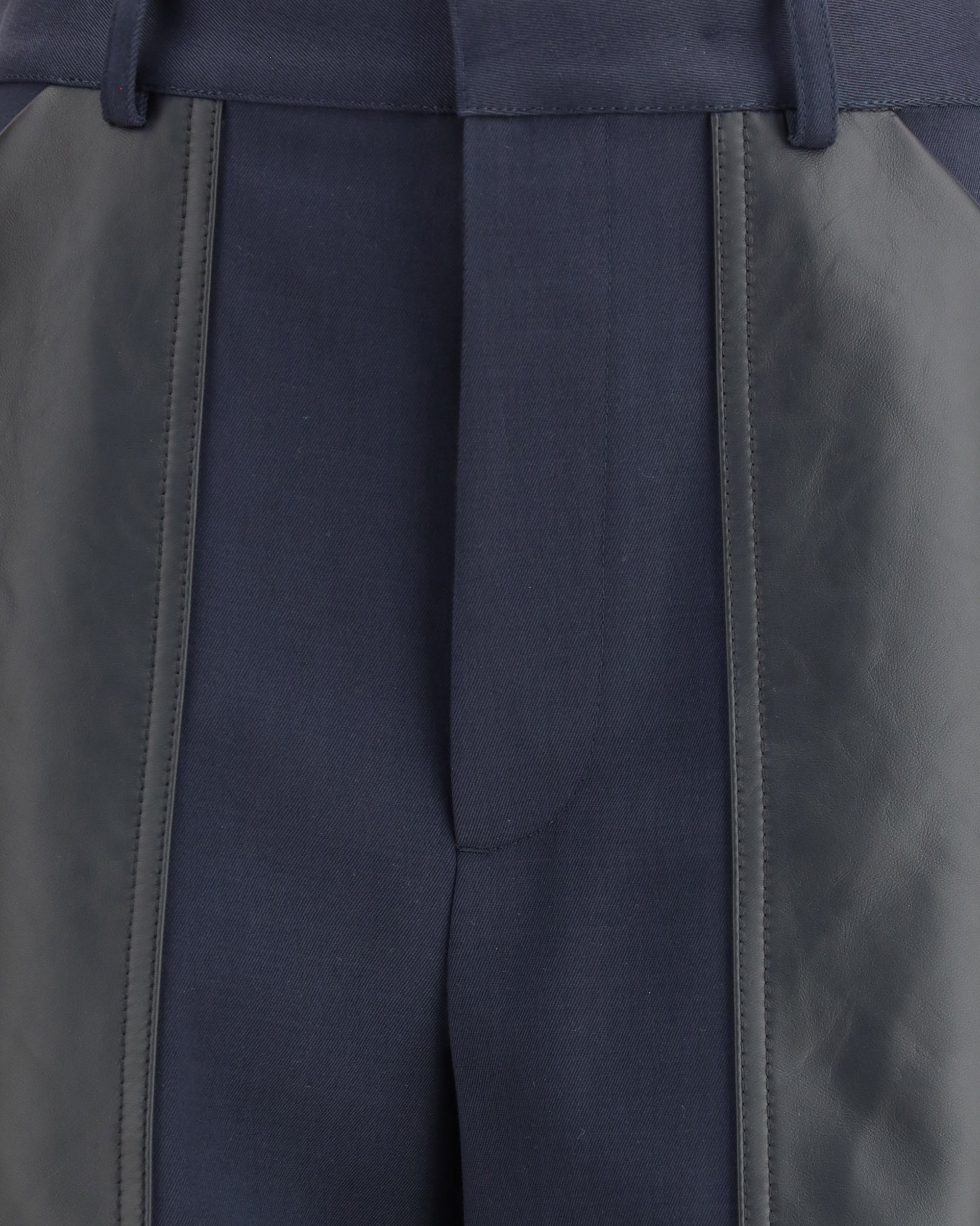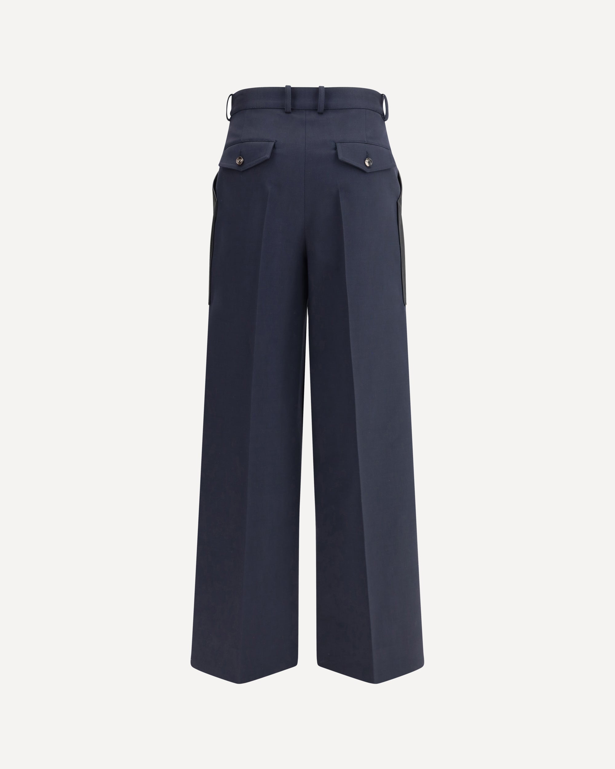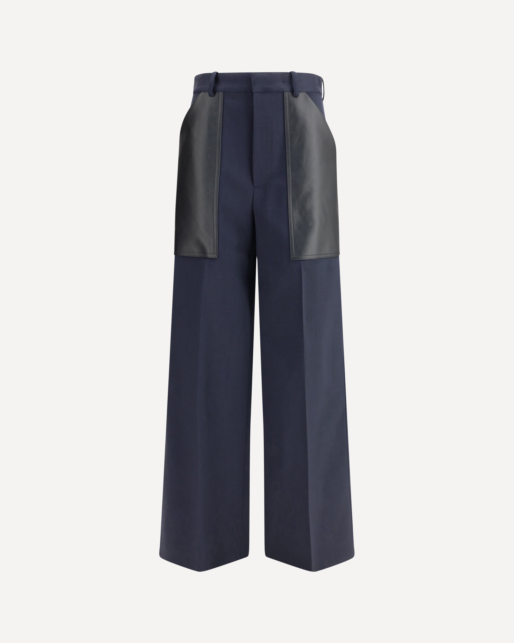 Bottega Veneta's wool and cotton Pants feature a wide-leg silhouette and are made from a blend of compact wool and cotton twill. Leather pockets and a zipper, button, and hook-and-eye closure complete the design, combining elegance and functionality.