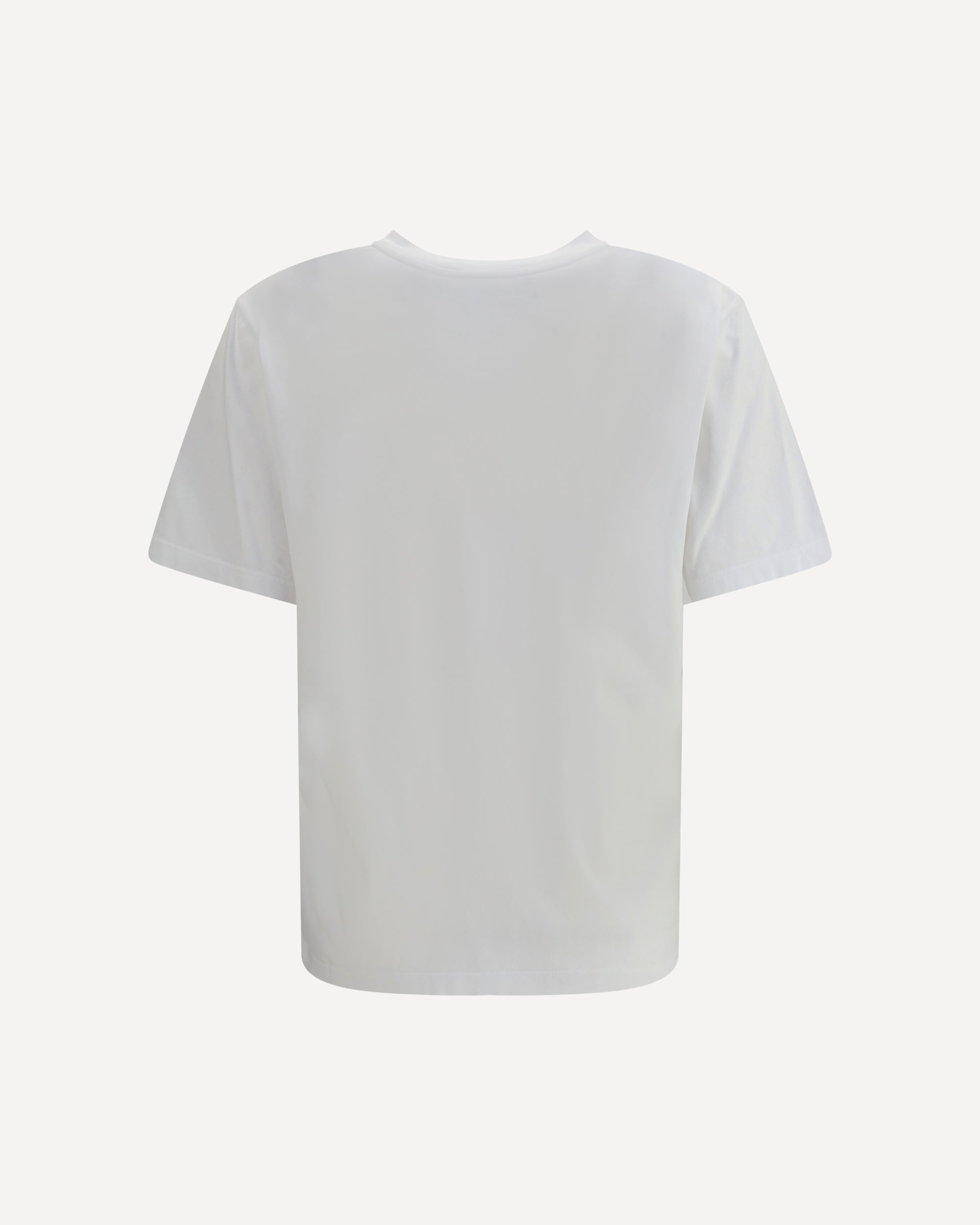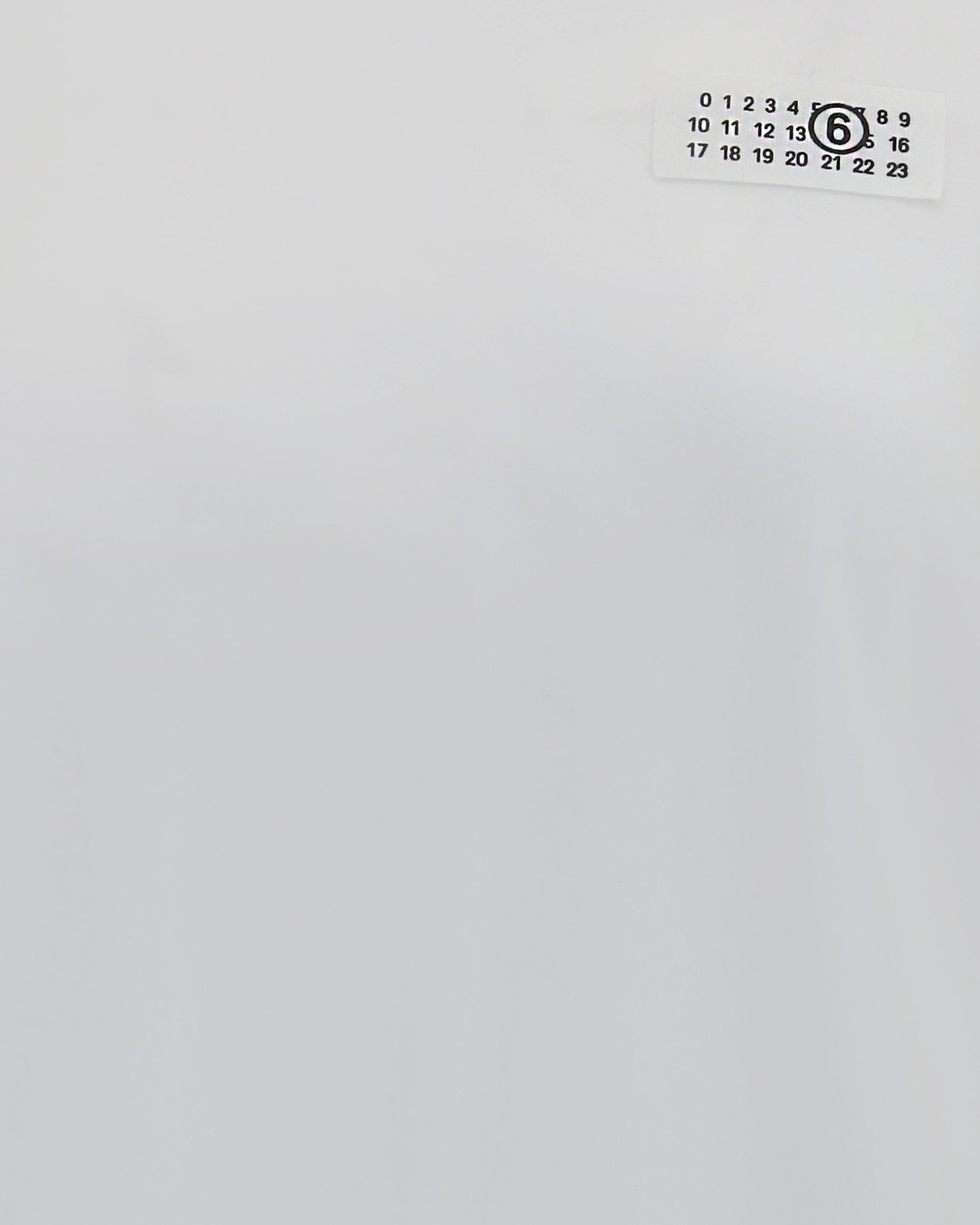 MM6's cotton T-Shirt features a ribbed crew neck that enhances its simple and essential silhouette. The applied logo on the front adds a distinctive detail, giving the garment a touch of personality and contemporary style.