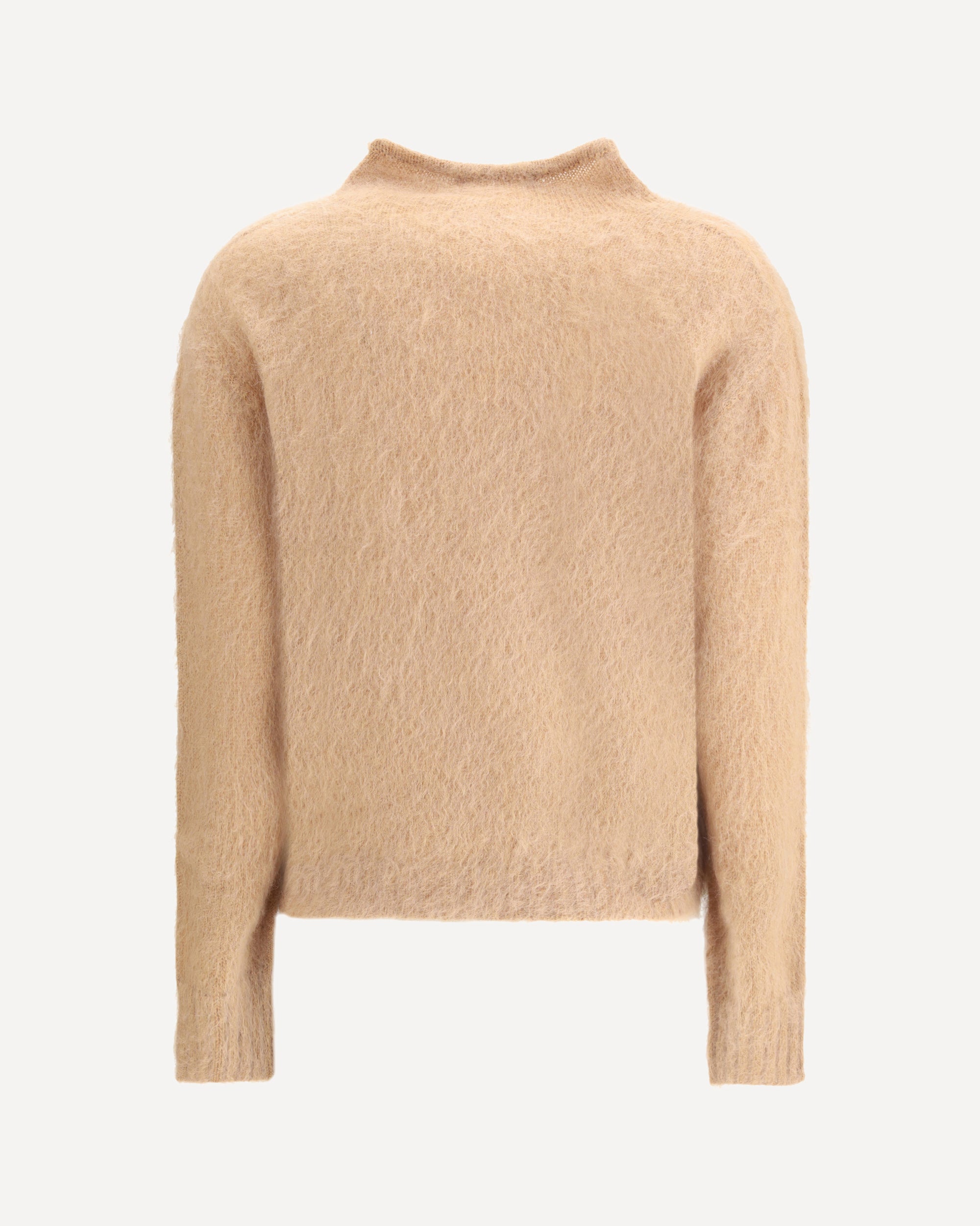 The turtleneck Sweater by Max Mara Studio, crafted from a brushed mohair-blend yarn with a seamless side construction for ultimate comfort and a fluid fit. Its soft, enveloping silhouette, high neckline, and ribbed trims embody effortless elegance and refined warmth.
