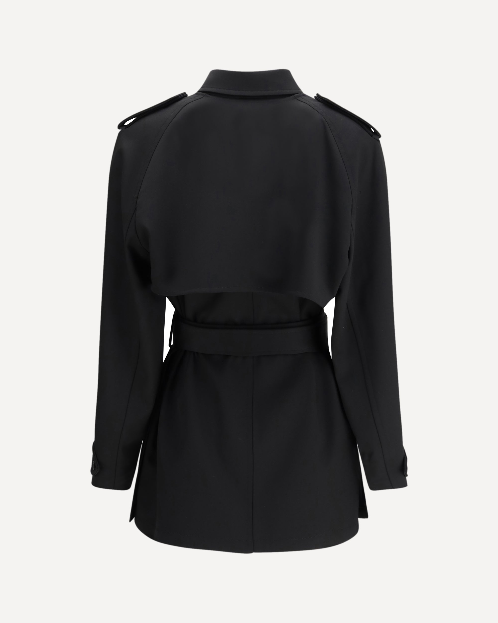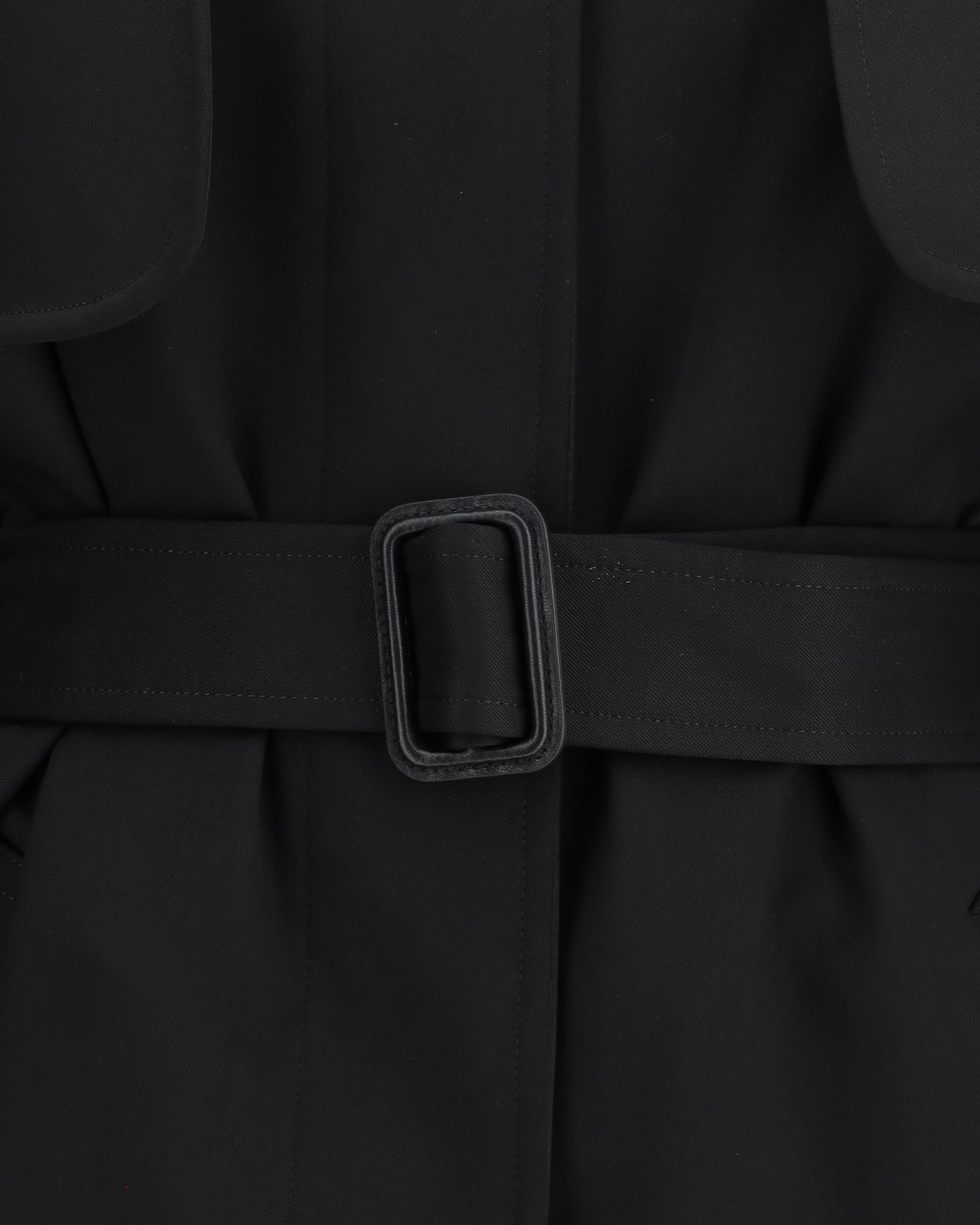 The Usuaia Jacket by The Row is a monochrome trench coat in double-face gabardine, a perfect fusion of wool and cashmere that offers elegance and comfort in any season. With a single-breasted design and detachable sleeves, this jacket is versatile and suitable for a variety of styles and weather conditions. Sophisticated and discreet slanted welt pockets add functionality to the look, while the concealed front button closure creates a clean, flawless silhouette. A removable belt with buckle defines the waist and allows you to customize the fit.