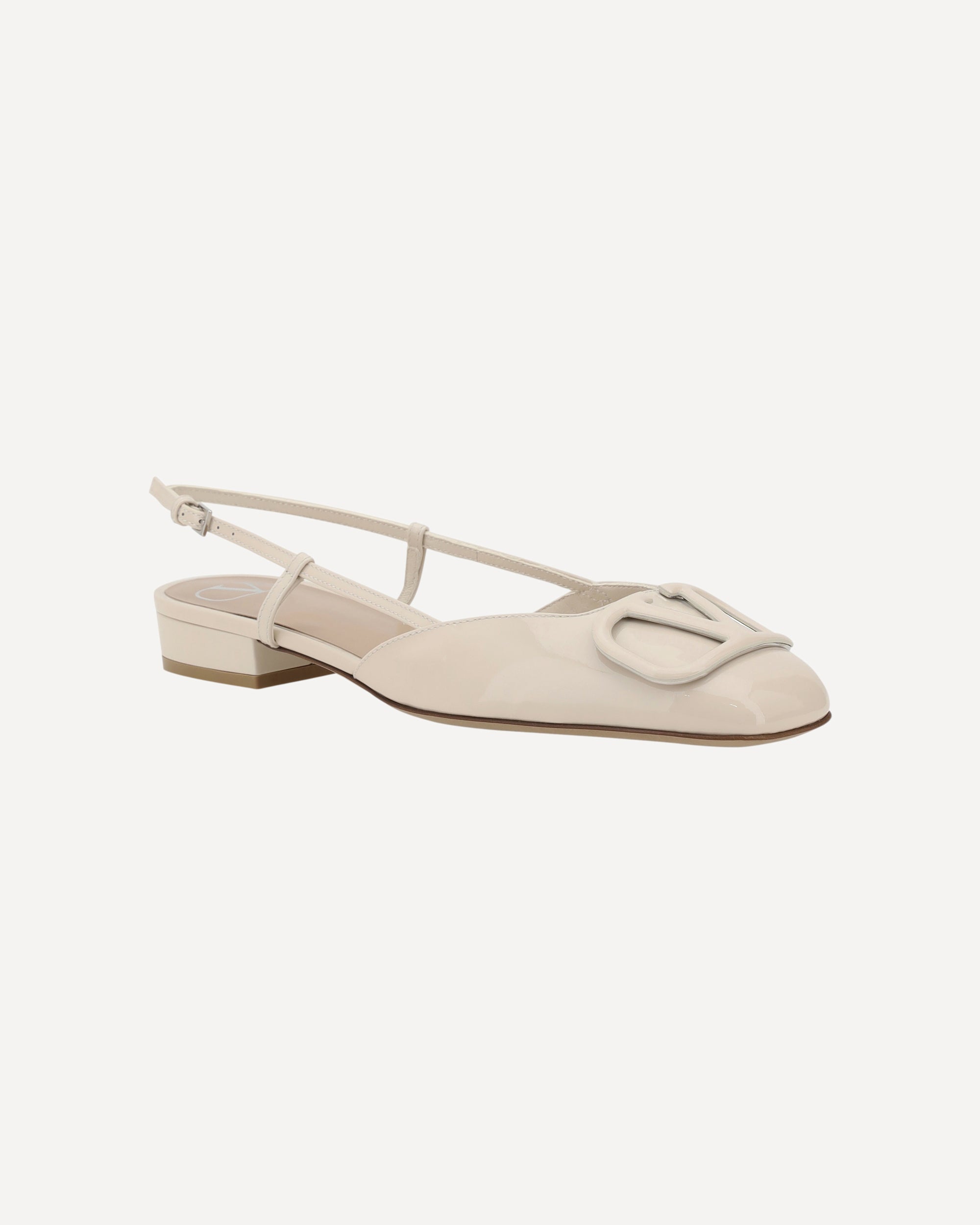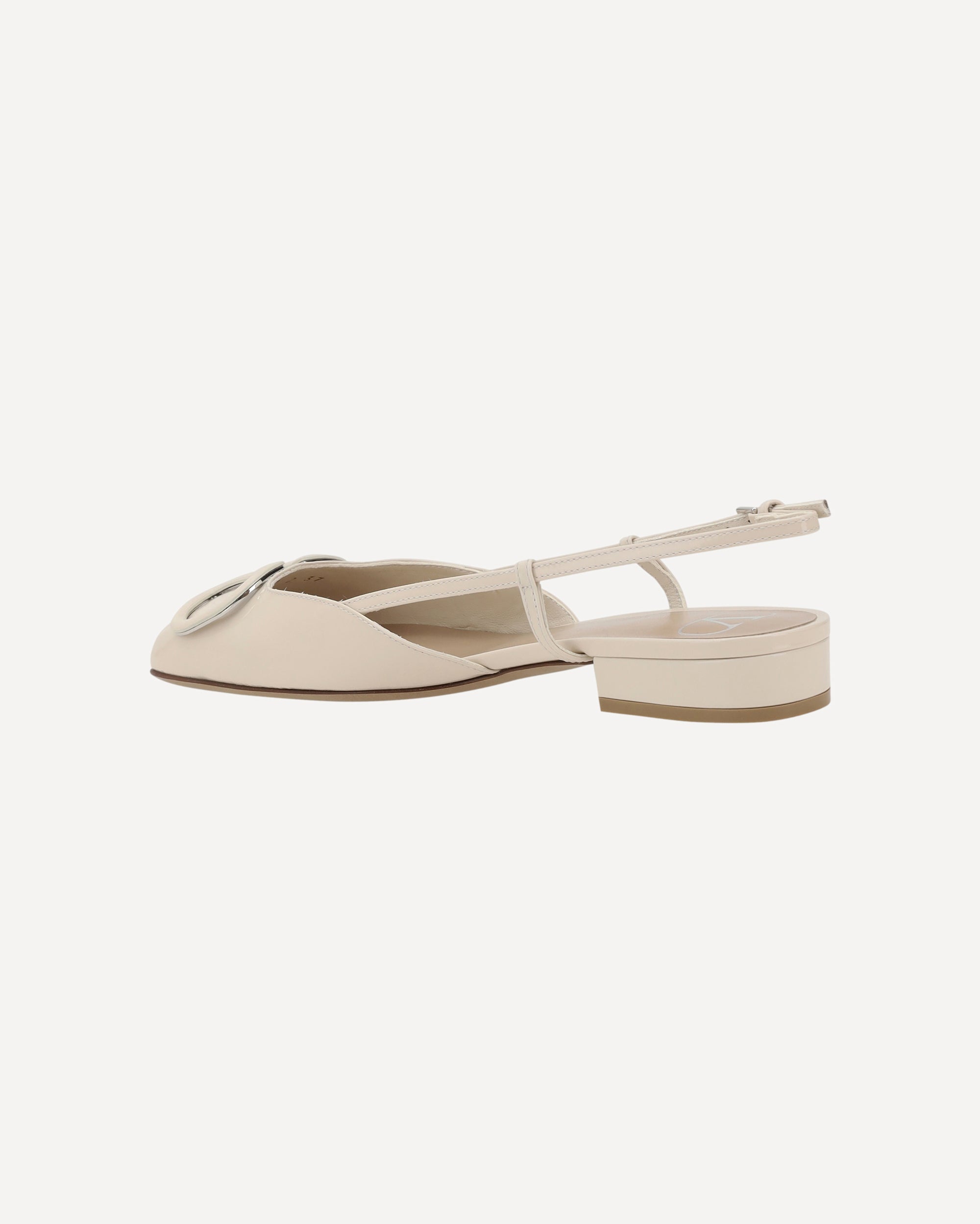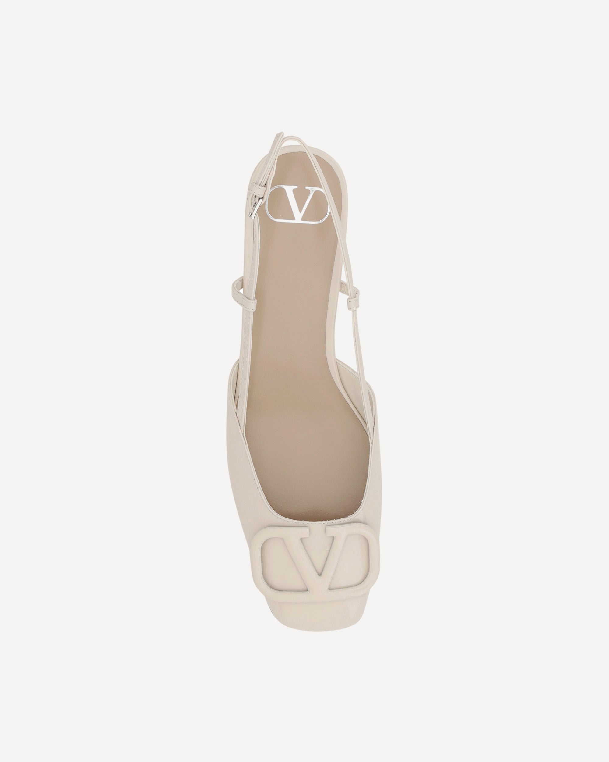 Valentino Garavani's leather VLogo Ballerinas feature a square toe and a three-dimensional plaque with the brand's iconic VLogo applied to the front. The adjustable slingback with buckle offers a customized fit, while the logo-embossed insole adds a distinctive touch of luxury. Elegant and sophisticated, perfect for any occasion.