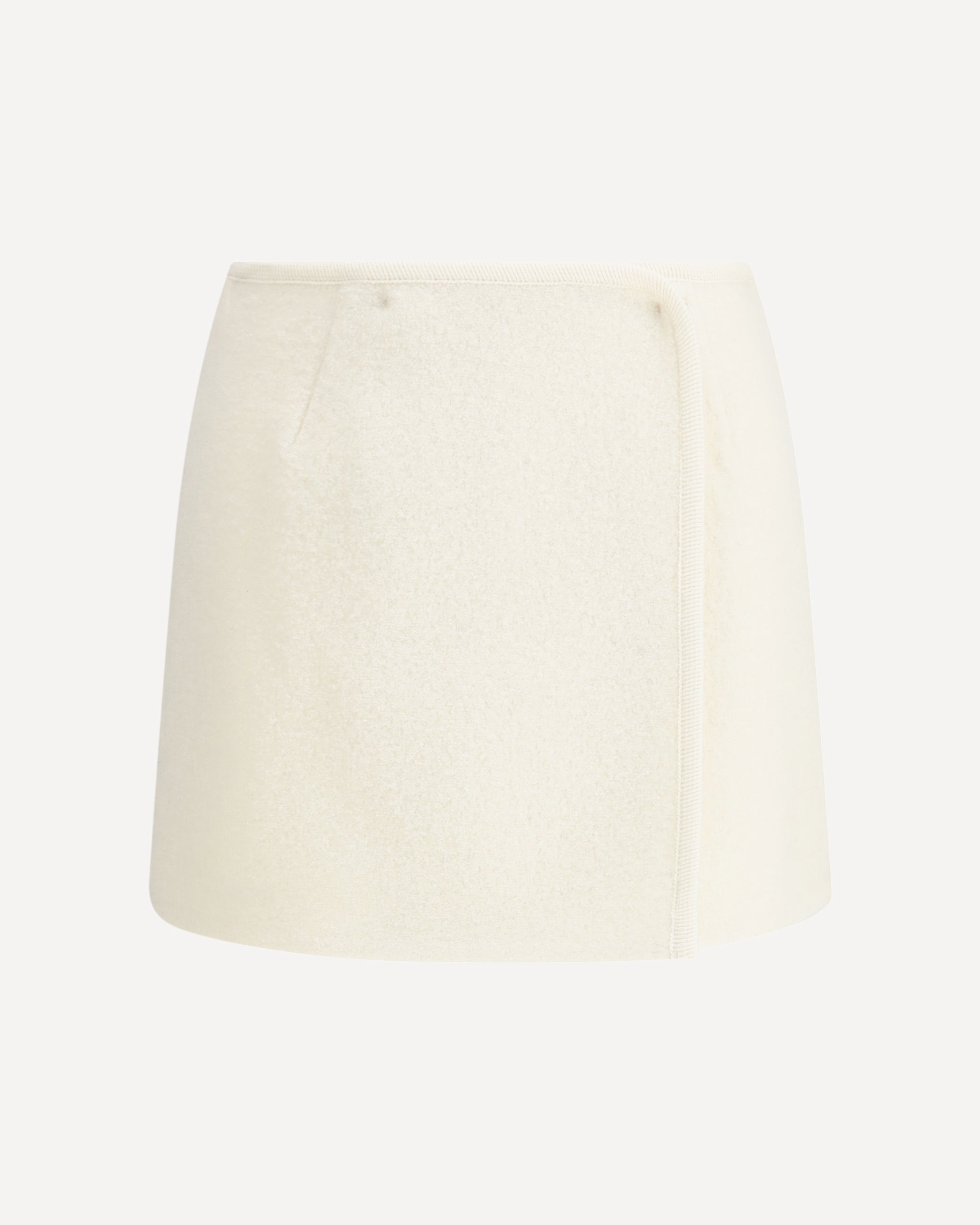 The Walker wrap mini Skirt by Rier is crafted from 100% wool, woven like a knit and felted like a Loden, ensuring lightness, natural elasticity, and wrinkle resistance while providing excellent temperature regulation. The design features a double-breasted overlapped closure with two hidden corozo nut buttons, sitting perfectly at the waist for an elegant and functional silhouette. Inspired by garments first documented in the Middle Ages and reinterpreted for modern times, the Walker is an icon of craftsmanship and sustainability, as it does not release microplastics and requires minimal care.