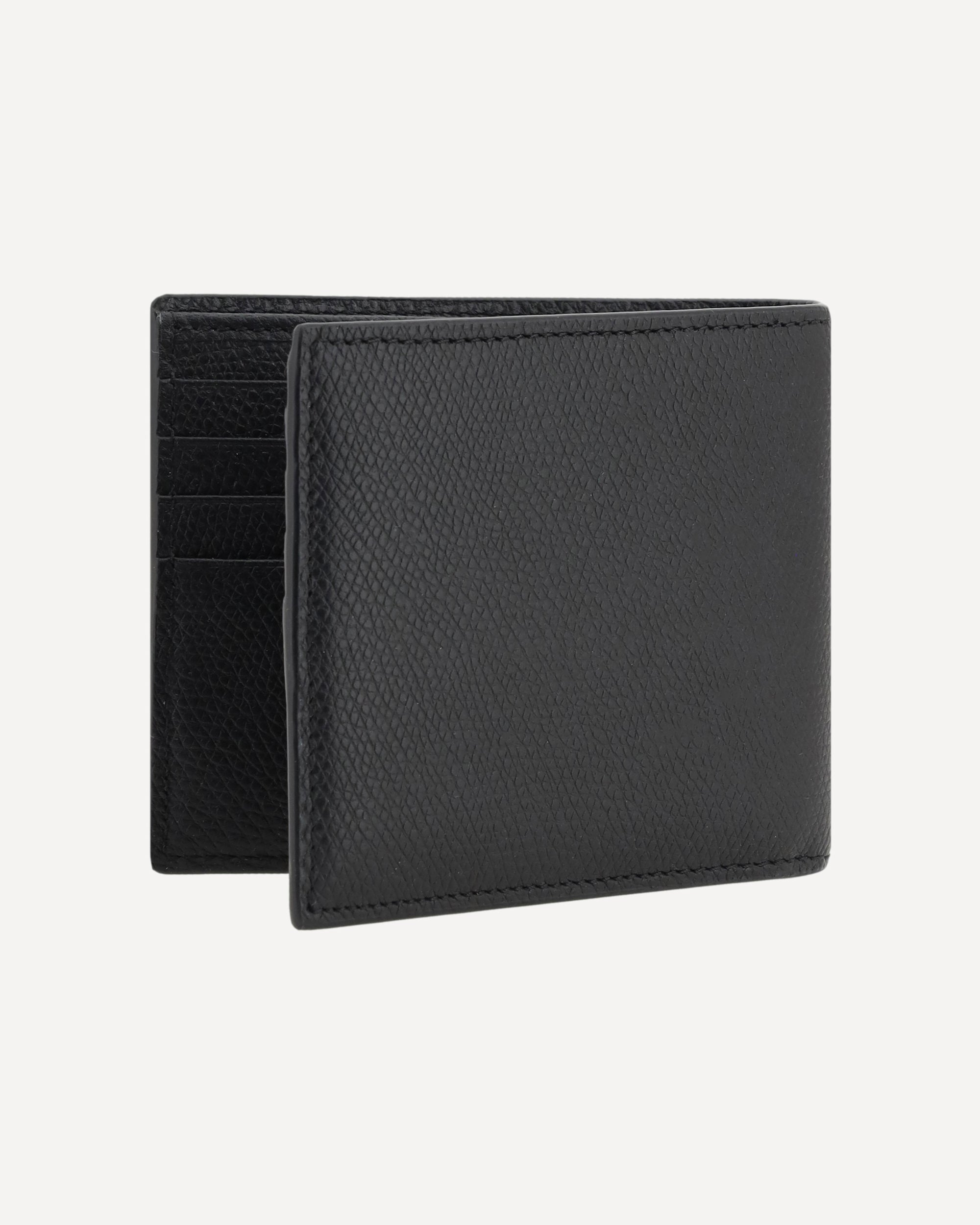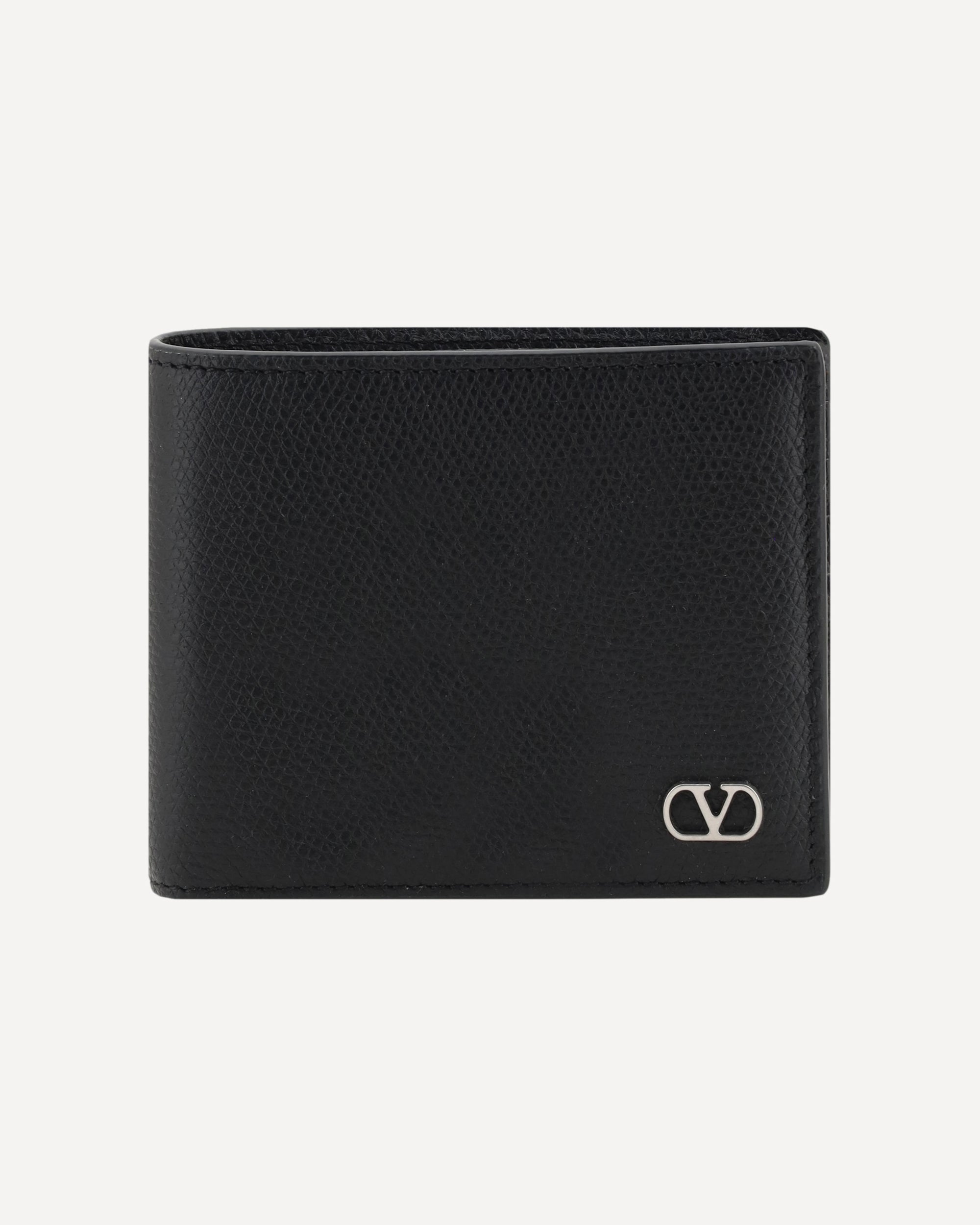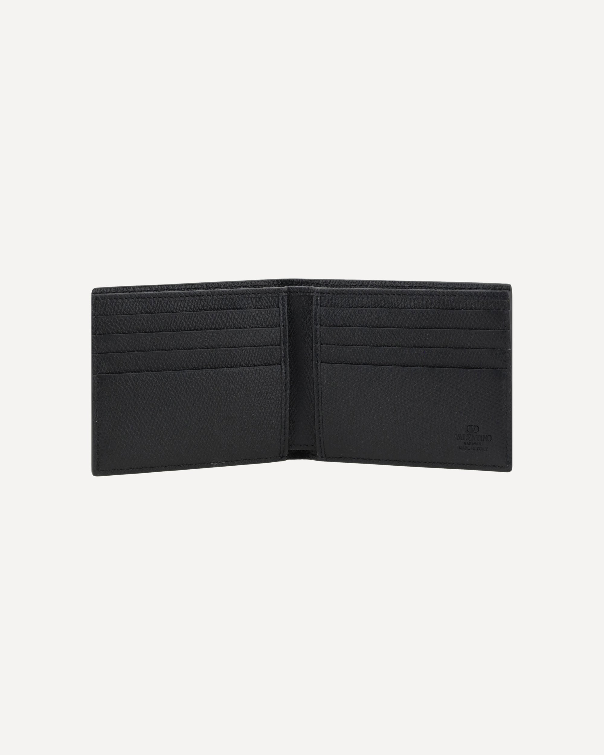 Leather Valentino Garavani Wallet, billfold model, three-dimensional iconic Vlogo brand plaque applied on front, bill compartment, card slot, iconic brand monogram printed in contrasting pressure on interior panel.