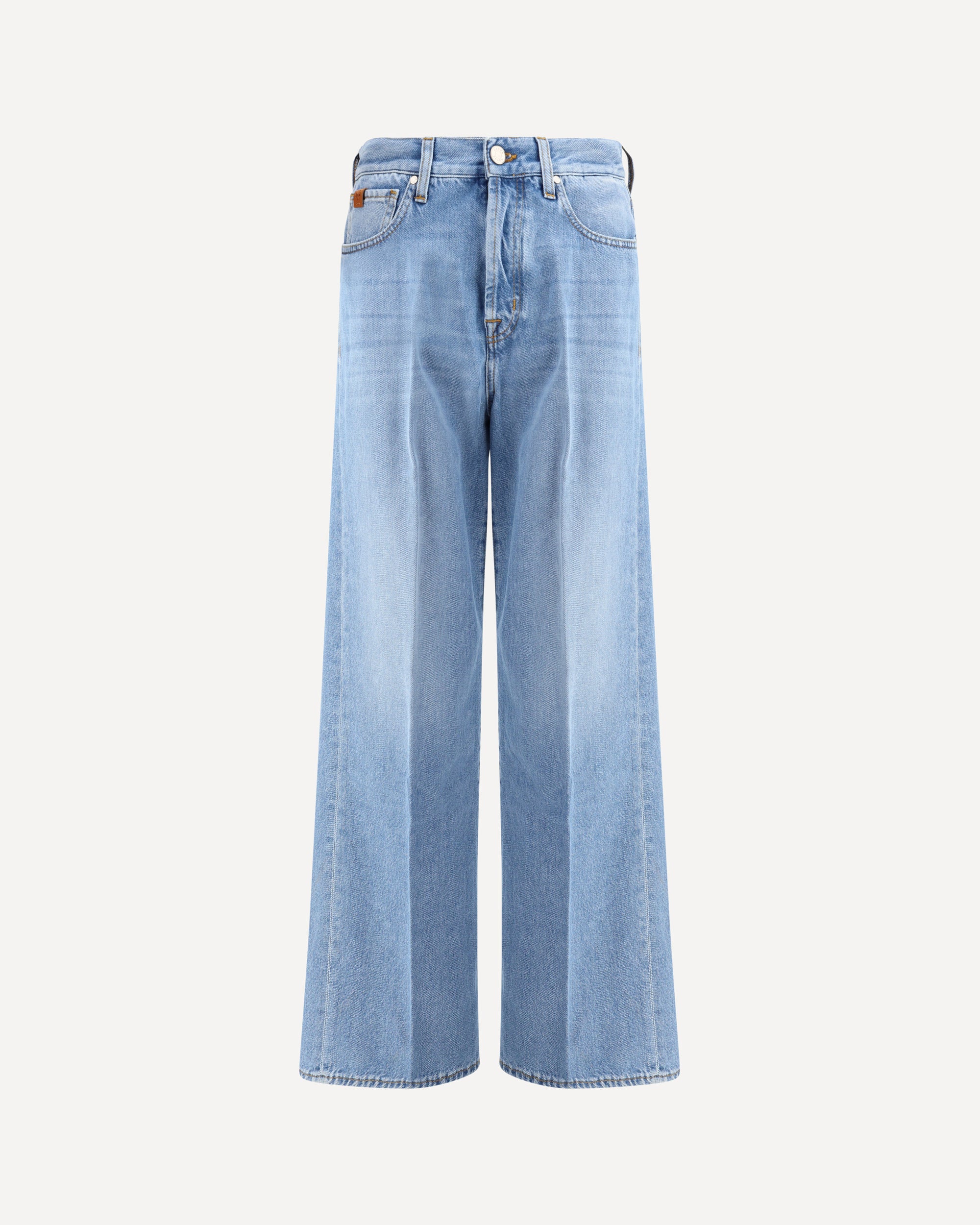 Jacob Cohen's wide leg Jeans are a stylish, high-quality choice. Their wide leg fit offers a modern and comfortable look, perfect for those seeking a balance between style and comfort. Like classic jeans, they feature five pockets: two back pockets, two side pockets and a coin pocket. The front closure is with zip and button, while the belt loops on the waist allow you to add a belt to further customize the look. The medium waist makes the model versatile, adapting to different types of silhouettes. A unique detail of these jeans is the iconic perfume that characterizes each Jacob Cohen piece, a signature that adds a touch of exclusivity and sophistication to the design.