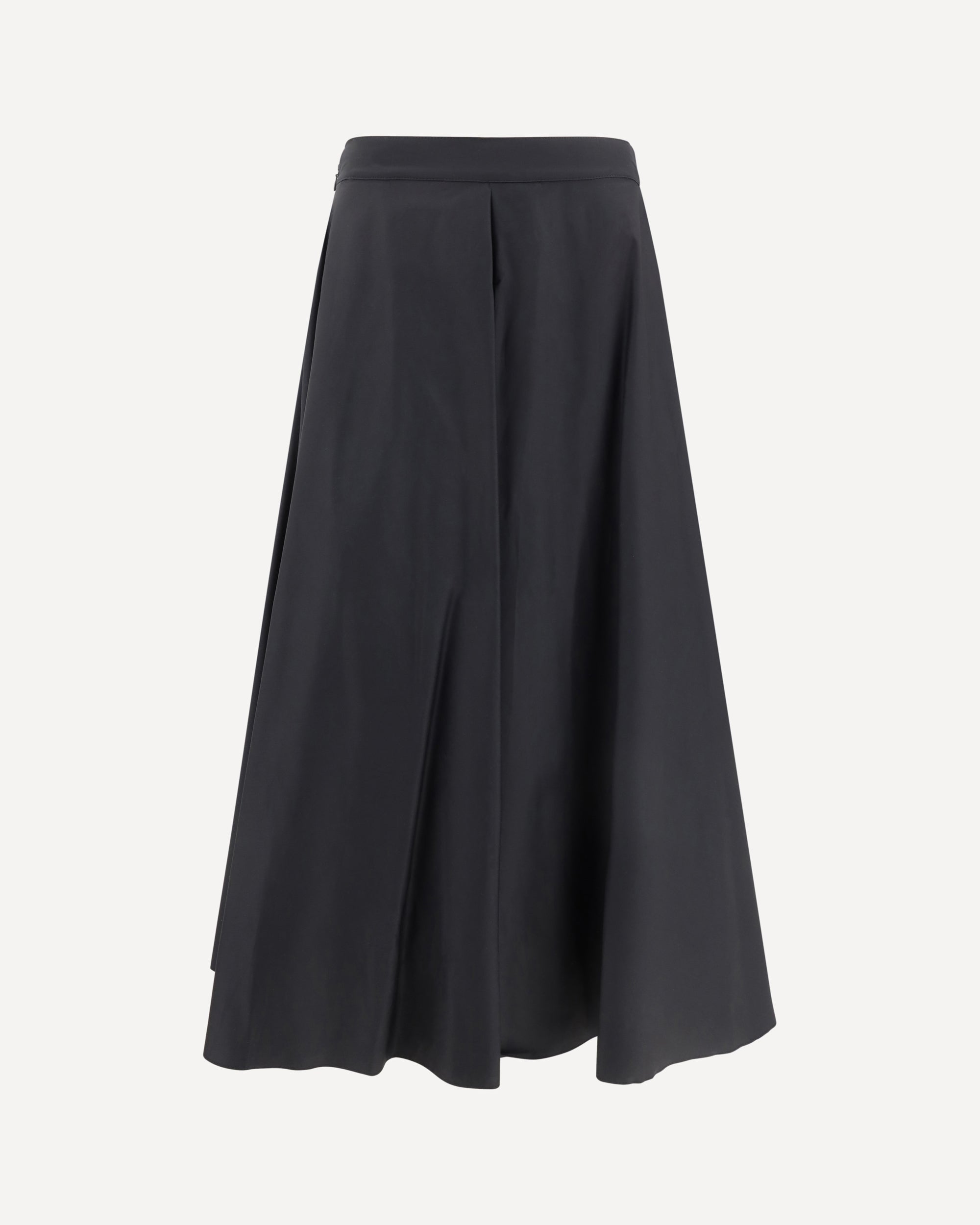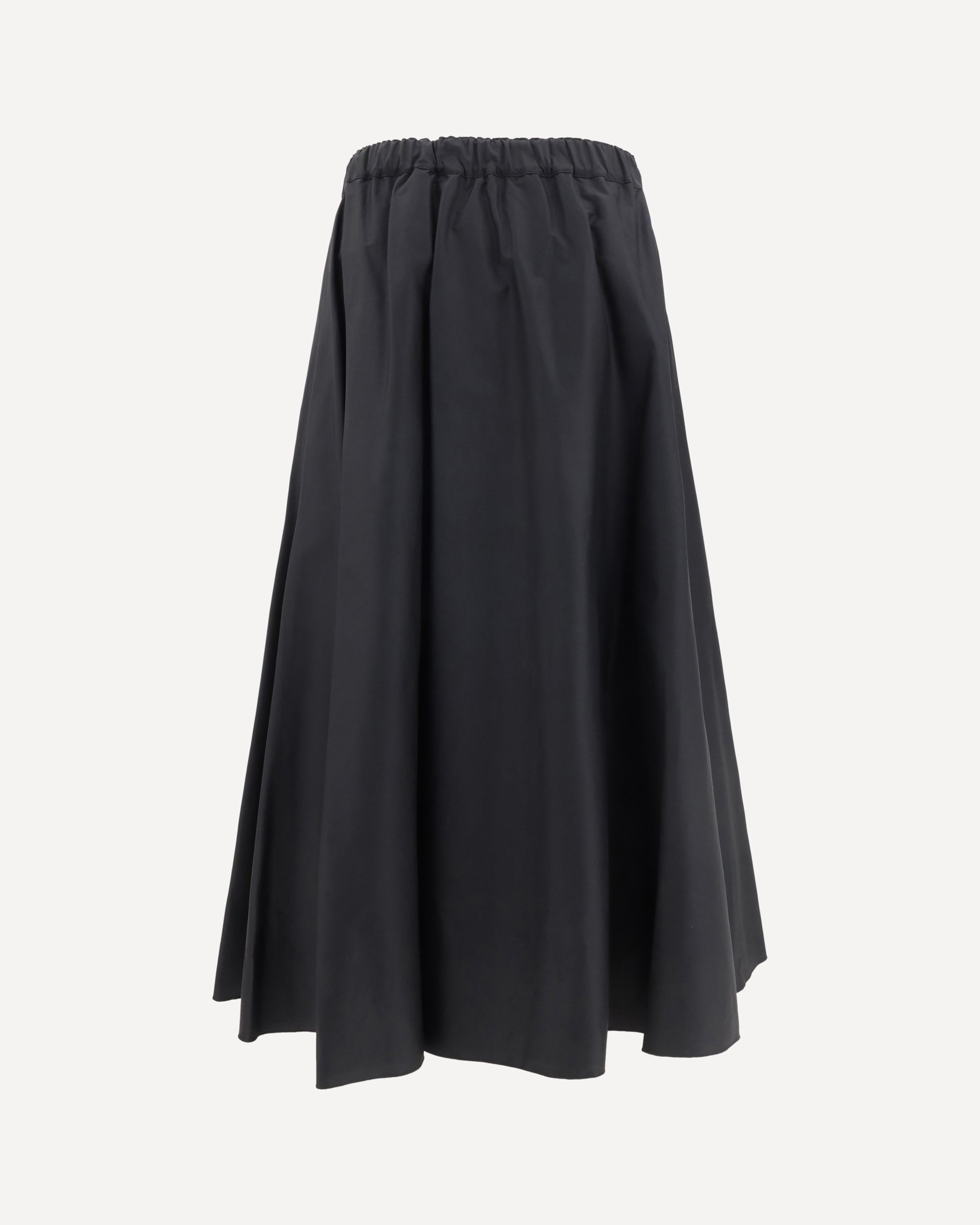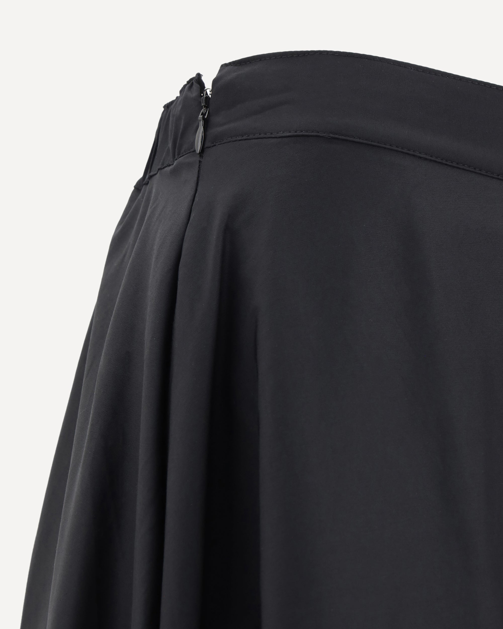 Cruna's wide midi Skirt is an elegant and versatile garment that combines comfort and sophistication. The elasticated waistband at the back ensures a comfortable and flexible fit, fitting the figure perfectly. The side zipper closure makes it easy to wear, adding a touch of practicality to the design. With its loose, flowing silhouette, this skirt is perfect for a sophisticated yet relaxed look, ideal for formal occasions or for a daytime outfit that doesn't sacrifice a touch of class.