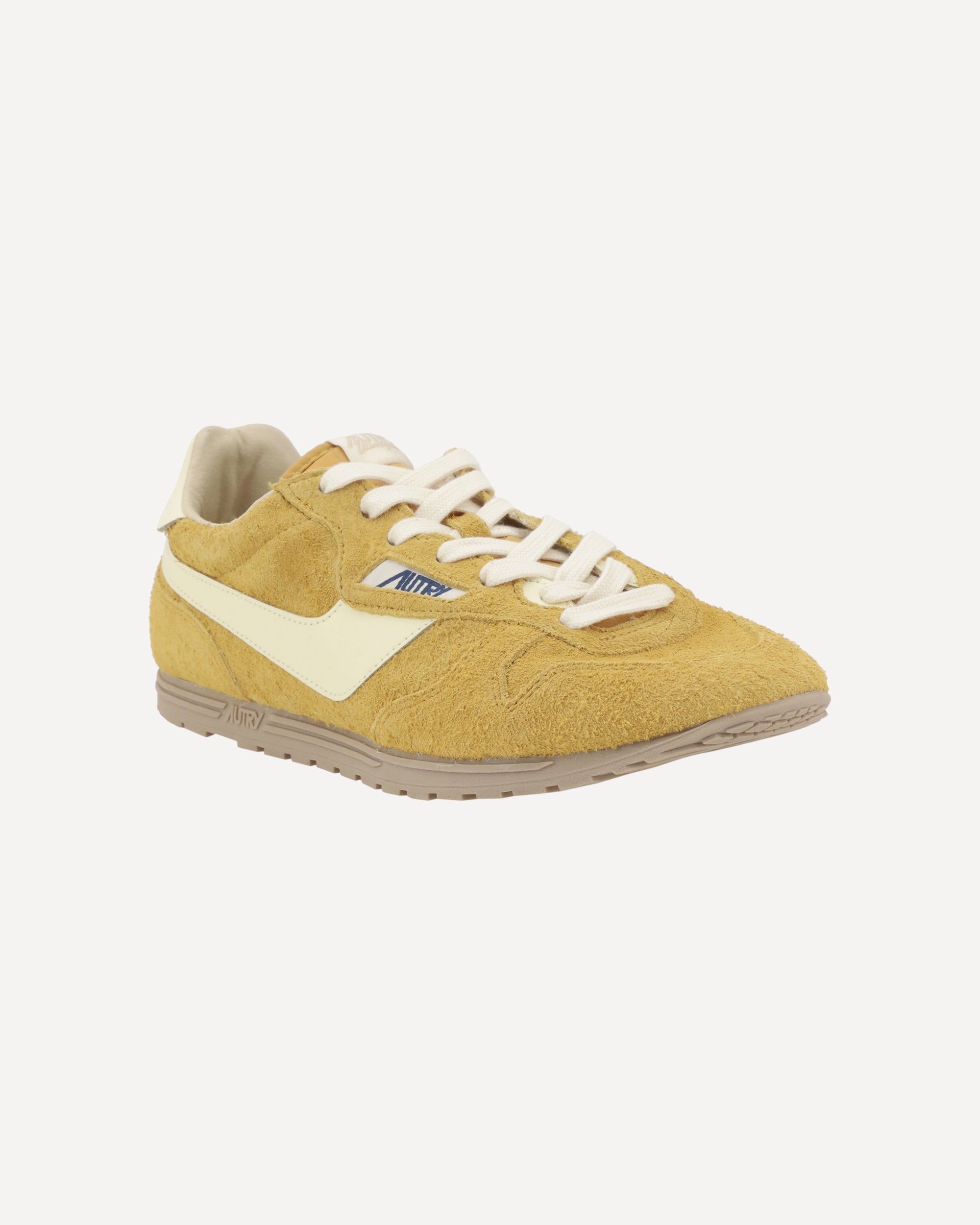The Windspin Low suede Sneakers by Autry combine elegance and comfort in a refined design. The elongated toe gives a dynamic, modern look, while the lace-up front closure ensures a secure, adjustable fit. The iconic contrasting monogram on the side panel adds distinctive detail without compromising the simplicity of the design. The flat sole offers both stability and comfort, making these sneakers perfect for a casual, yet still polished and sophisticated look.