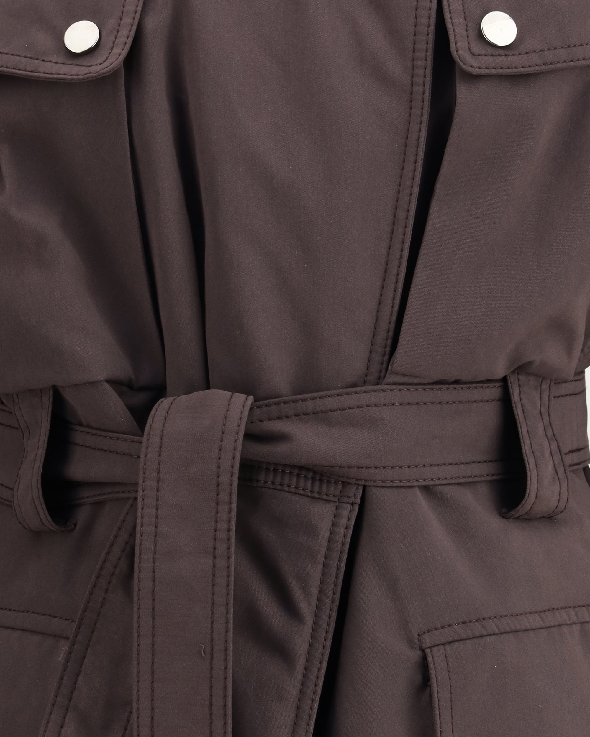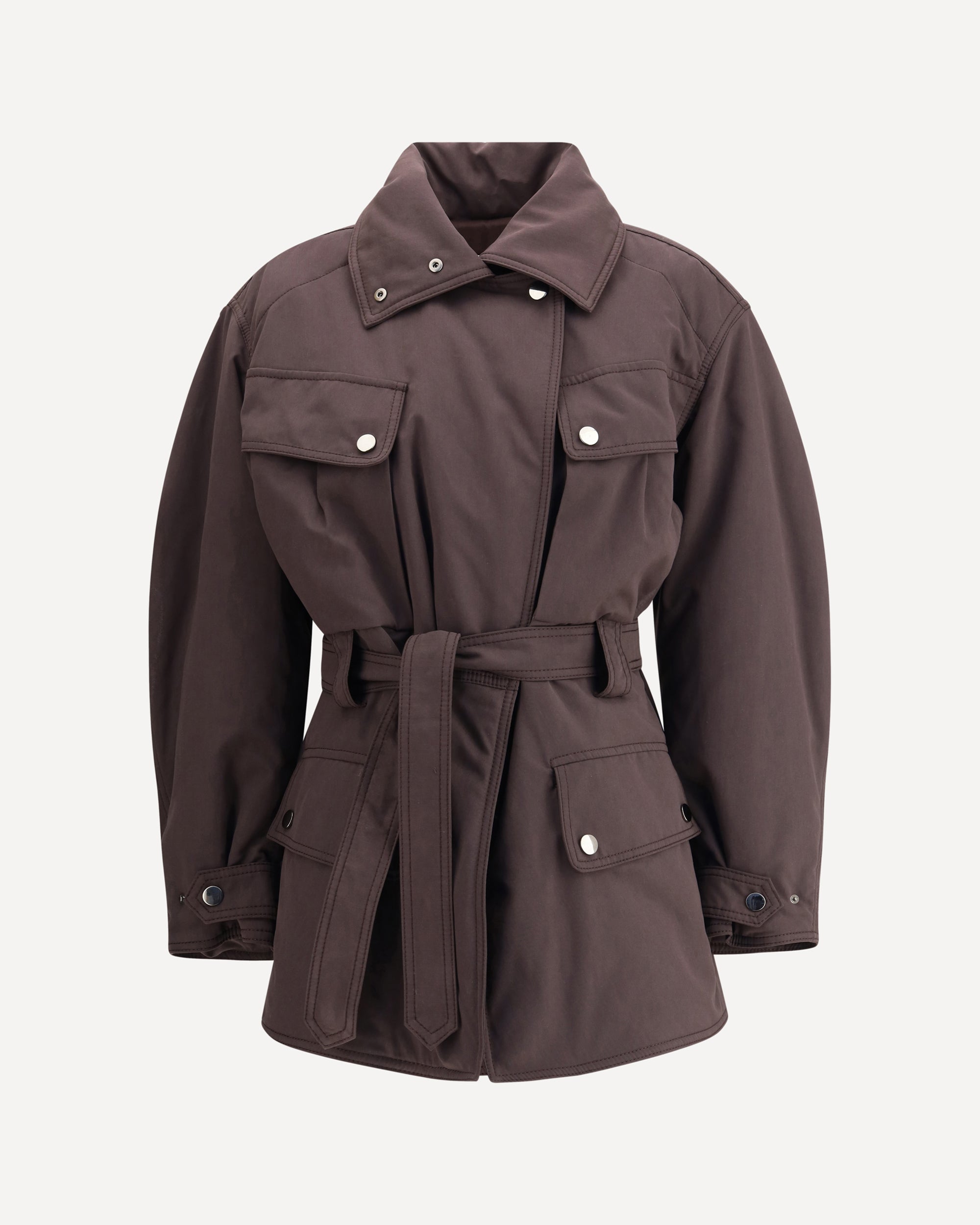 The Xandra Padded Jacket by The Andamane is a warm and functional garment designed to face the cold season in style. Featuring a snap button closure and a wrap-around high collar, it has four flap pockets on the front that combine practicality and aesthetics. Completing the design is the matching knotted belt, which allows you to enhance the silhouette with a feminine and refined touch.
