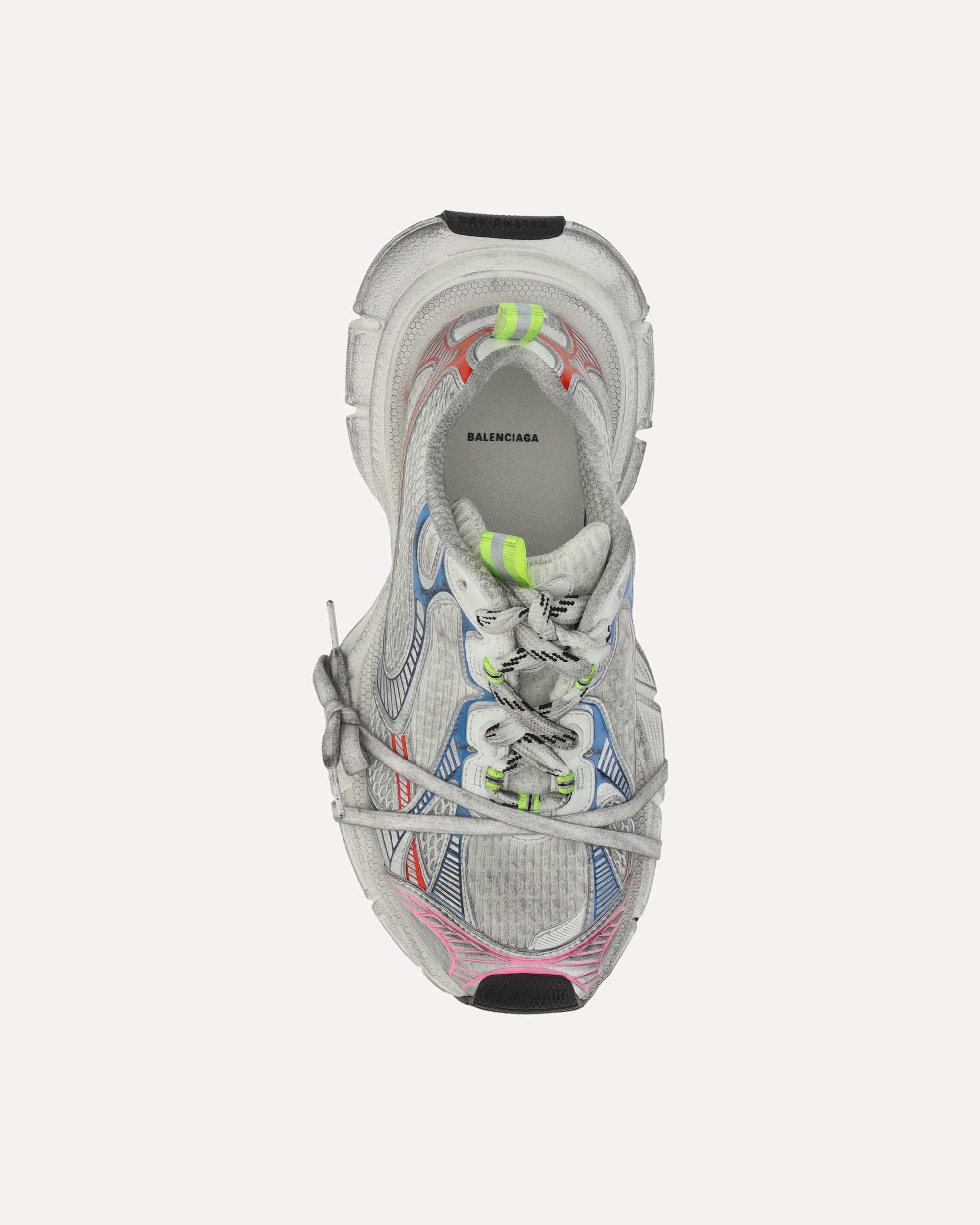 The 3XL Sneakers by Balenciaga feature an oversized design with a textured chunky rubber sole, giving a bold look. The front closure is made with multiple laces, offering a customized fit. The body of the shoe is composed of mesh and mesh panels, creating a dynamic and lightweight visual effect. The closure features a double tongue for a sporty and functional look. Balenciaga's logo is printed on both the sole and insole, while reflective details add a stylish, technical touch. A perfect blend of comfort and cutting-edge design.