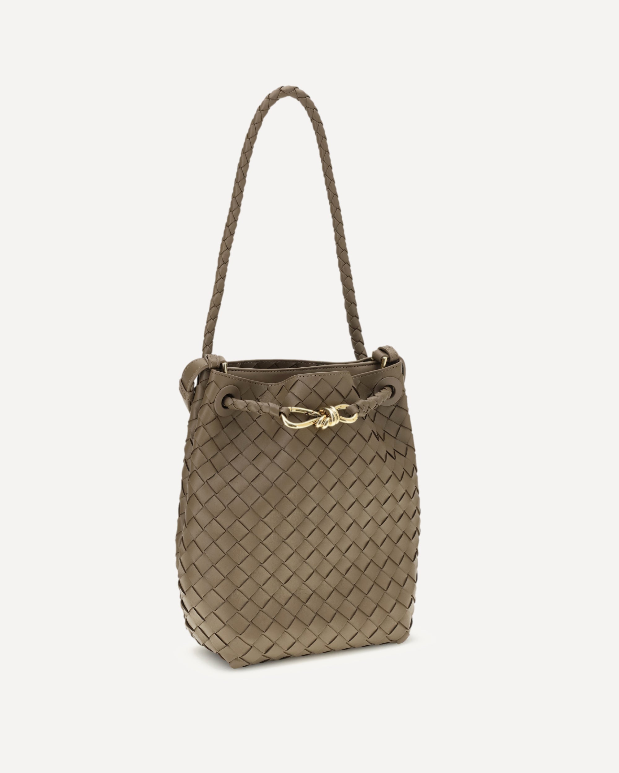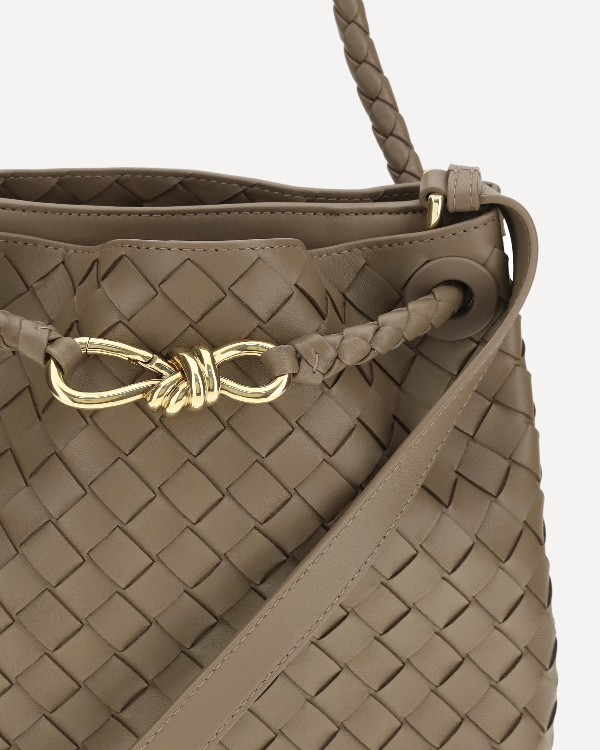 The Andiamo Bucket small Bag by Bottega Veneta is a masterpiece of elegance and craftsmanship. Crafted from soft leather with the iconic Intrecciato workmanship, this bag expresses the brand's understated luxury. The emblematic Knot detail adds a distinctive touch, while the sliding, adjustable shoulder strap ensures practicality and comfort. The interior leather pocket with Intrecciato work completes the design, offering extra functionality without compromising style. Versatile and refined, it is perfect for those seeking a compact yet sophisticated accessory.