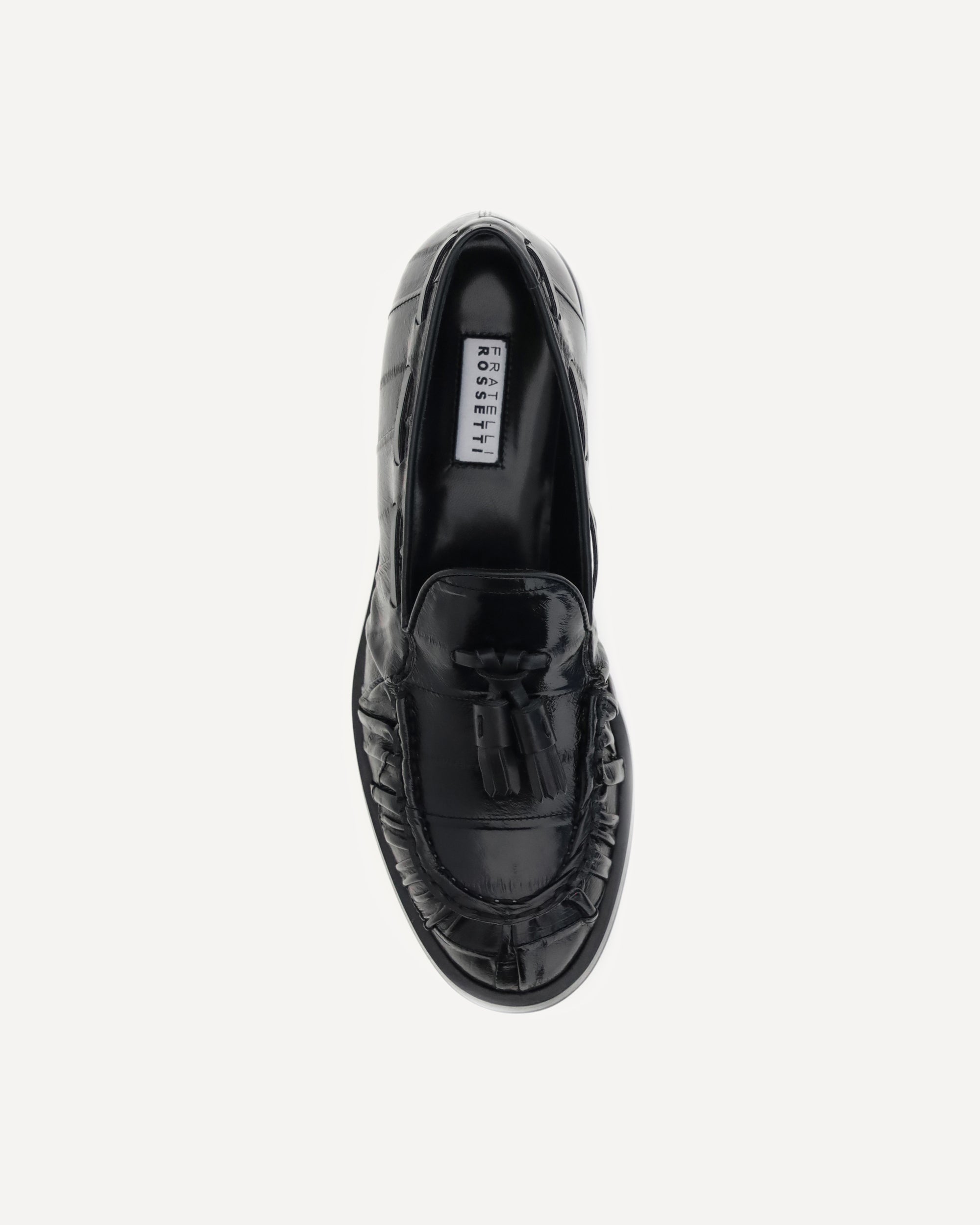 The tasseled Loafers by Fratelli Rossetti combine classic style and craftsmanship. Featuring a round toe and flat sole, they offer a comfortable and versatile fit. The two tassels on the front add a distinctive and refined touch, making this model ideal for completing smart or casual looks with understated elegance.
