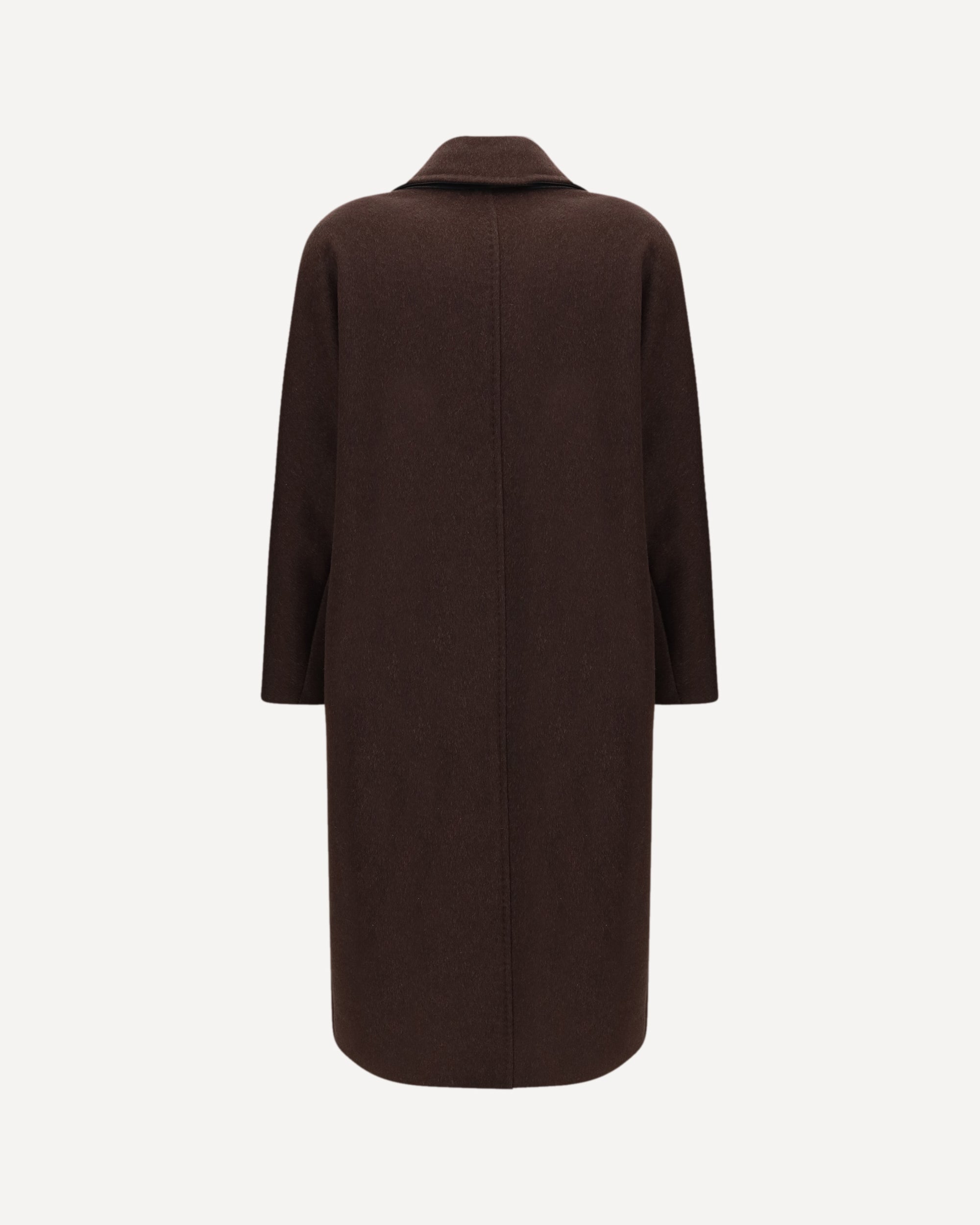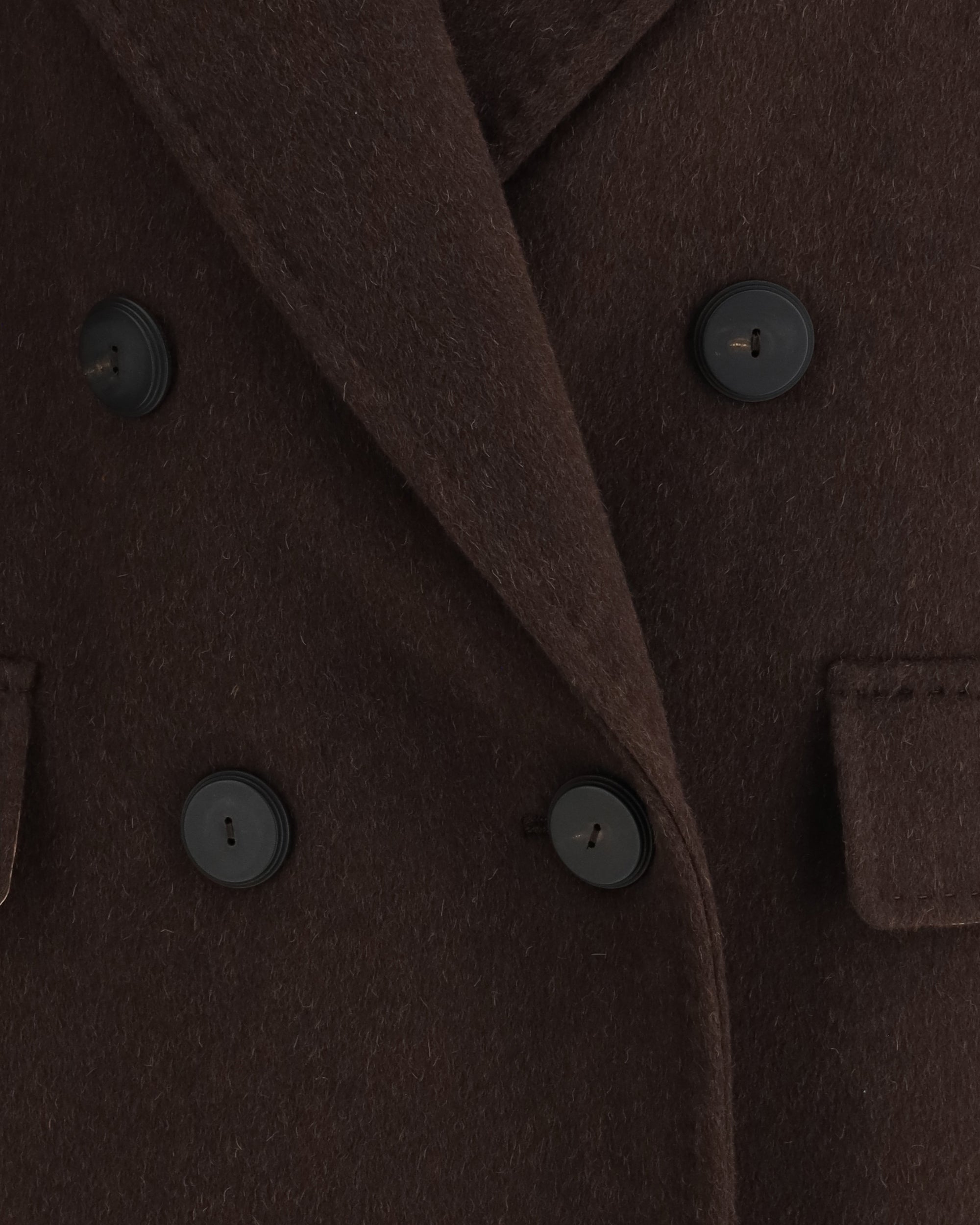 The oversized masculine Coat by Max Mara is crafted from a refined blend of cashmere, alpaca and wool, finished with a brushed effect that enhances its softness, warmth and exceptional sheen. The noble fibers create a plush hand and give the melange colors remarkable depth and richness. Its oversized, menswear-inspired silhouette offers a versatile fit, allowing the coat to layer comfortably even over a blazer. Signature tailoring details elevate the design: red fil rouge saddle-stitching along the lapel, a matching red internal welt pocket, leather undercollar and horn buttons. A sartorial pick-stitch and the semi-lined construction complete this piece with unmistakable craftsmanship.
