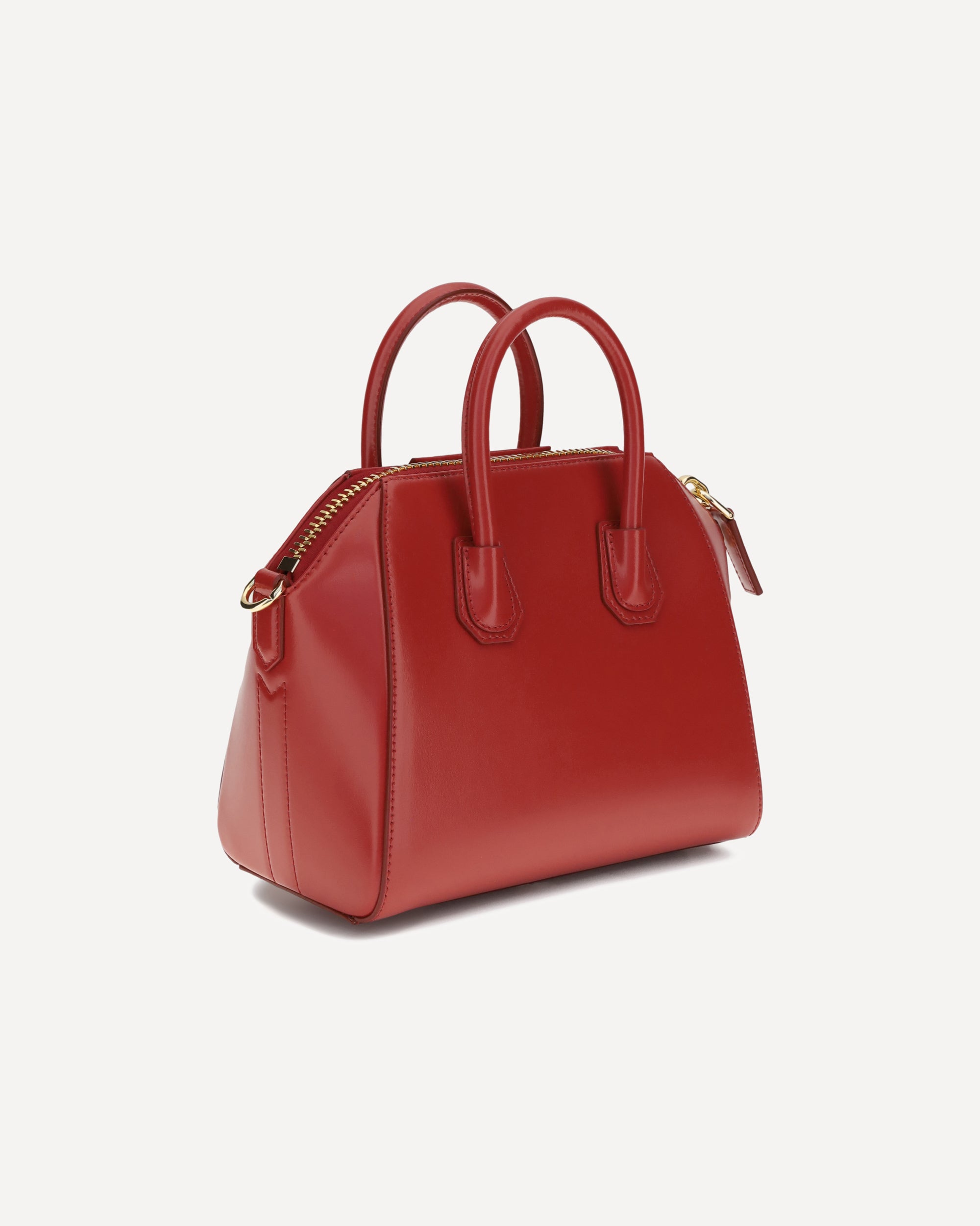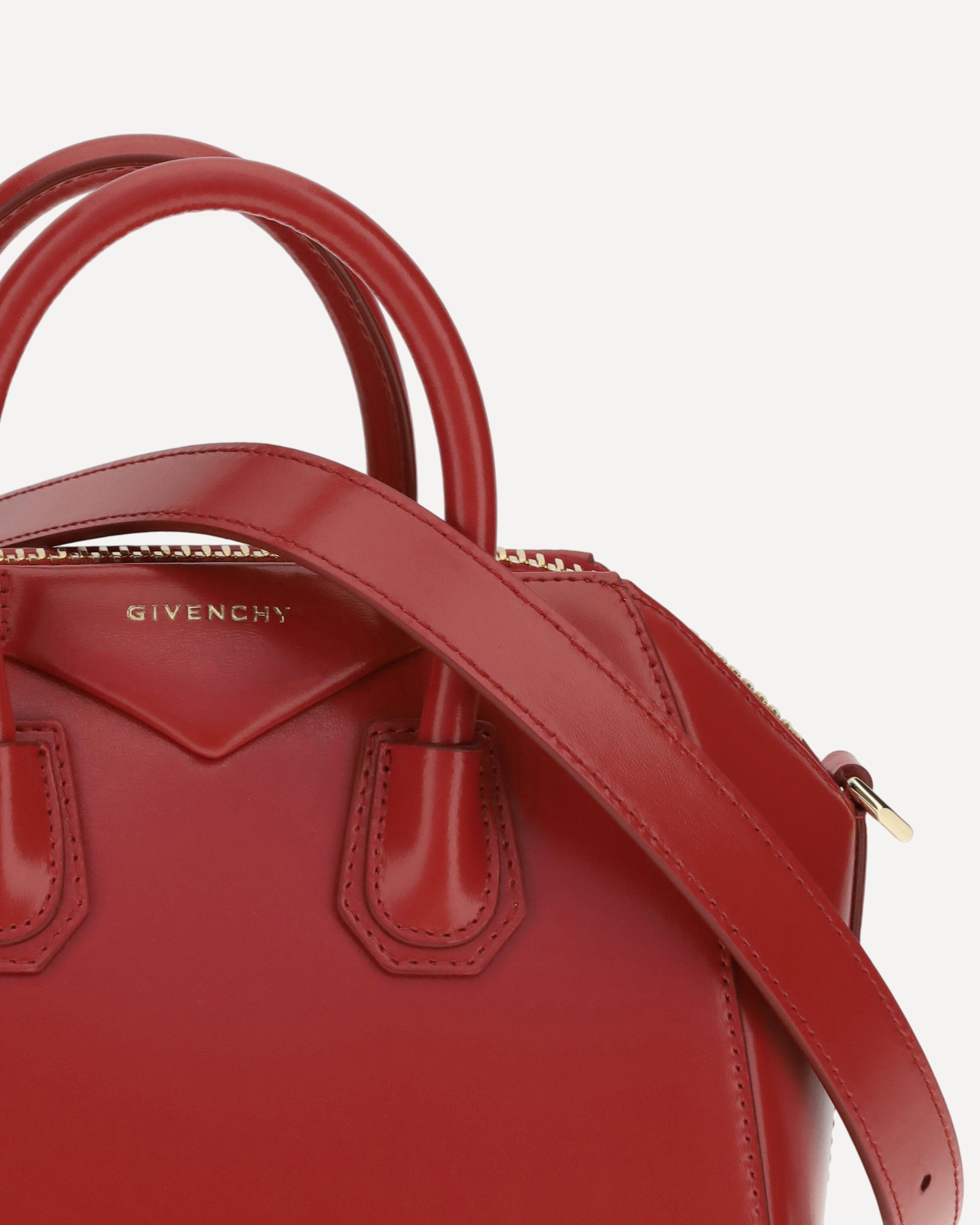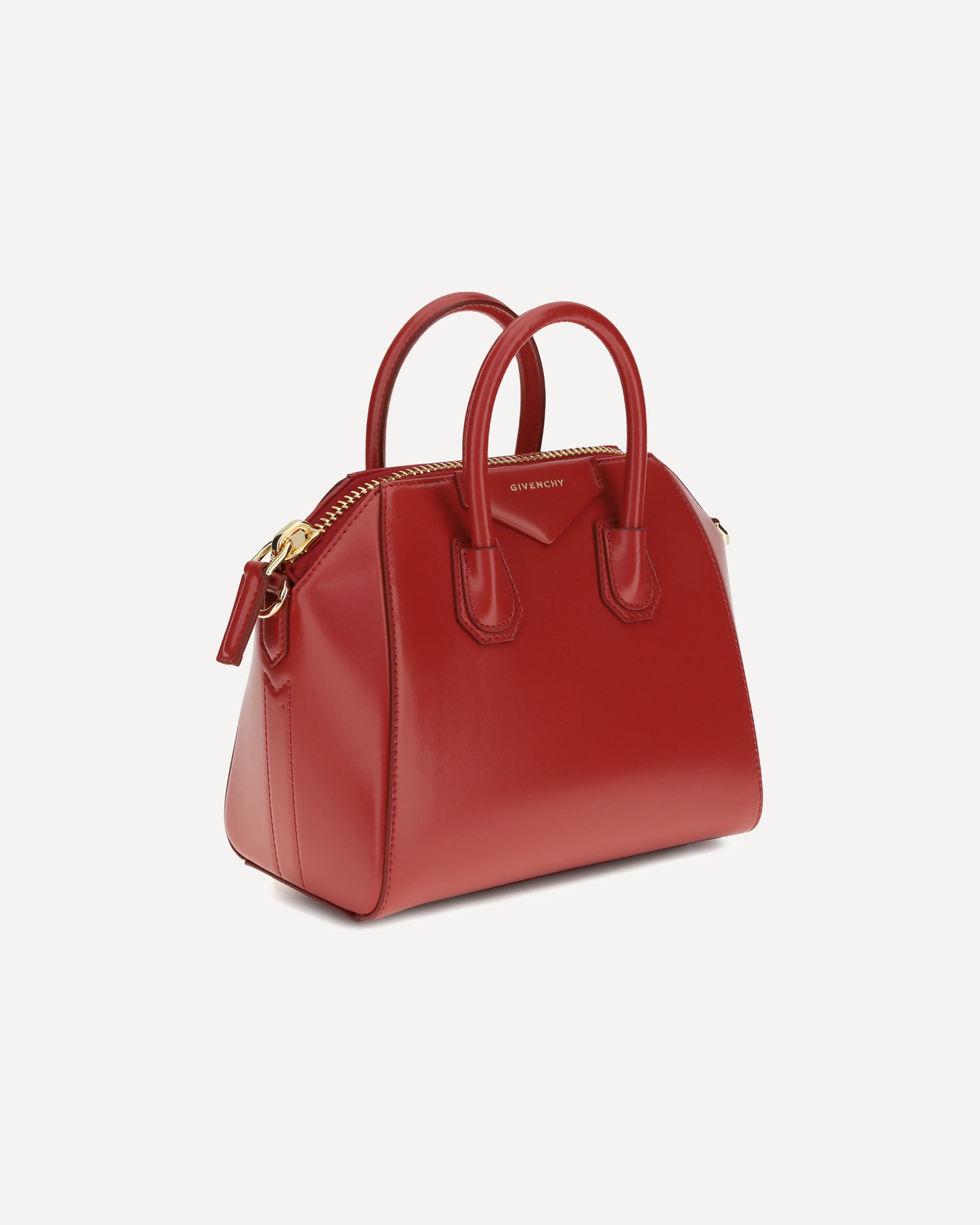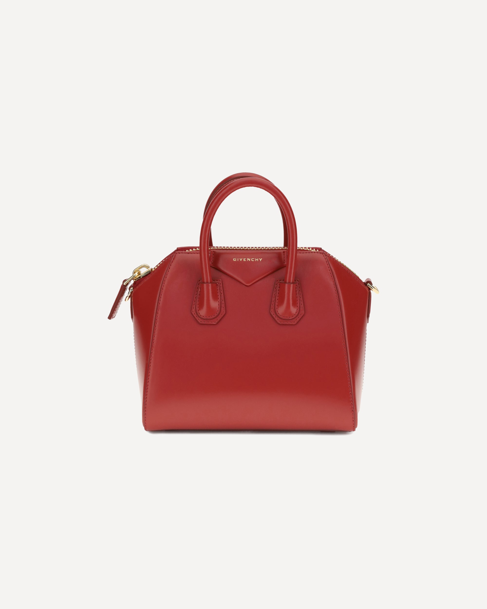 Antigona leather mini Handbag by Givenchy features a geometric design and shiny leather that enhances its elegance. Featuring two stiff top handles, it has a double-slider zipper closure and the iconic contrasting monogram on the front. The adjustable and removable shoulder strap provides versatility, while the support feet at the base protect the model while keeping it flawless at all times.