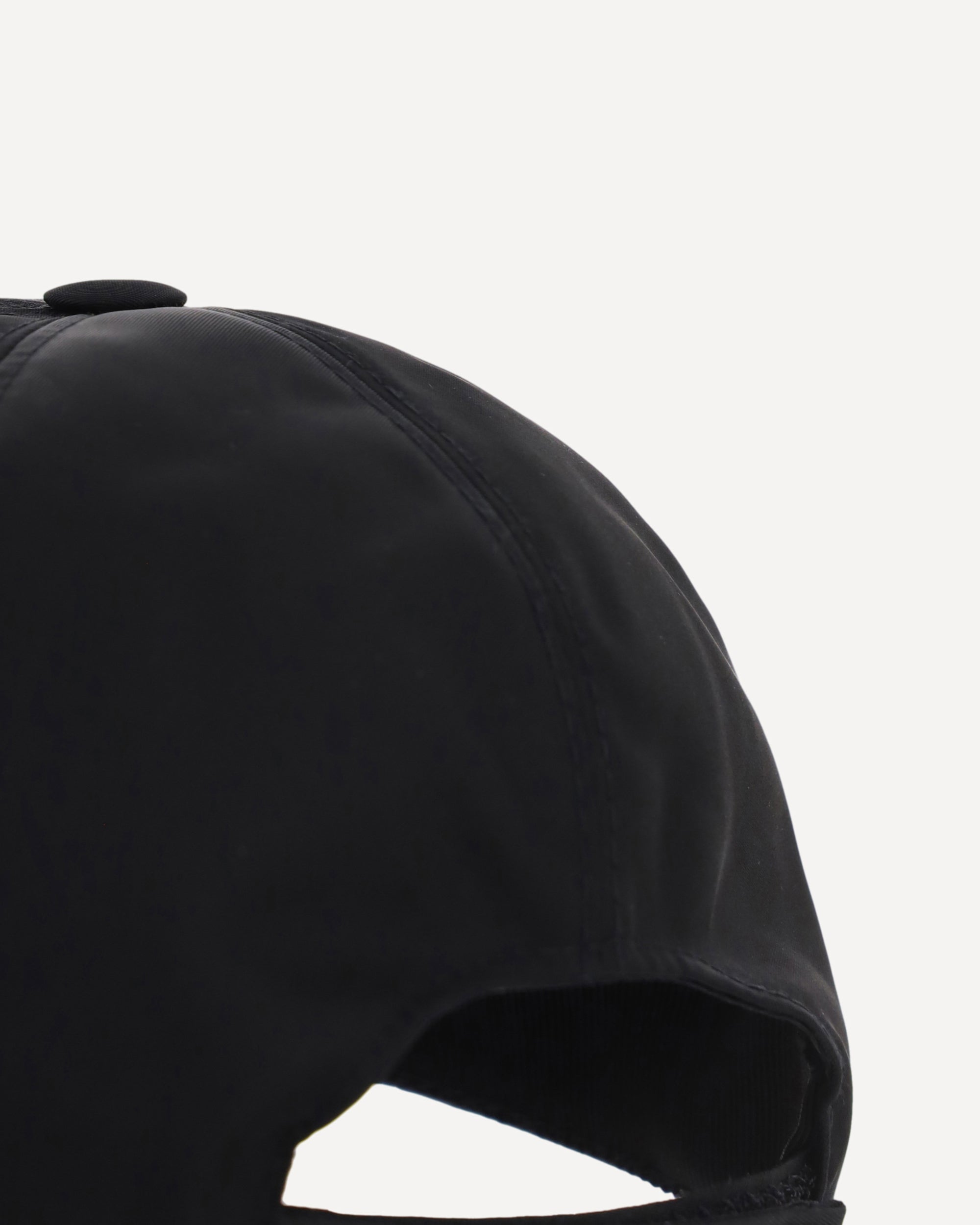 Nylon Baseball Hat by Prada, iconic triangular logo plaque at side, adjustable with velcro strap.
