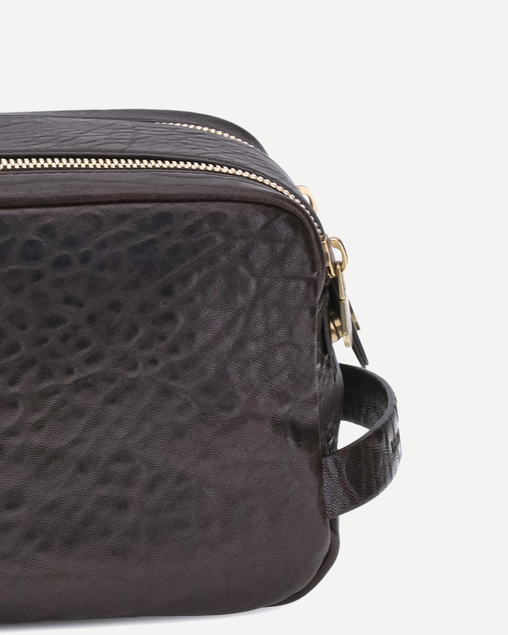 Brunello Cucinelli's leather Beauty Case combines sophistication and functionality in a compact and elegant accessory. Made of high-quality leather, it features a double top zipper for convenient and full opening. The side pull, positioned on the panel, makes it easy to carry and adds a distinctive touch to the essential design.