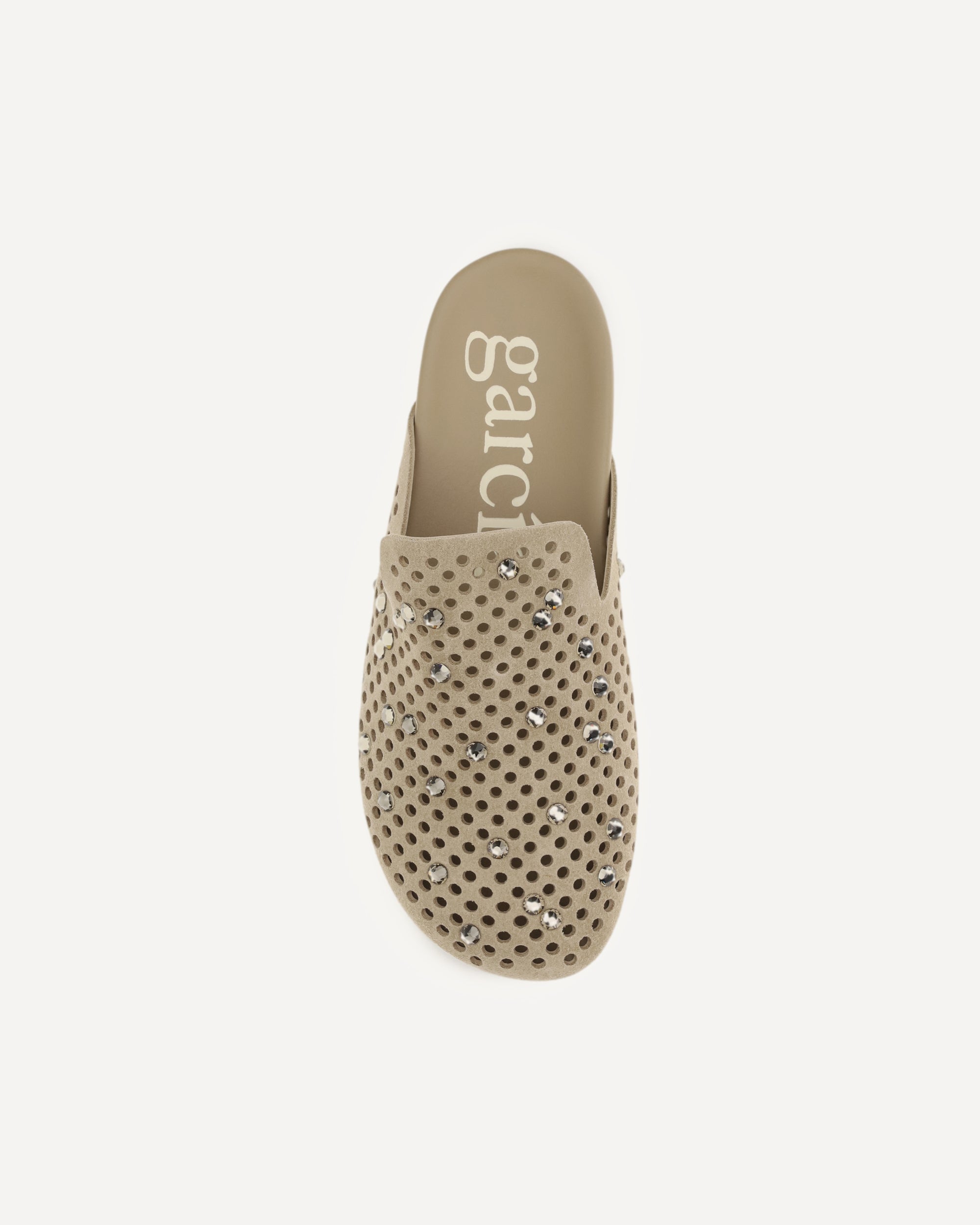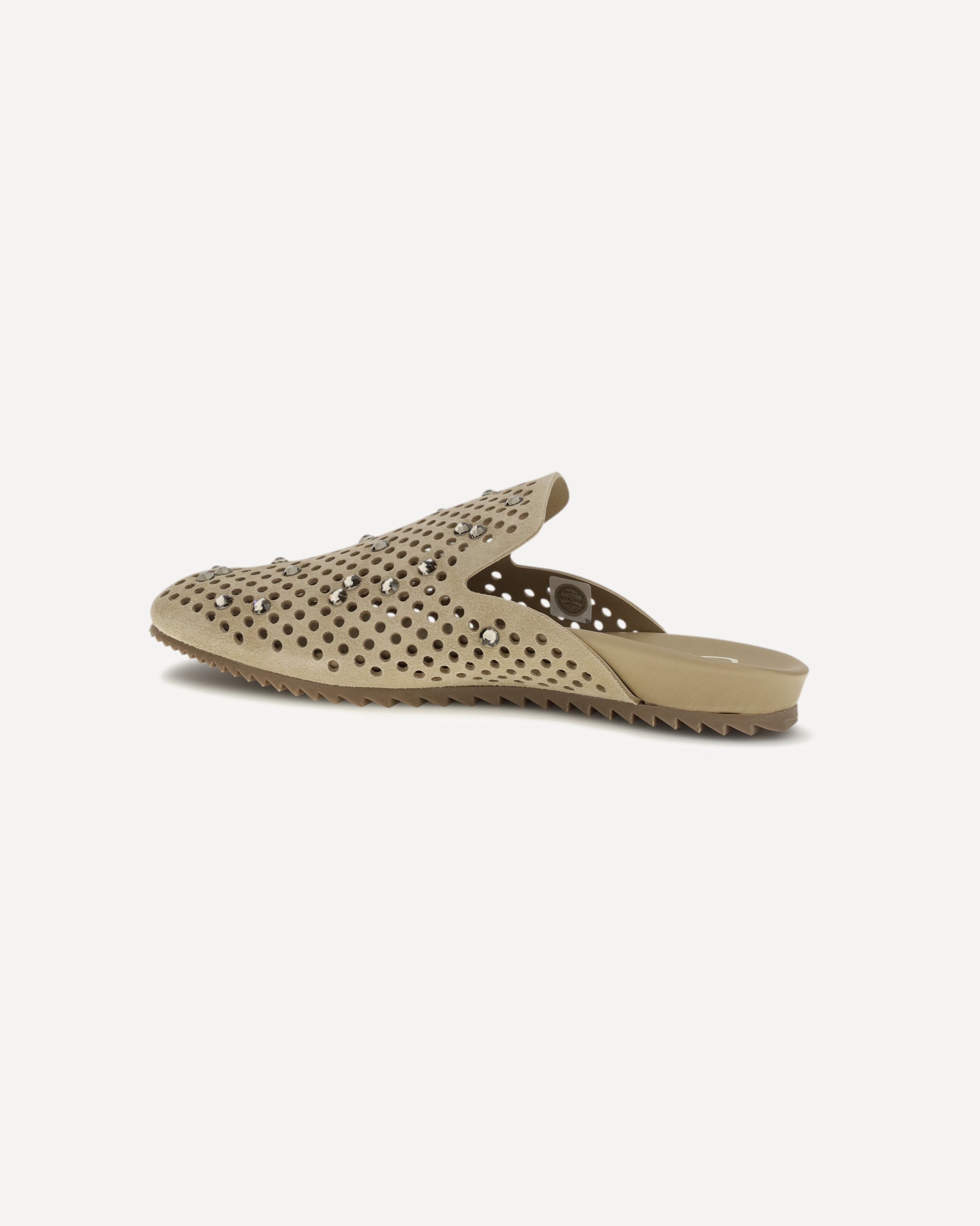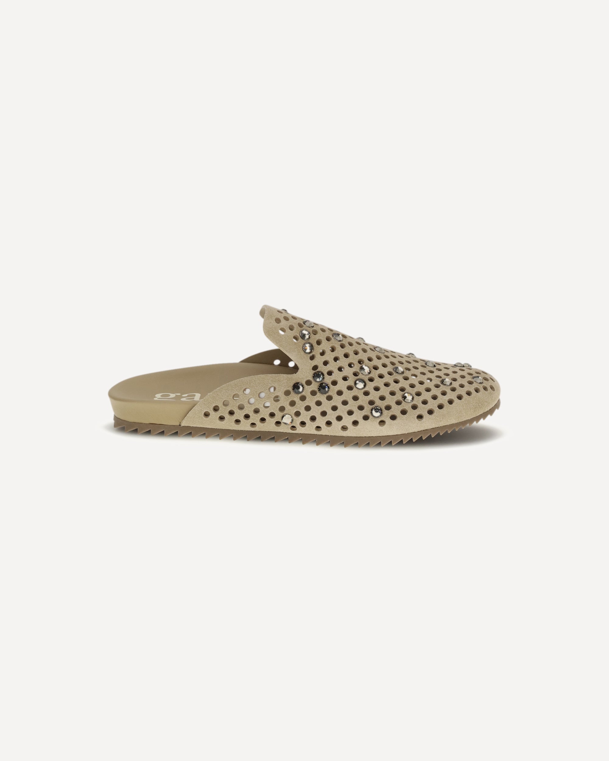 The Raidy Mules by Pedro García combine elegance and originality in a sophisticated design. Made of suede with perforated workmanship, they are enriched with rhinestones applied on the front that give light and character. The zig-zag sole completes the model with a modern and distinctive touch.