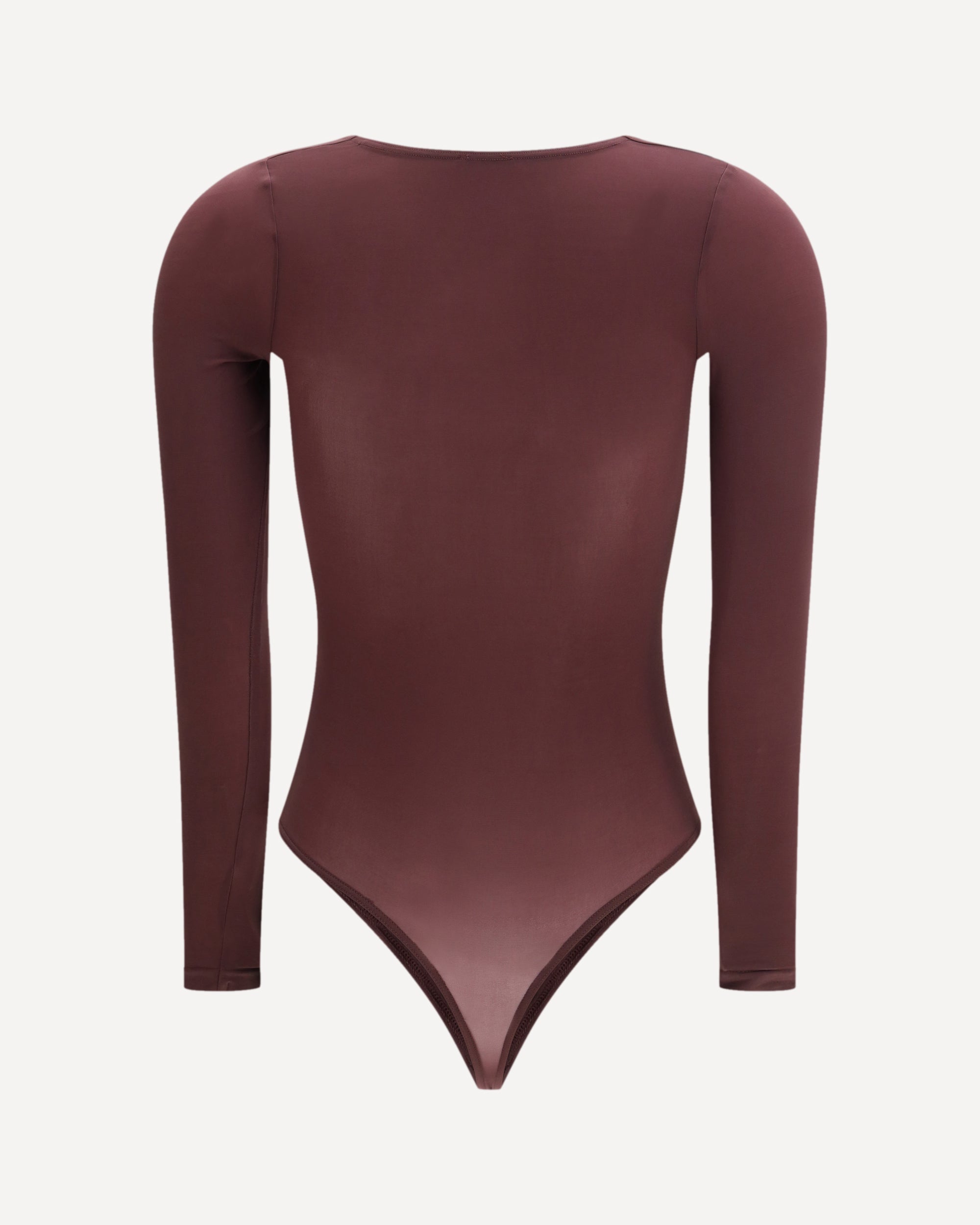 The Buenos Aires String Bodysuit by Wolford features a refined semi-sheer effect that enhances the silhouette. Designed with long sleeves and a round neckline, it is finished with snap-button fastening and an elasticated fit for optimal comfort and a sleek, body-hugging look.