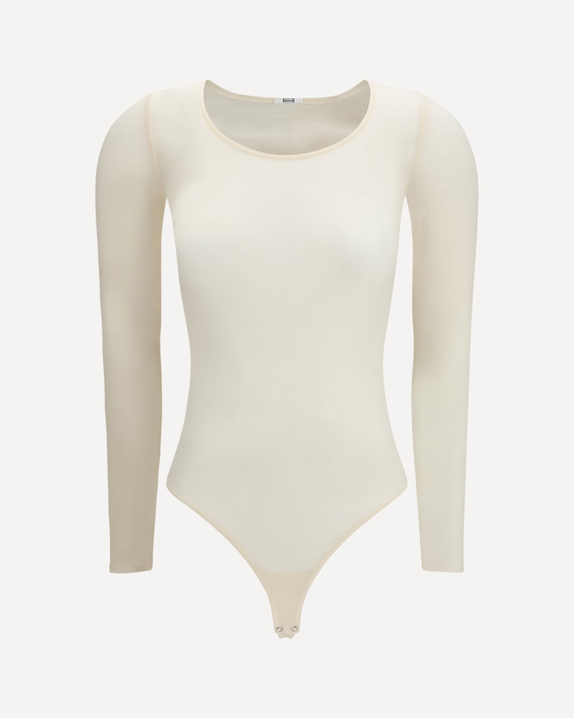 The Buenos Aires String Bodysuit by Wolford features a refined semi-sheer effect that enhances the silhouette. Designed with long sleeves and a round neckline, it is finished with snap-button fastening and an elasticated fit for optimal comfort and a sleek, body-hugging look.