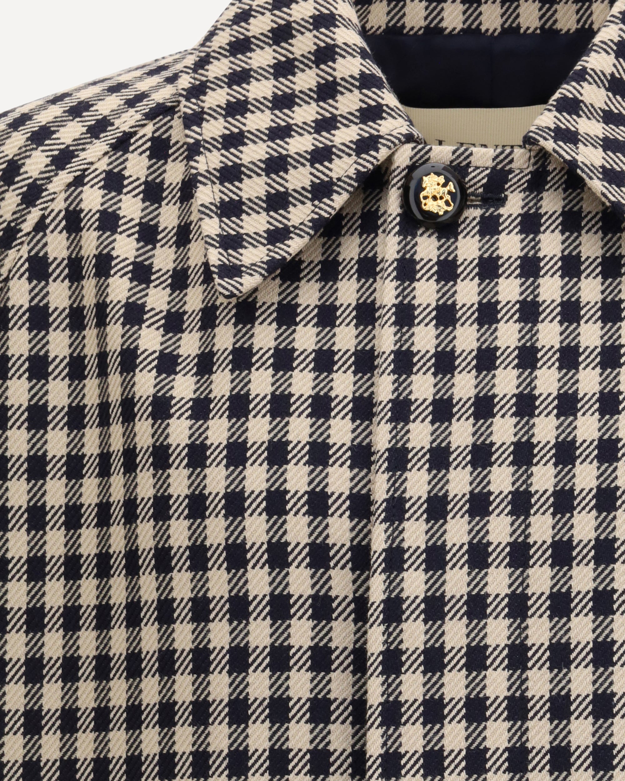 Valentino's single-breasted coat is made of a fine cotton-wool blend with an all-over vichy pattern. Featuring a classic collar, it has a front button closure and two side welt pockets. The model is fully lined, combining timeless elegance and attention to detail.