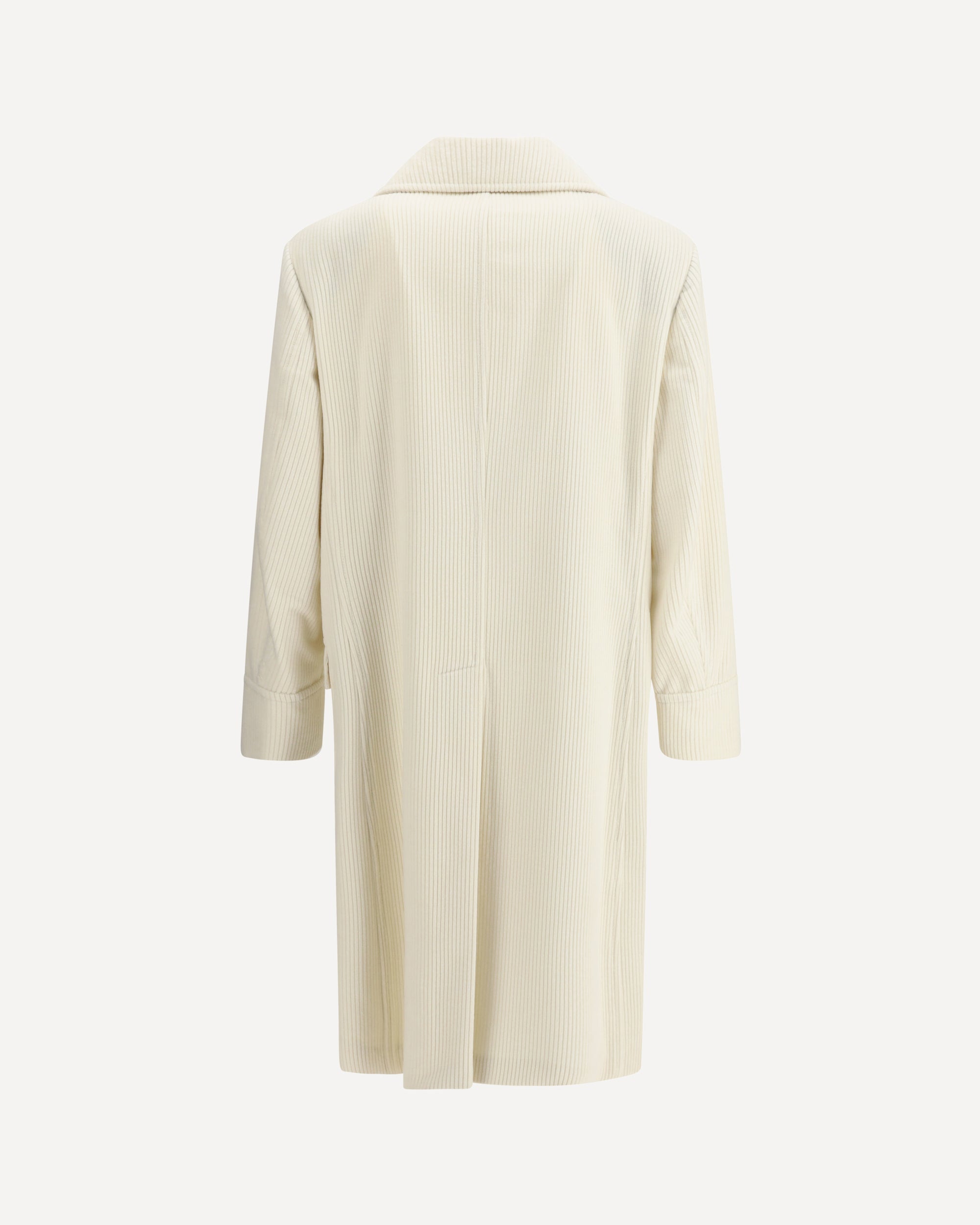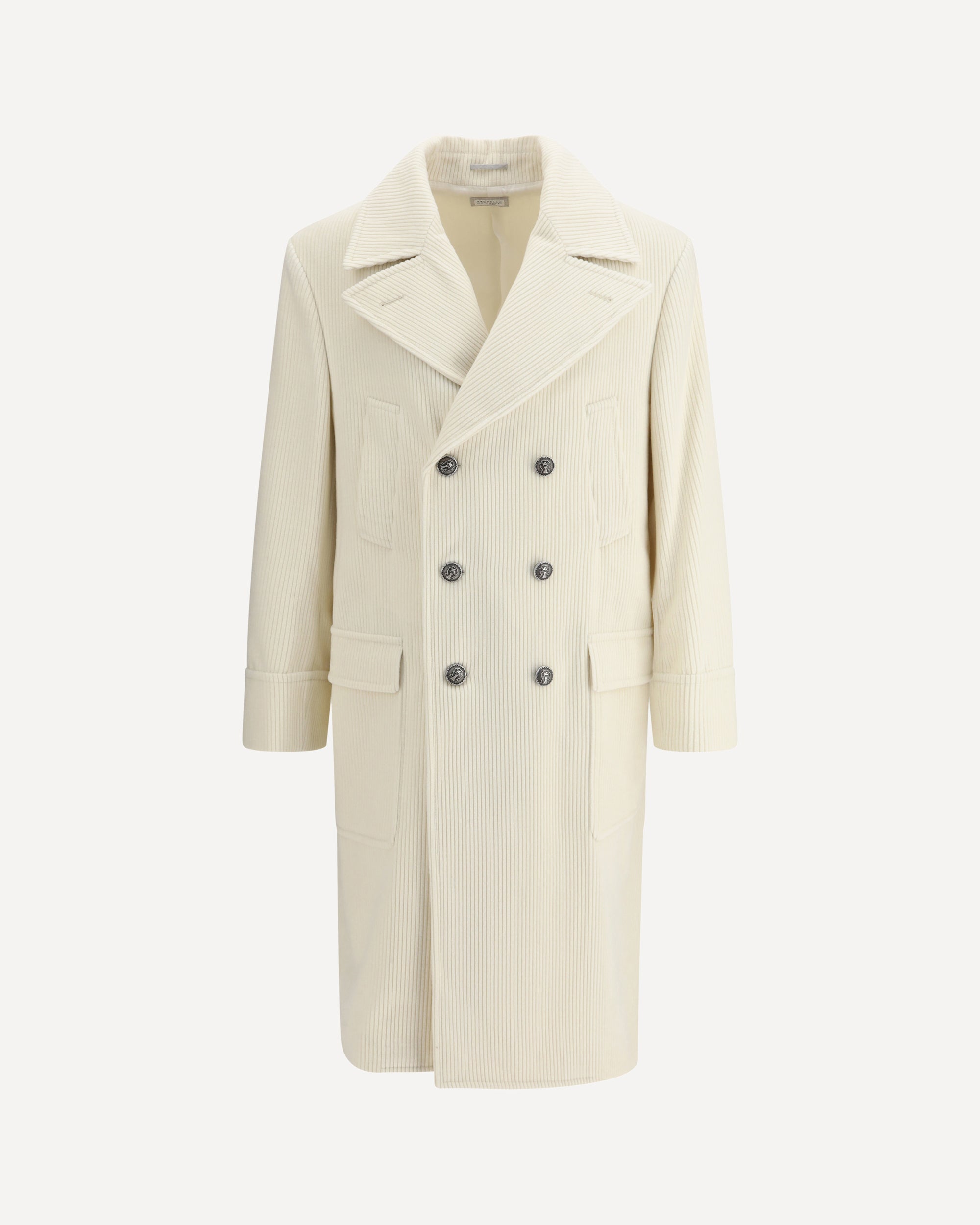 Brunello Cucinelli's ribbed cashmere Coat expresses elegance and sophistication through fine materials and tailored details. Featuring a metal button closure and classic lapel collar, it has high welt pockets and low patch pockets with flaps, which enhance its structure. The model is semi-lined, with two inside button pockets and a practical pen holder. The single back slit ensures freedom of movement, completing a garment designed for sophisticated and timeless style.