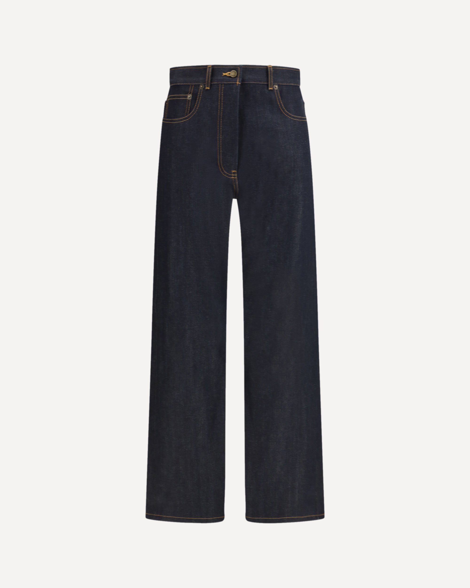 The selvedge 5-pocket Jeans by Thom Browne reinterpret a wardrobe classic with a refined, thoughtful approach. Crafted from Japanese cotton denim, they express a clean aesthetic that elevates traditional workwear codes into a quietly confident, timeless statement. Designed with a high-rise waist, straight leg and regular fit, they feature belt loops, a button and zip fastening, and a five-pocket construction. A back strap with buckle adds a distinctive detail, reflecting the brand’s tailored sensibility.