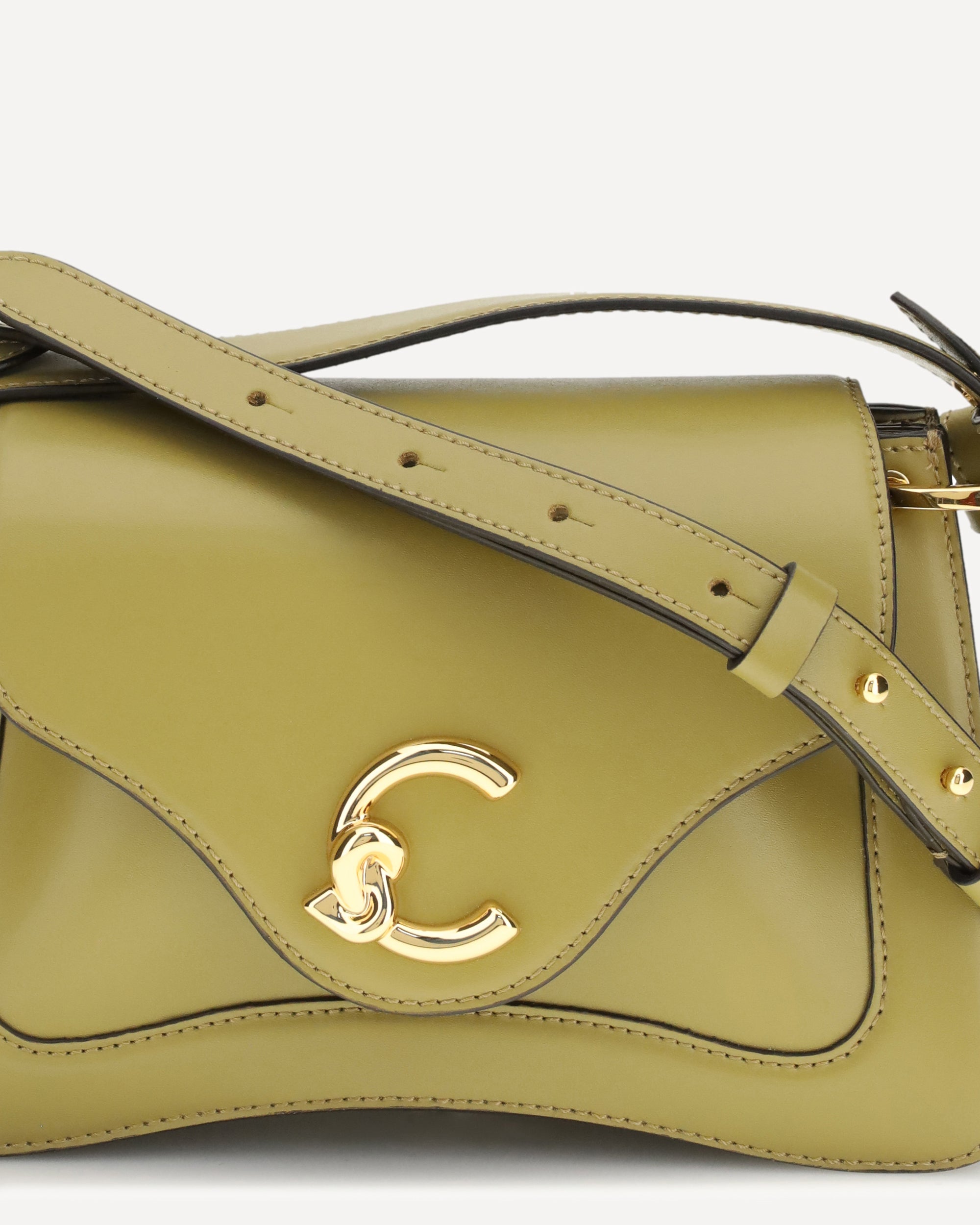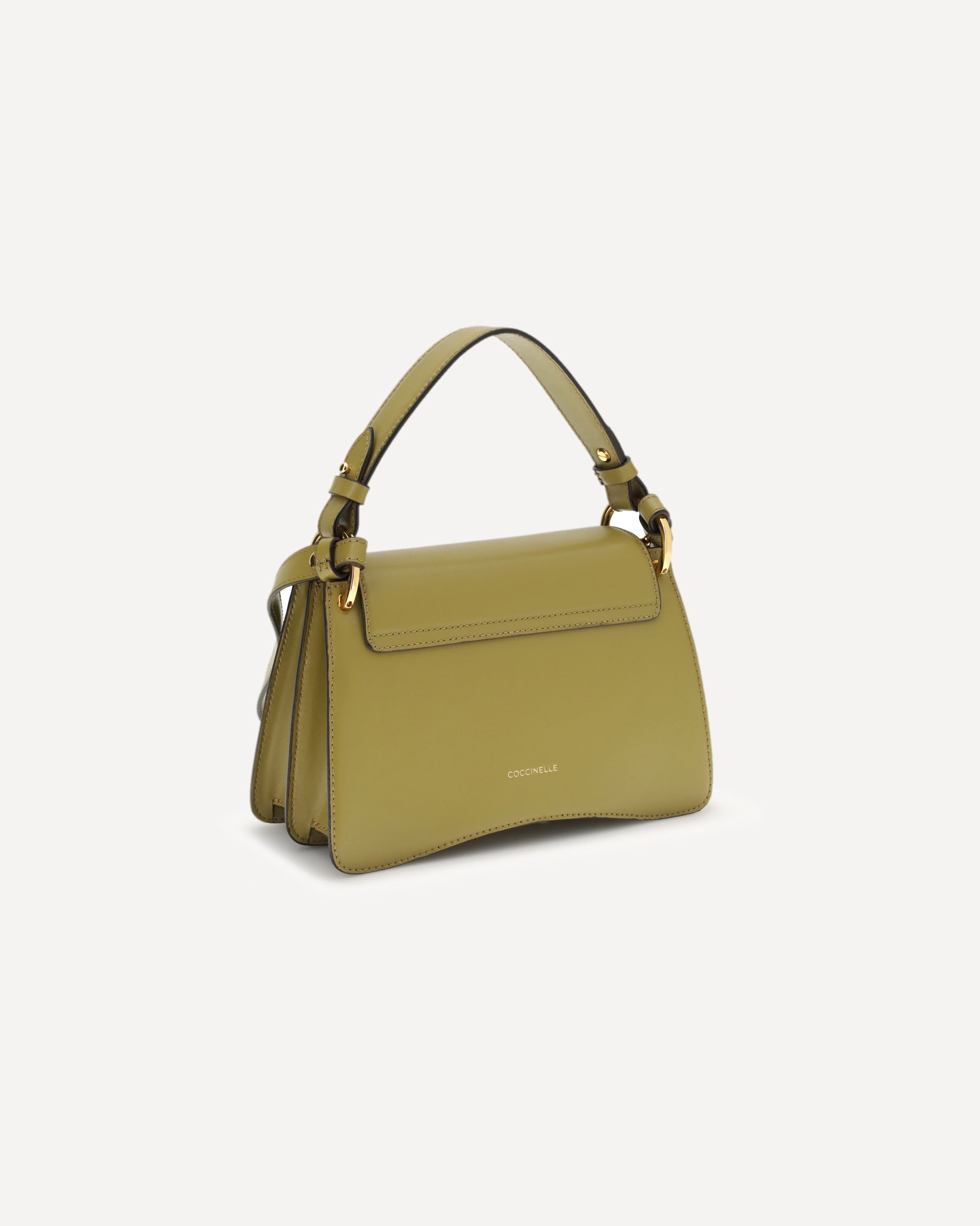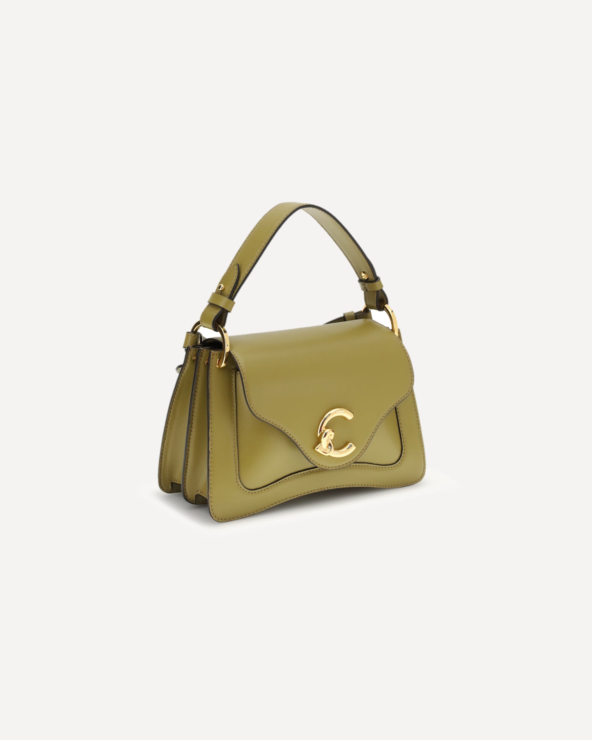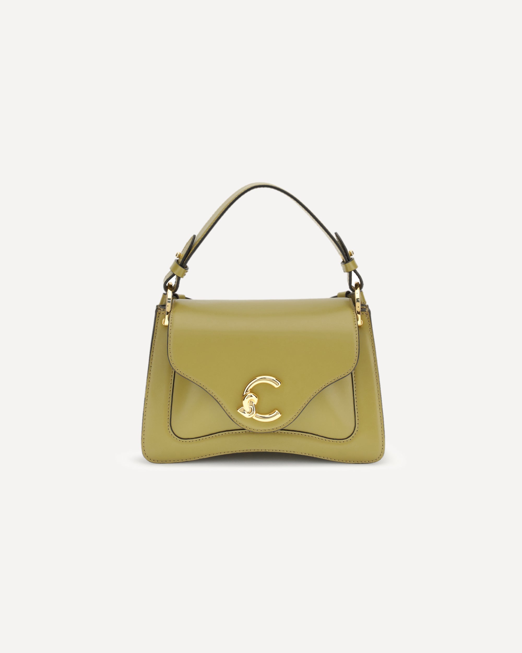 The small C-Me Handbag by Coccinelle, made of smooth leather, combines functionality and essential style. Featuring the distinctive C-Me logo in gold metal, it has a magnetic closure and a gusset design that provides structure and capacity. The removable handle allows for versatile portability, while the adjustable leather shoulder strap allows you to wear it on the shoulder or crossbody. Equipped with a front pocket, three internal compartments and a zipped partition, it guarantees excellent organization. The embossed gold logo completes with discreet elegance an accessory designed to accompany you every day in style.