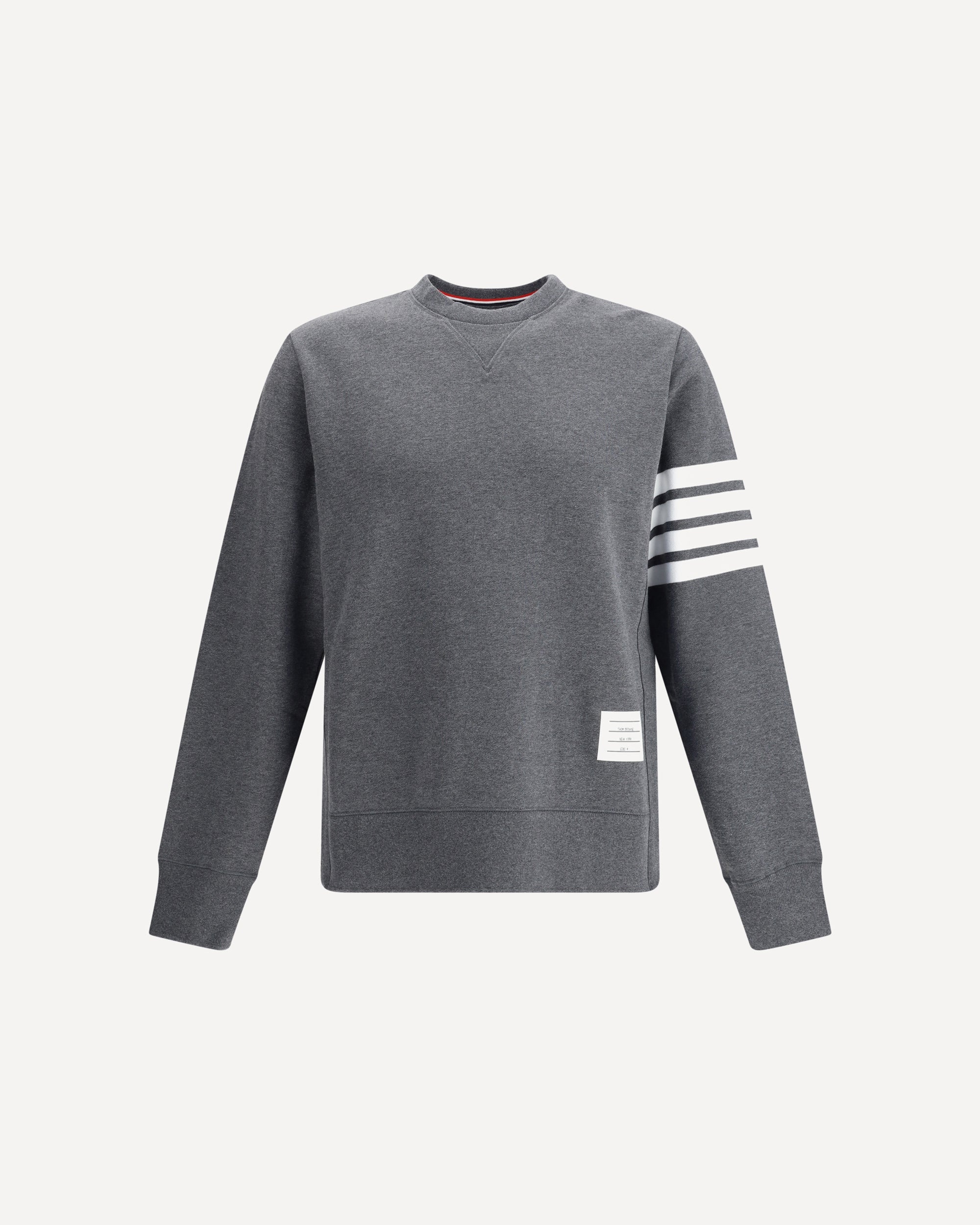 Thom Browne's Cotton Sweatshirt features a clean, modern design with a crew neck and long sleeves with ribbed cuffs. White stripes on the left sleeve and the brand's iconic monogram patch applied to the front add a distinctive touch. With a regular fit, this sweatshirt is the perfect balance of comfort and contemporary style.