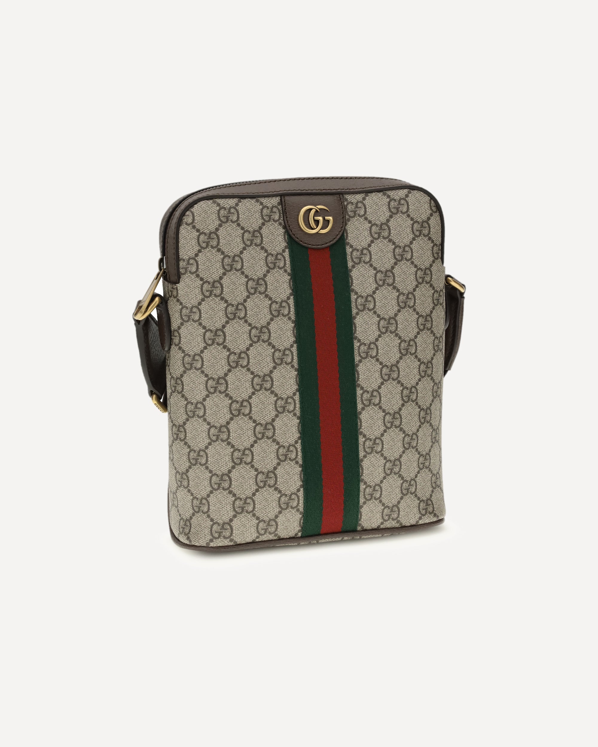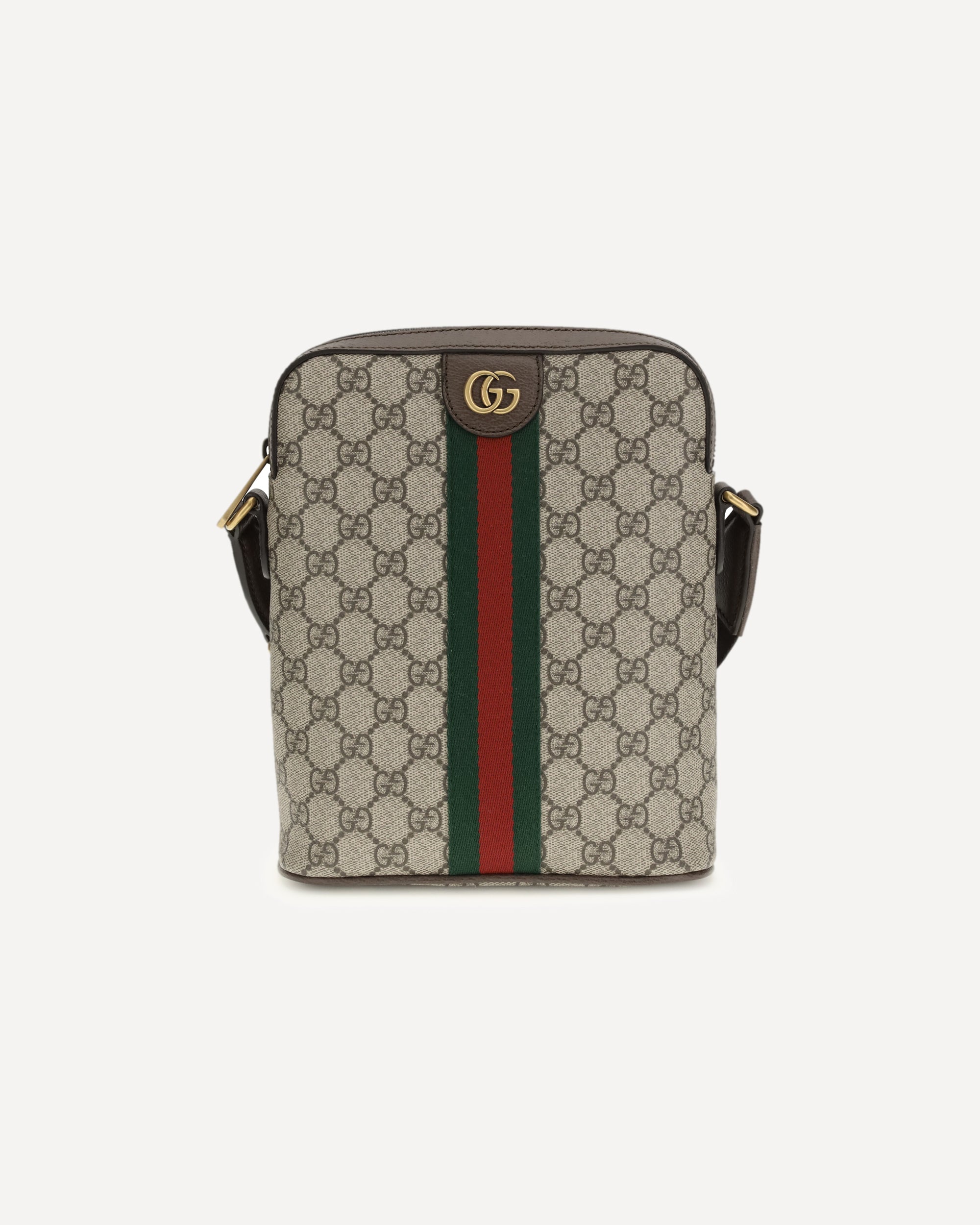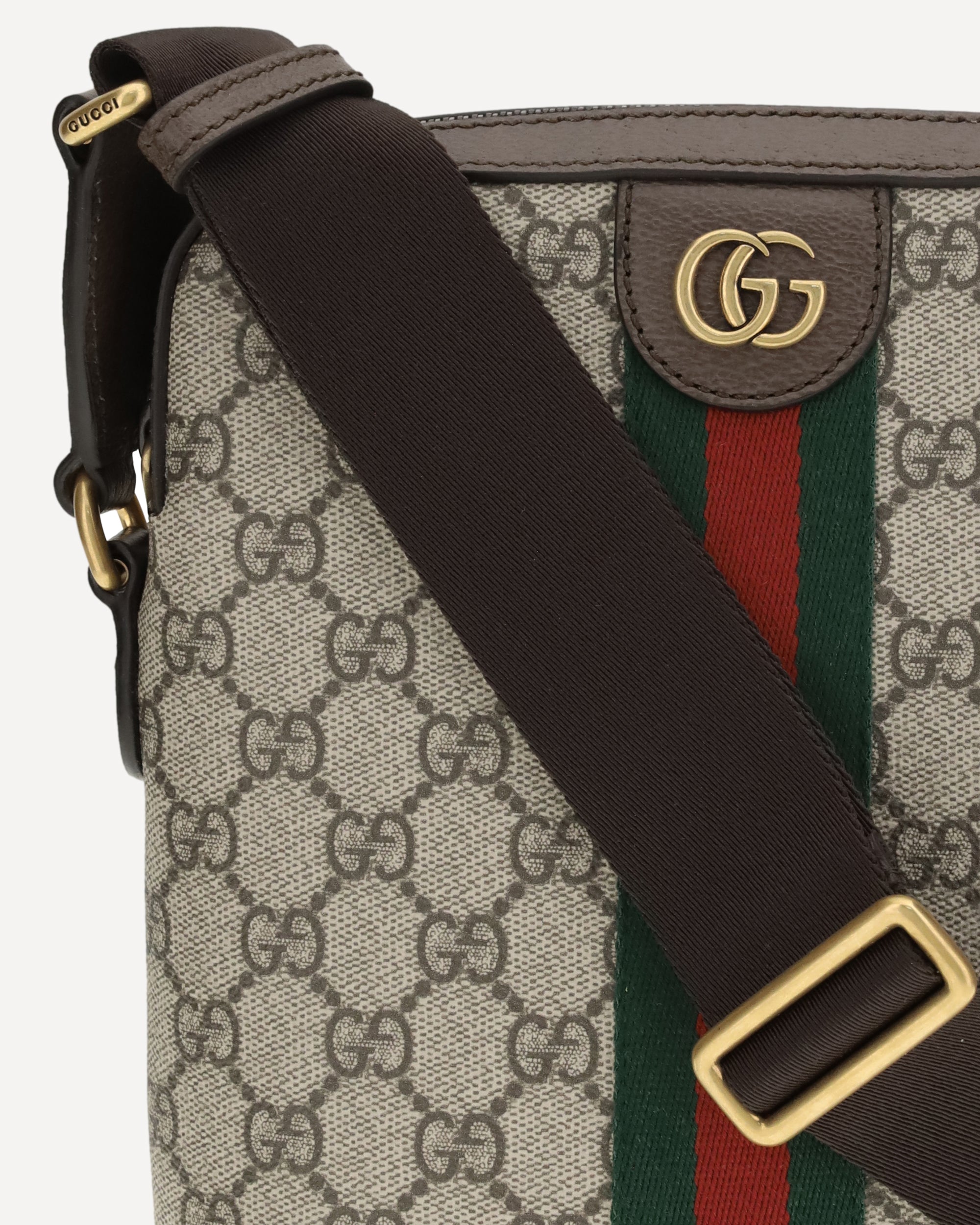 The Ophidia Shoulder Bag by Gucci embodies the perfect balance of elegance and functionality. Made of fabric lined with the beige and dark brown GG monogram with dark brown leather trim and gold-tone details, this bag features the famous Double G and distinctive Web detail. The green cotton and linen lining adds a touch of sophistication, while the adjustable shoulder strap and zippered closure offer practicality and comfort.