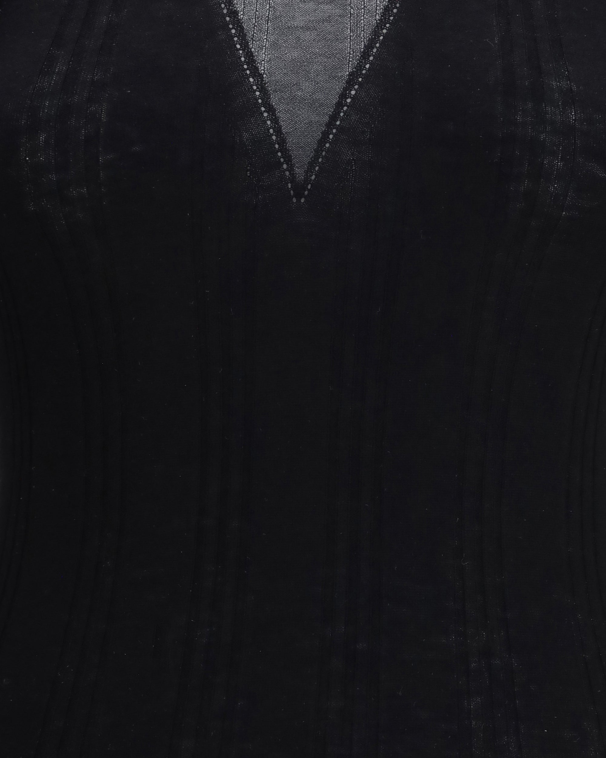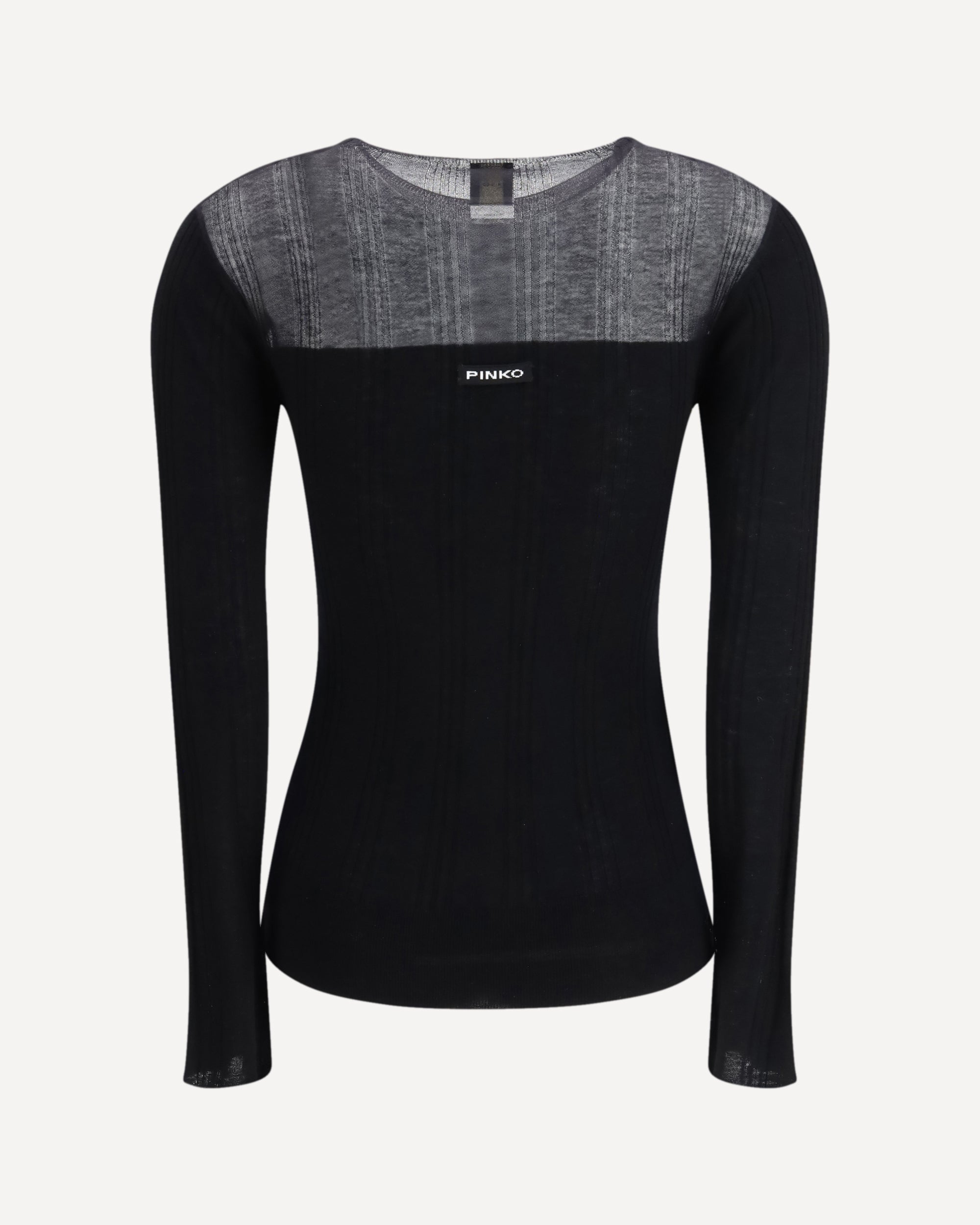 The long-sleeved Top by Pinko showcases a refined, minimalist attitude through a knit construction that alternates subtle rib-like ridges with more compact sections, creating a delicately structured texture. The crew neckline frames a clean, close-fitting silhouette designed to enhance the figure with understated ease. A versatile piece that works beautifully as an elevated everyday essential or as a textured layer within more polished looks.