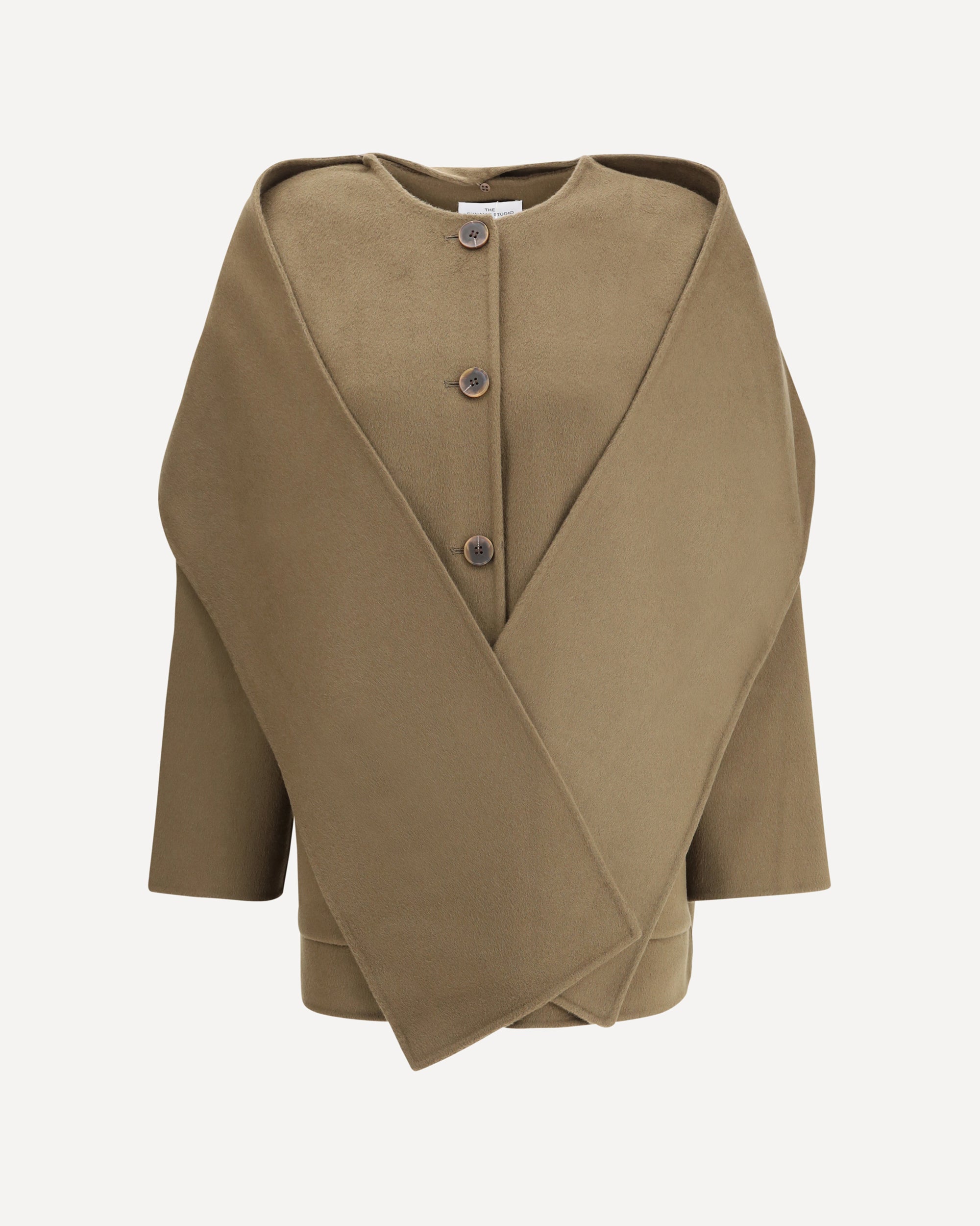 Dynamis Studio's wool scarf Coat by Dynamis Studio combines functionality with essential style.Made from warm wool, it features a clean crew neck, button closure and two front patch pockets.Completing the design is a removable scarf panel that can be knotted at the neck for a versatile and sophisticated touch.