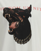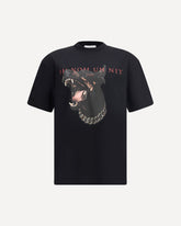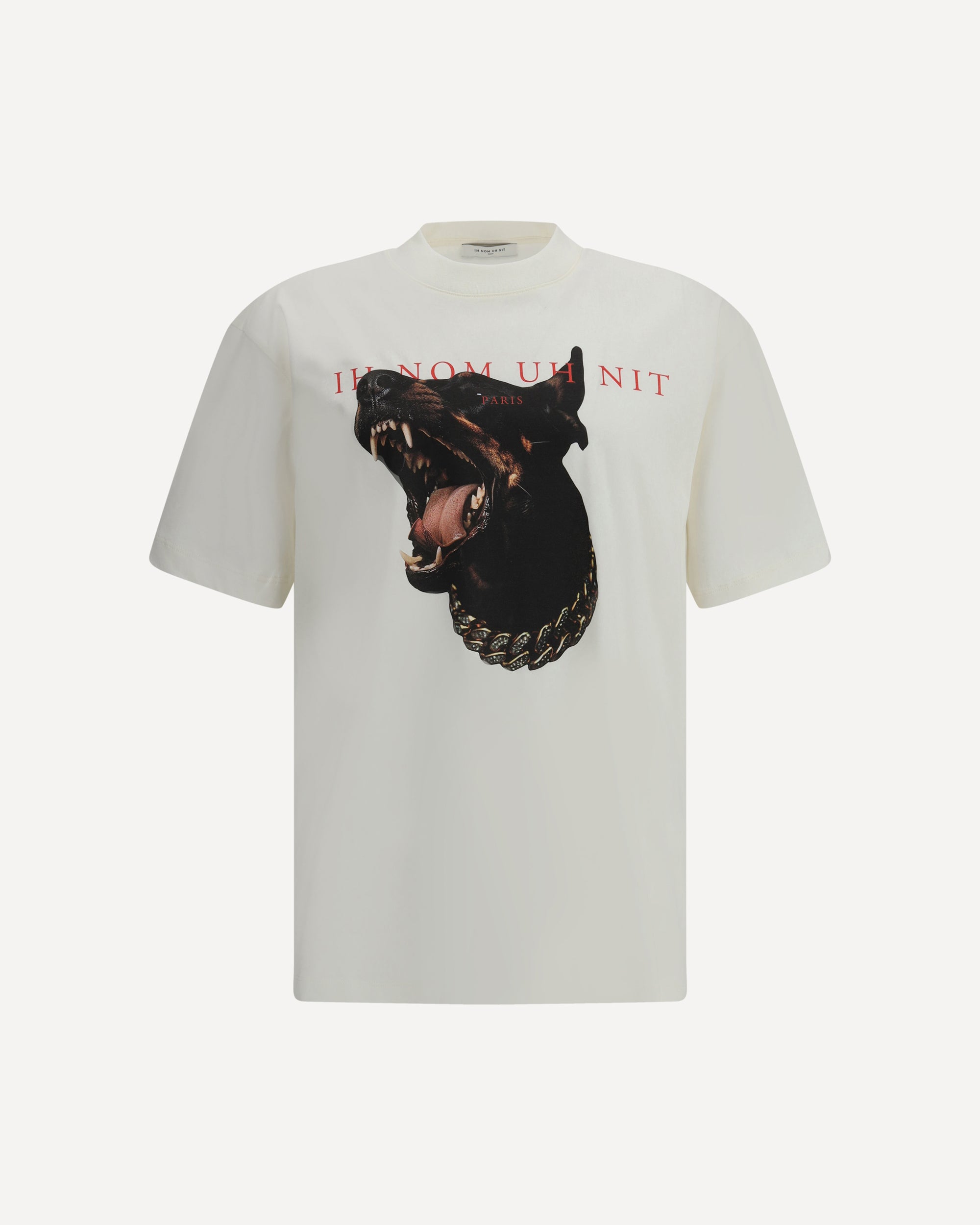 The Ih Nom Uh Nit Dobermann cotton T-Shirt features a ribbed crew neck and a large Doberman print on the front, enriched by the iconic contrasting monogram detail. This bold and contemporary design combines graphic art and the brand's distinctive style, creating a look that captures attention. Perfect for those looking for a unique and recognizable garment, which stands out for its originality and modernity.