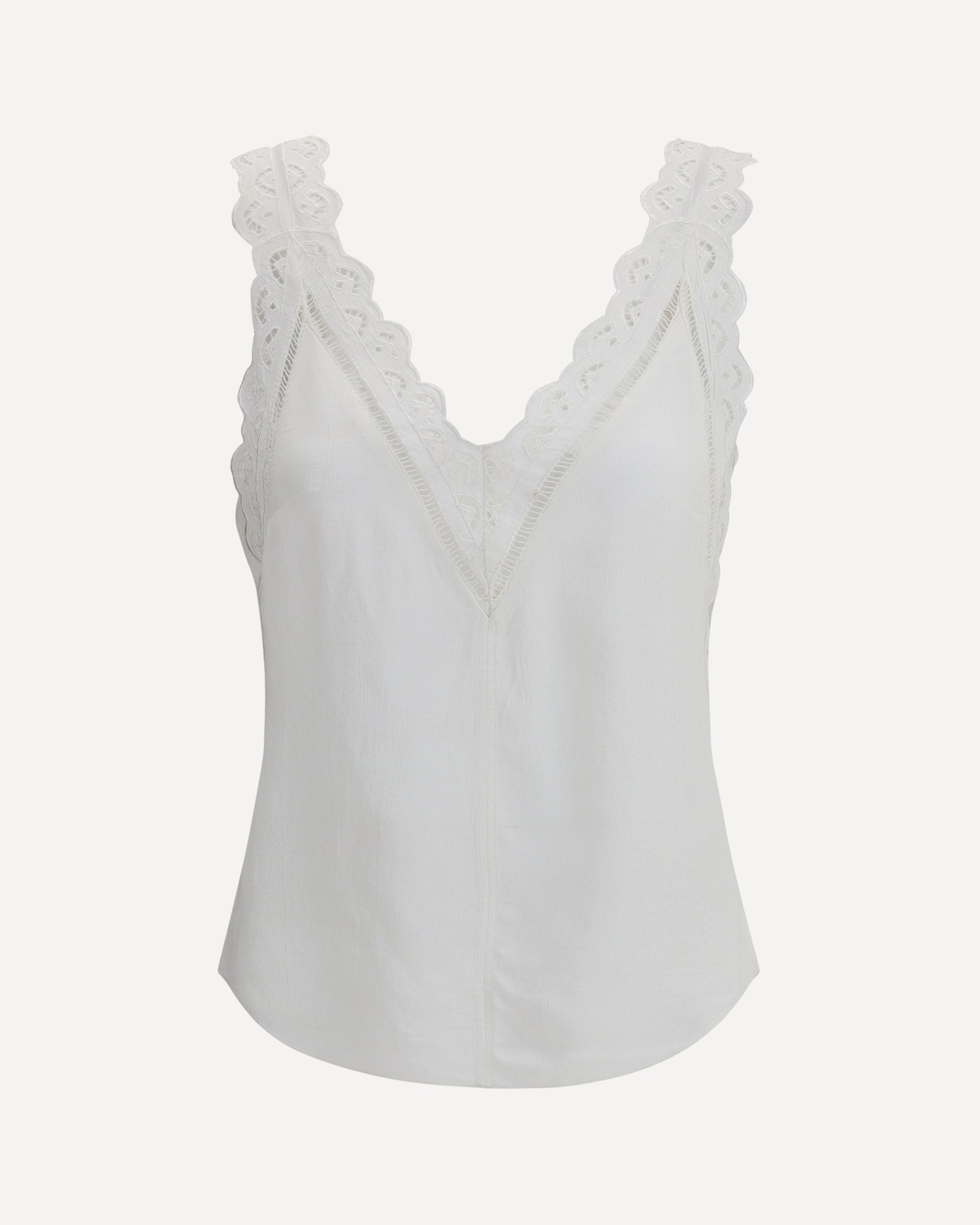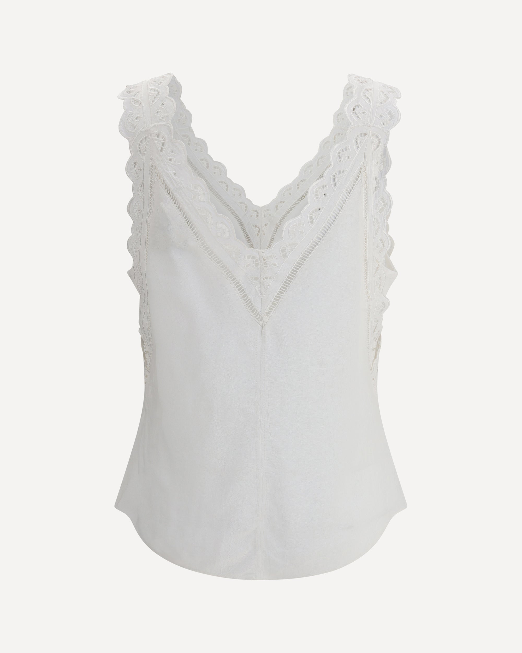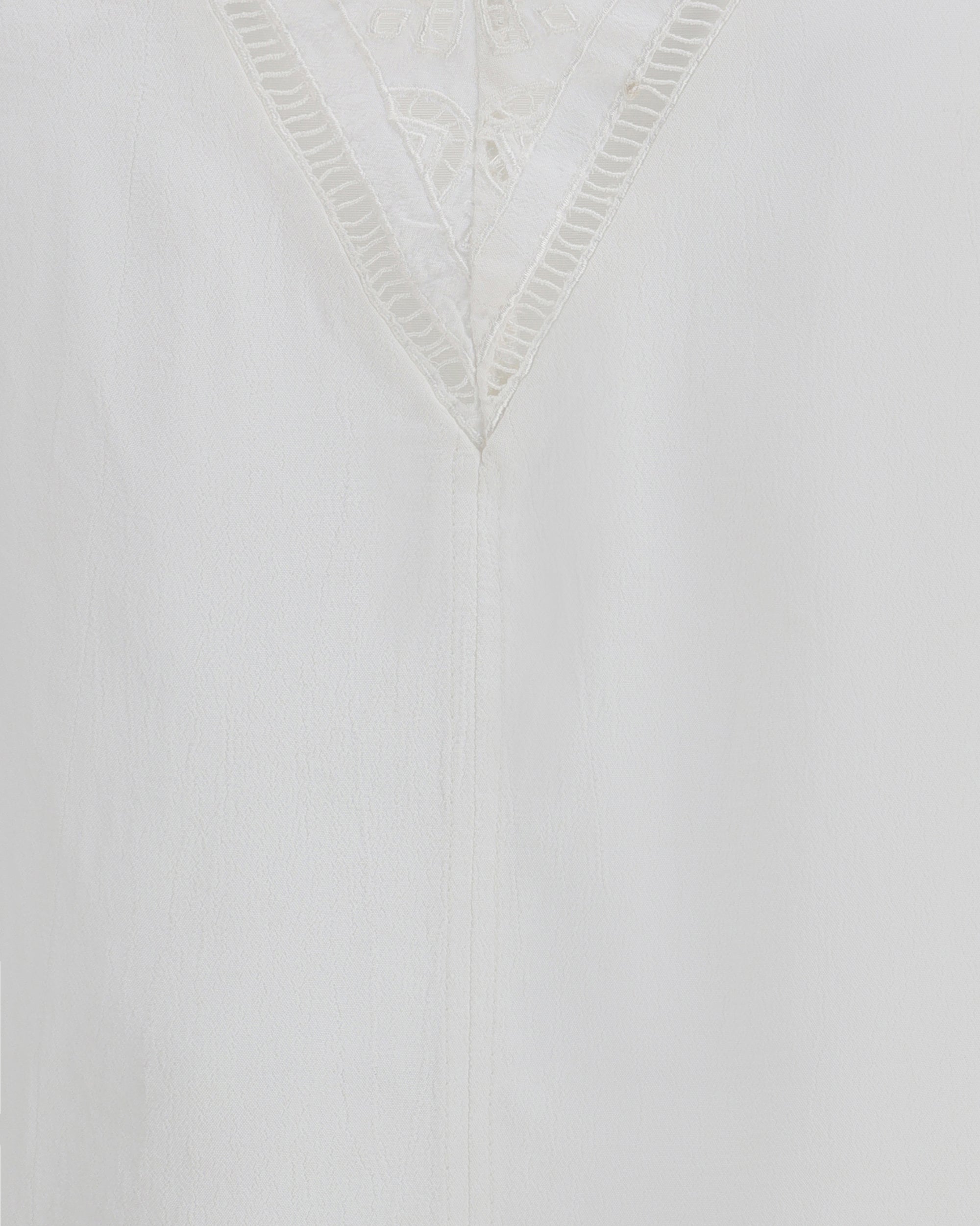 Isabel Marant's Fradella Top embodies boho-chic elegance with a light touch. Made of fine crepe, it offers a flowing, sophisticated silhouette. Thin straps and sangallo details add a romantic and delicate air. The crew neck opens into a figure-flattering V-neckline, while sangallo trim enhances the rounded hemline. The straight, flowing cut ensures a comfortable and versatile fit, perfect for a refined summer look.