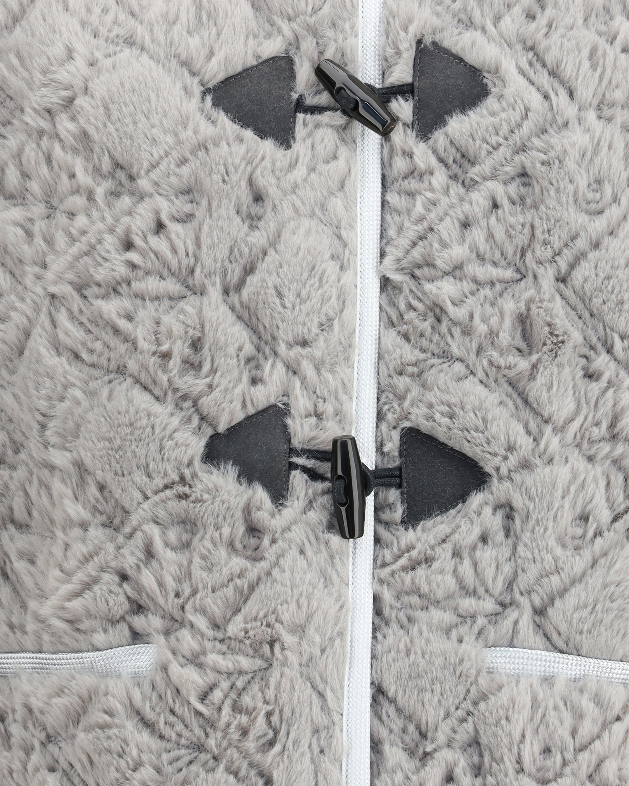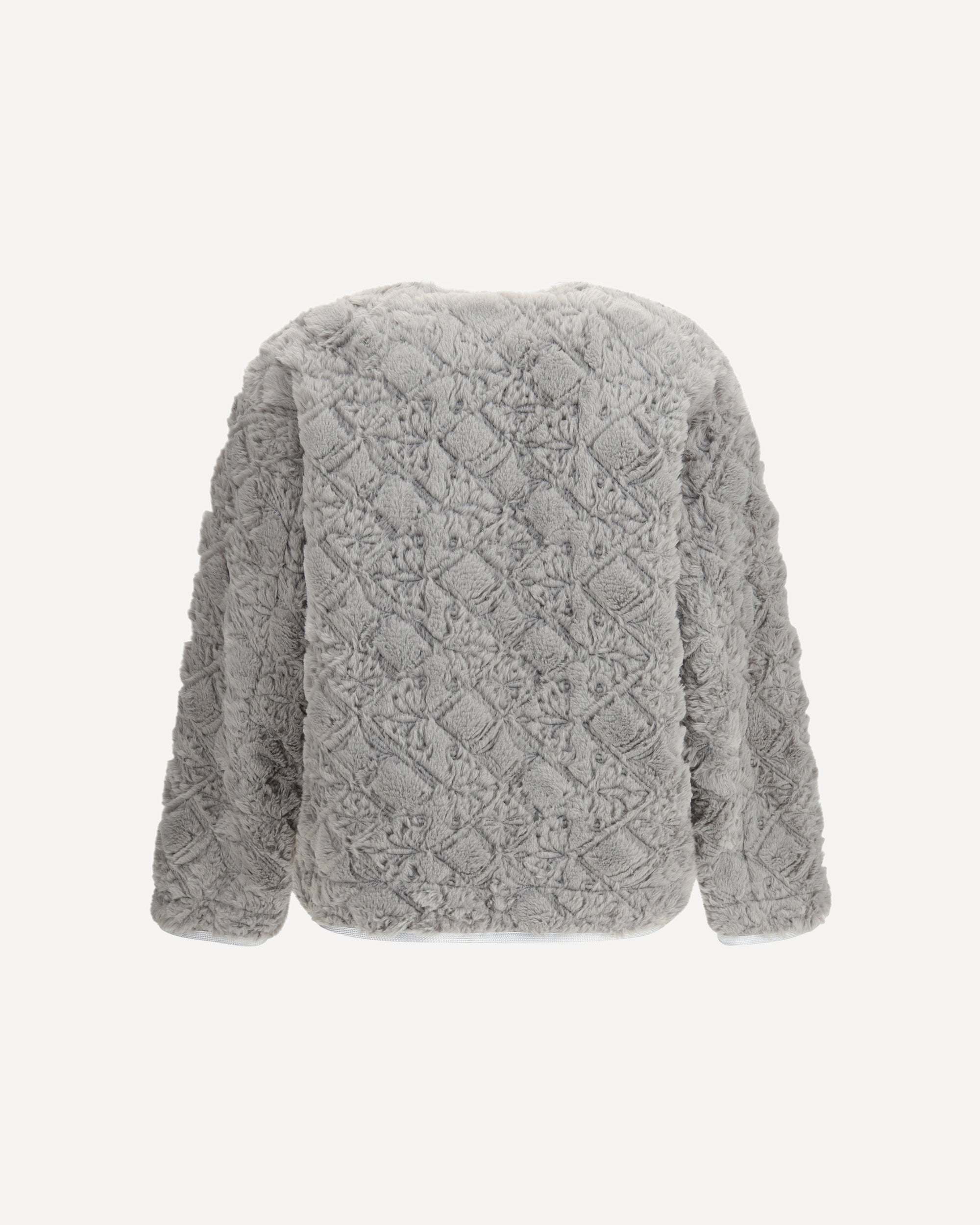 The faux fur Coat with Divine embroidery and toggles by Forte_Forte combines softness and craftsmanship in a refined, contemporary design. Delicate geometric embroideries made with glossy thread decorate the entire surface, creating subtle reflections that catch the light beautifully. The toggle fastening lends a retro charm, while the faux pocket and contrasting glossy ribbon trims introduce a casual, modern touch. Soft and fully lined, this piece embodies warmth and character with the distinctive elegance of the brand.