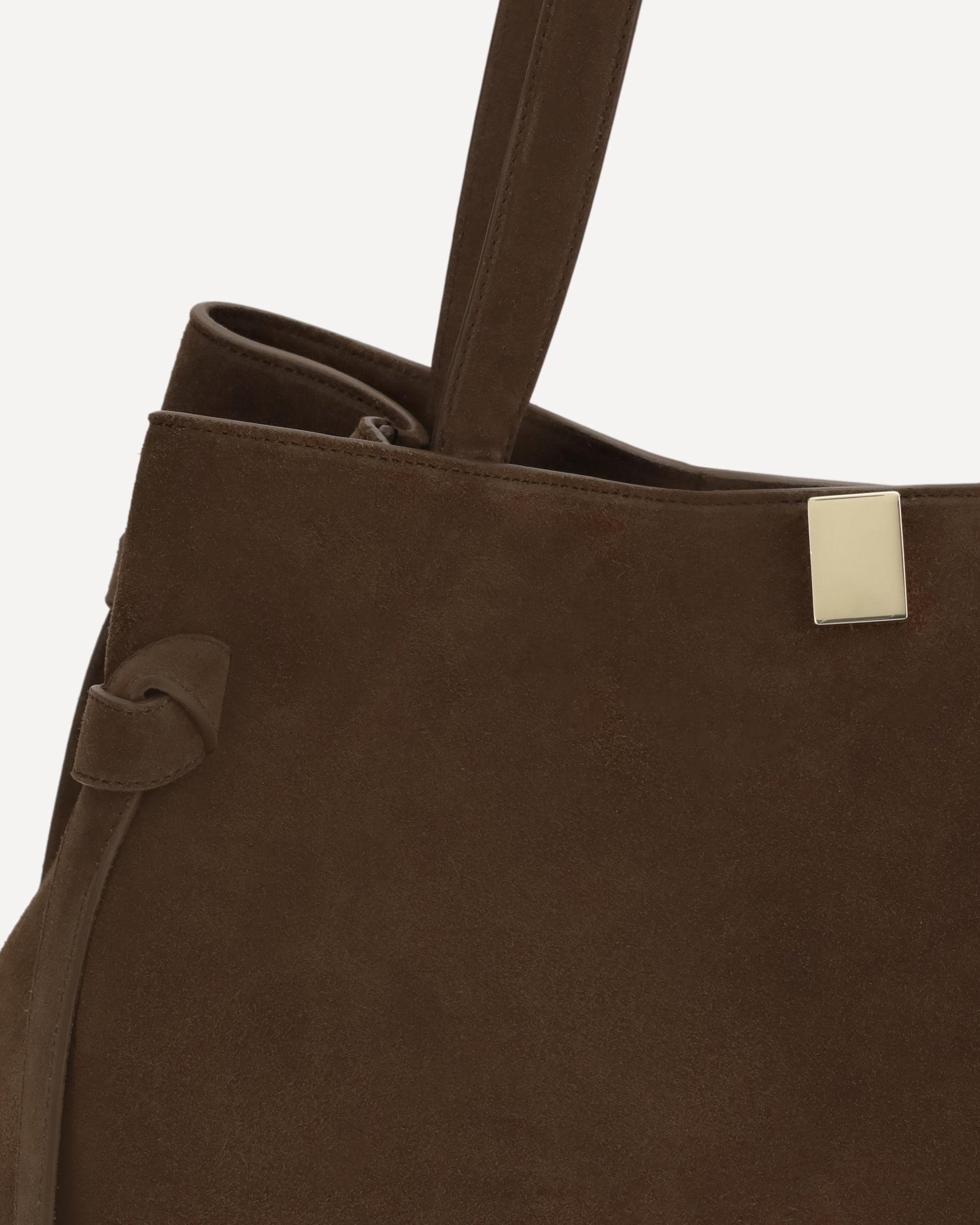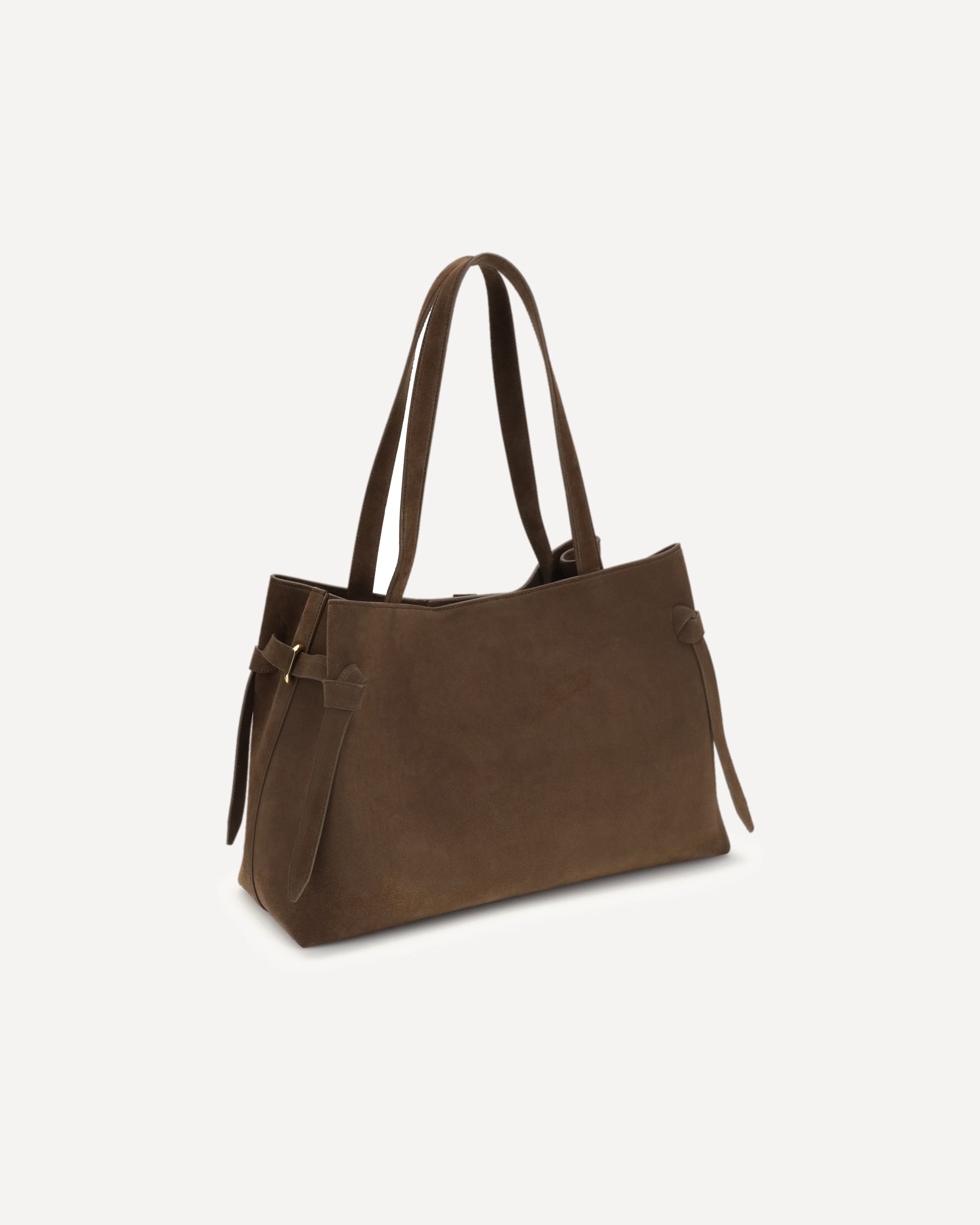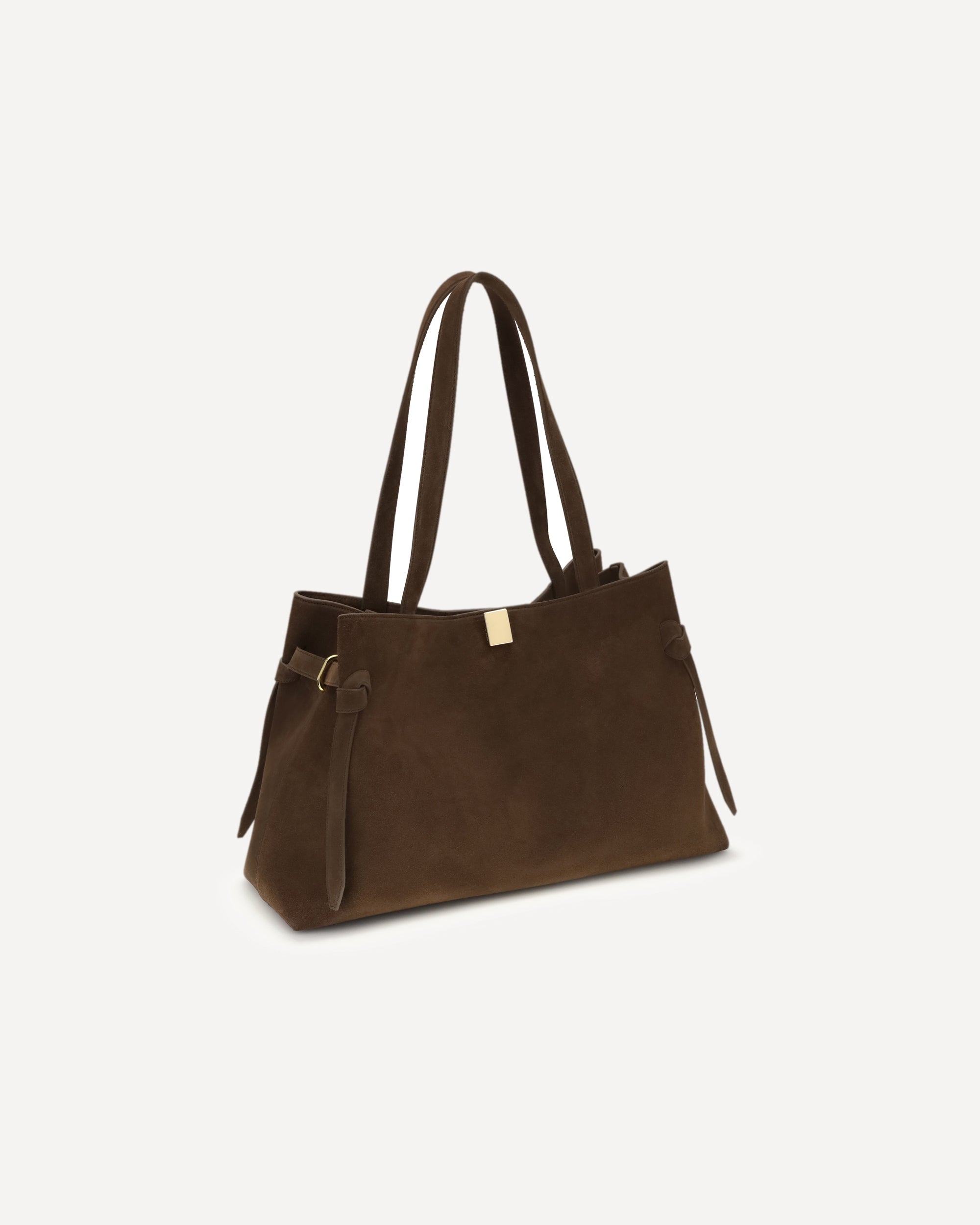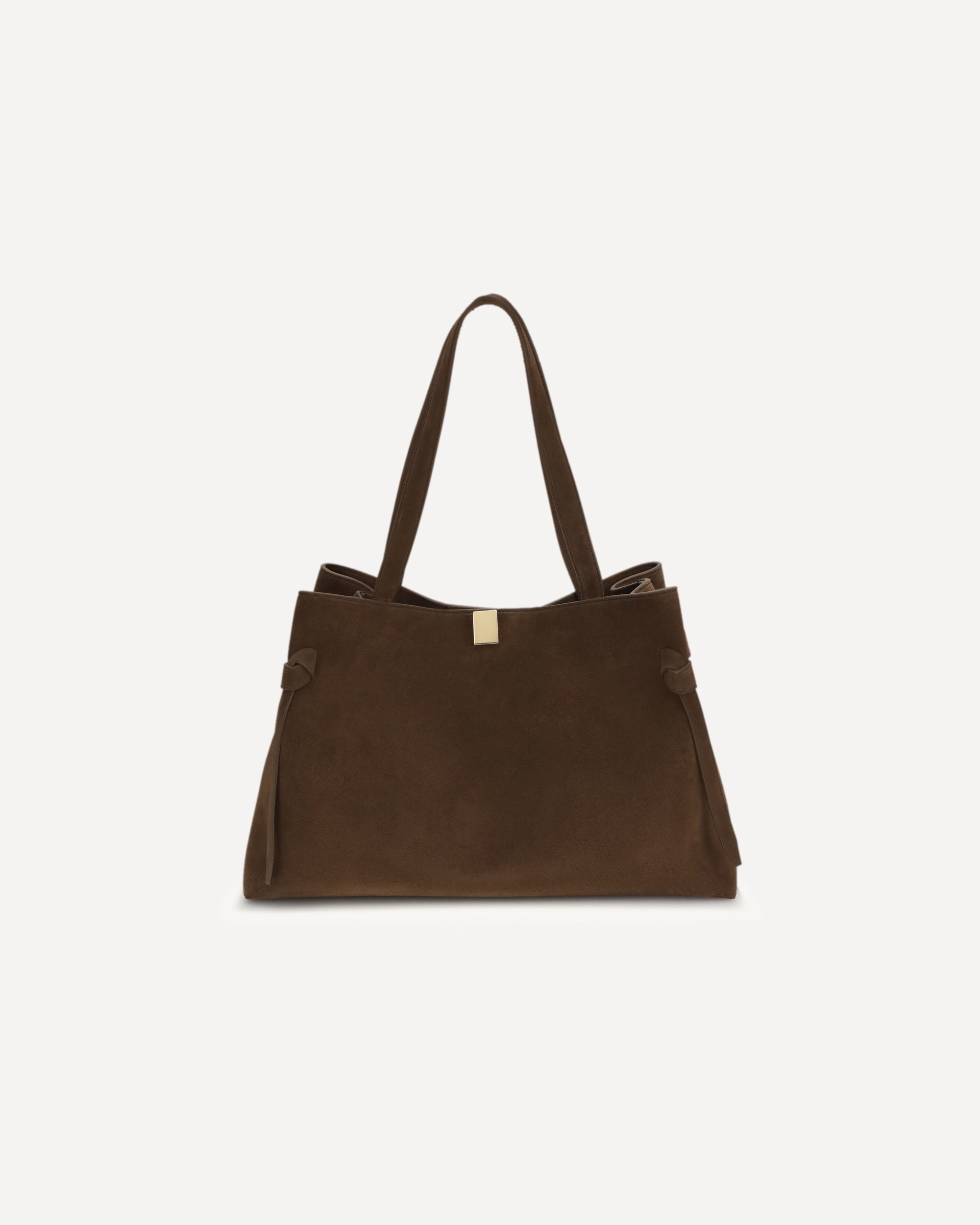 The Gyoza large Shoulder Bag is a stylish and versatile design that is ideal for both everyday life and travel. Made of suede leather, it features a sophisticated design and generous capacity. The magnetic closure, interior pouch pocket and gold-tone hardware trim add practicality and a touch of refined elegance.