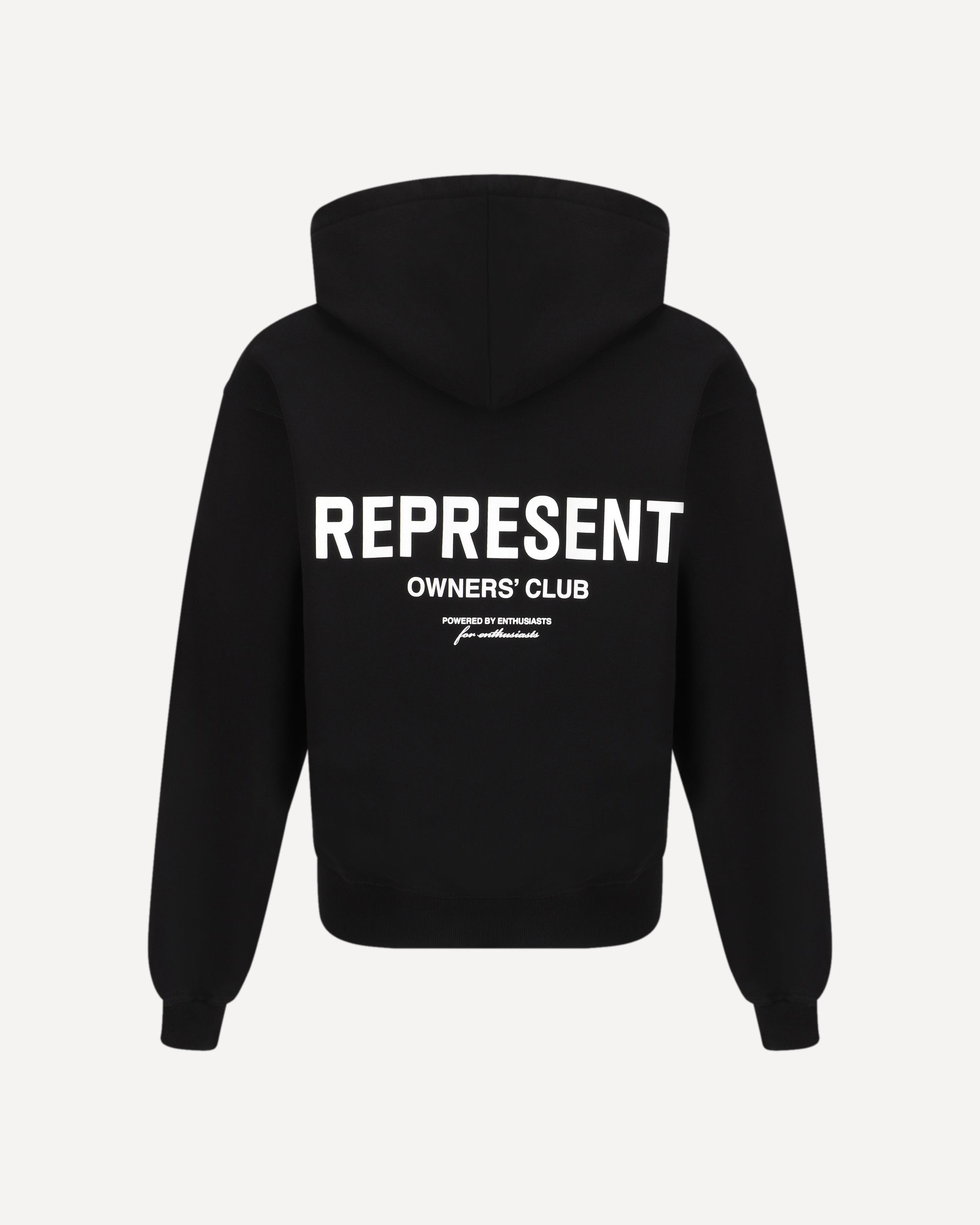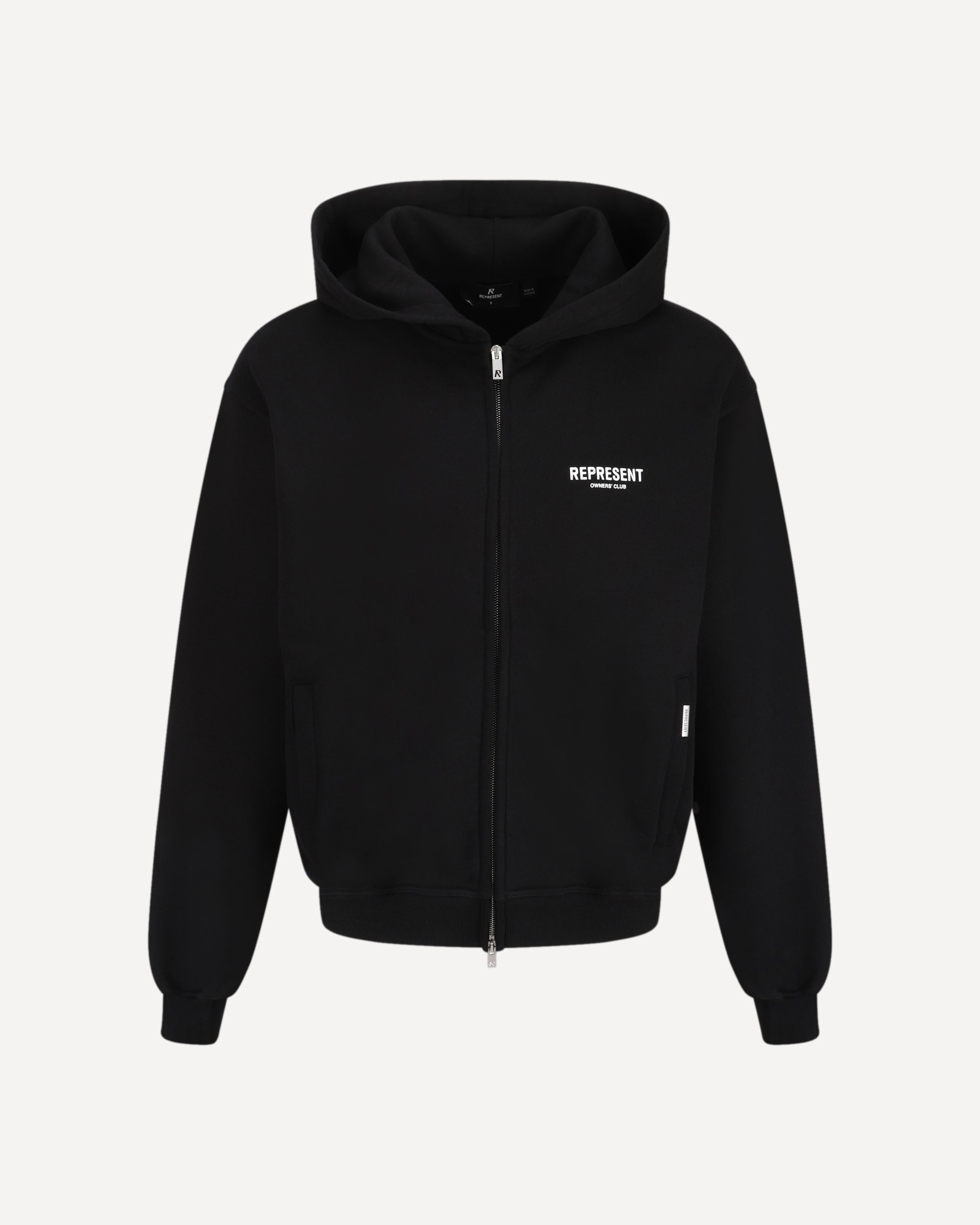 Cotton Hoodie by Represent, double-slider zipper closure, two front welt pockets with flaps, ribbed cuffs, ribbed hem, iconic brand monogram printed in contrast on front, iconic brand monogram printed in contrast on back, monochrome pattern, regular fit.