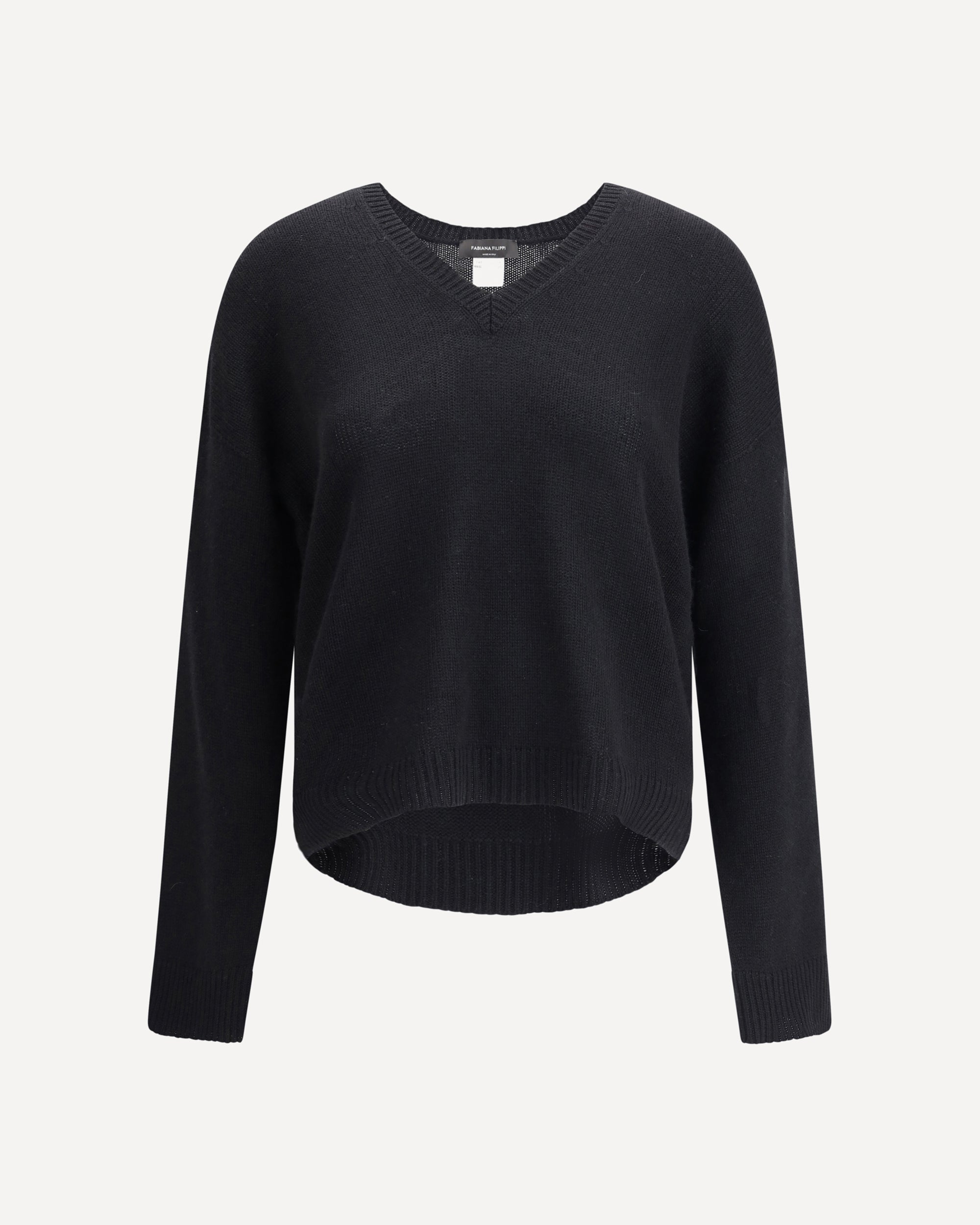 Fabiana Filippi's Cashmere Sweater features a ribbed V-neck, accompanied by a ribbed hem and cuffs, combining comfort and sophistication in a classic and elegant design.