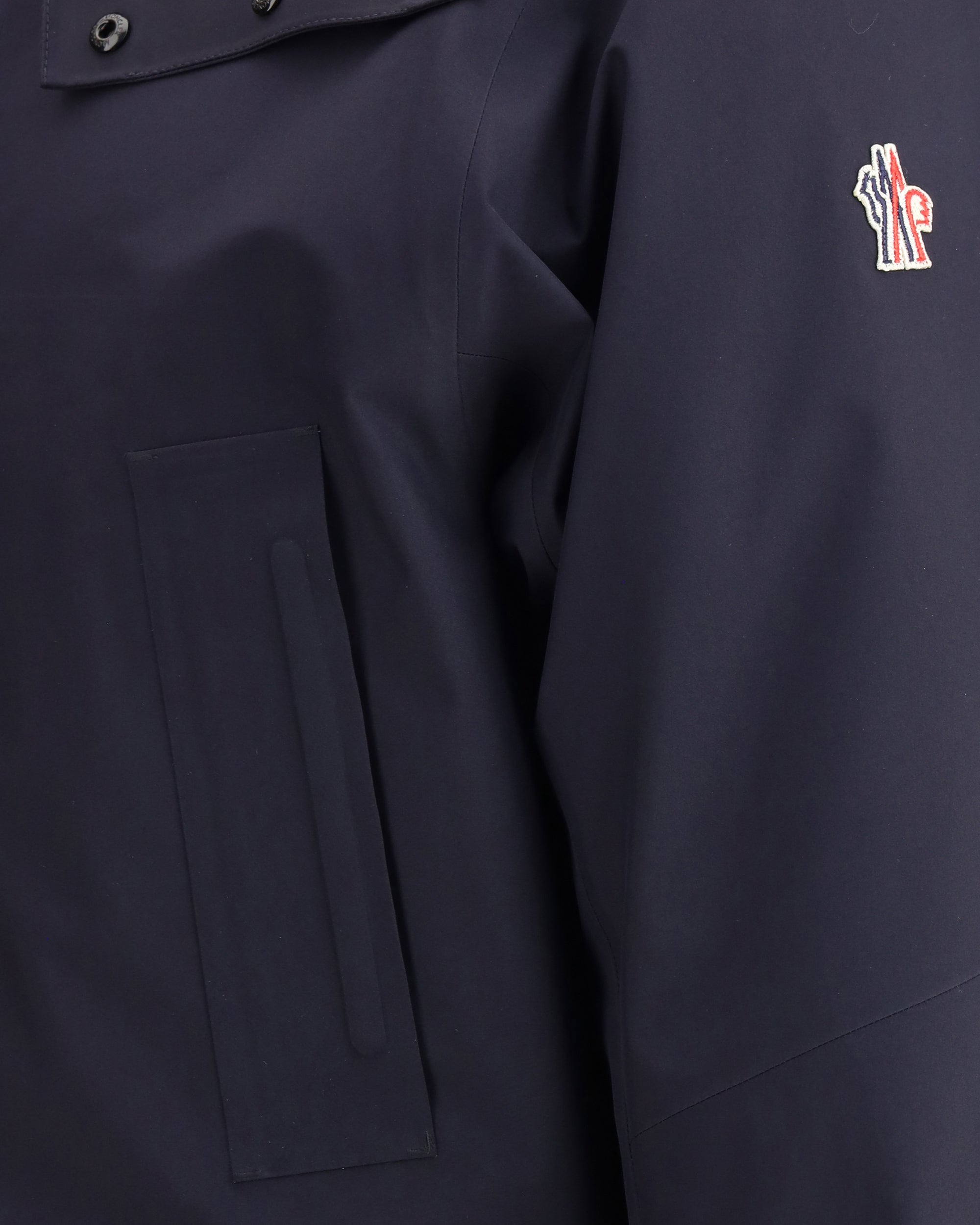 The Konza Jacket by Moncler is a lightweight, waterproof piece that blends functionality with refined design. Crafted from technical fabric, it features a stand collar with an adjustable drawstring hood, long sleeves with Velcro®-adjustable cuffs, and a concealed front closure with zipper and Gore-Tex® placket. The design is finished with welt chest pockets, front flap pockets, a straight hem, and the iconic logo patch on the sleeve.