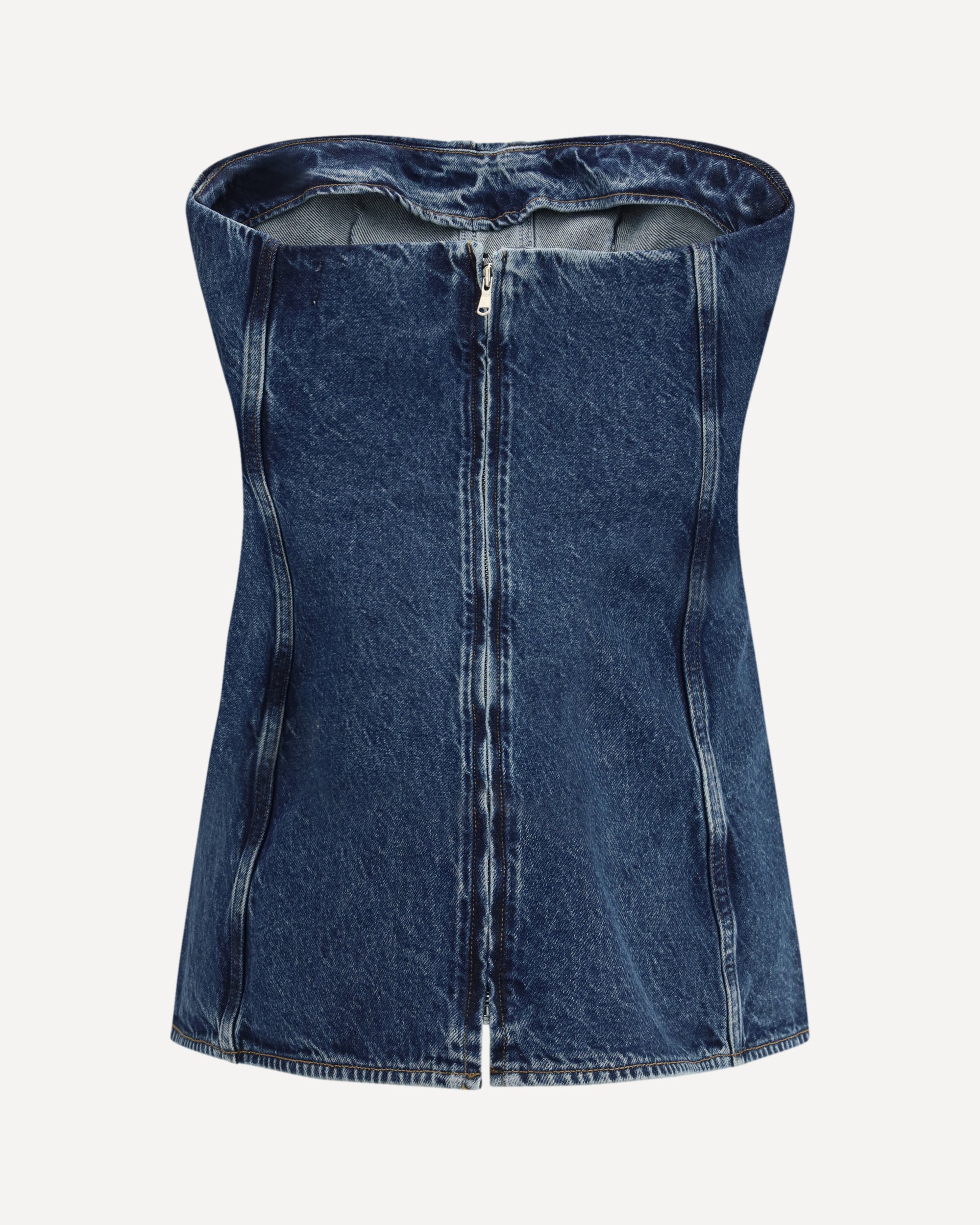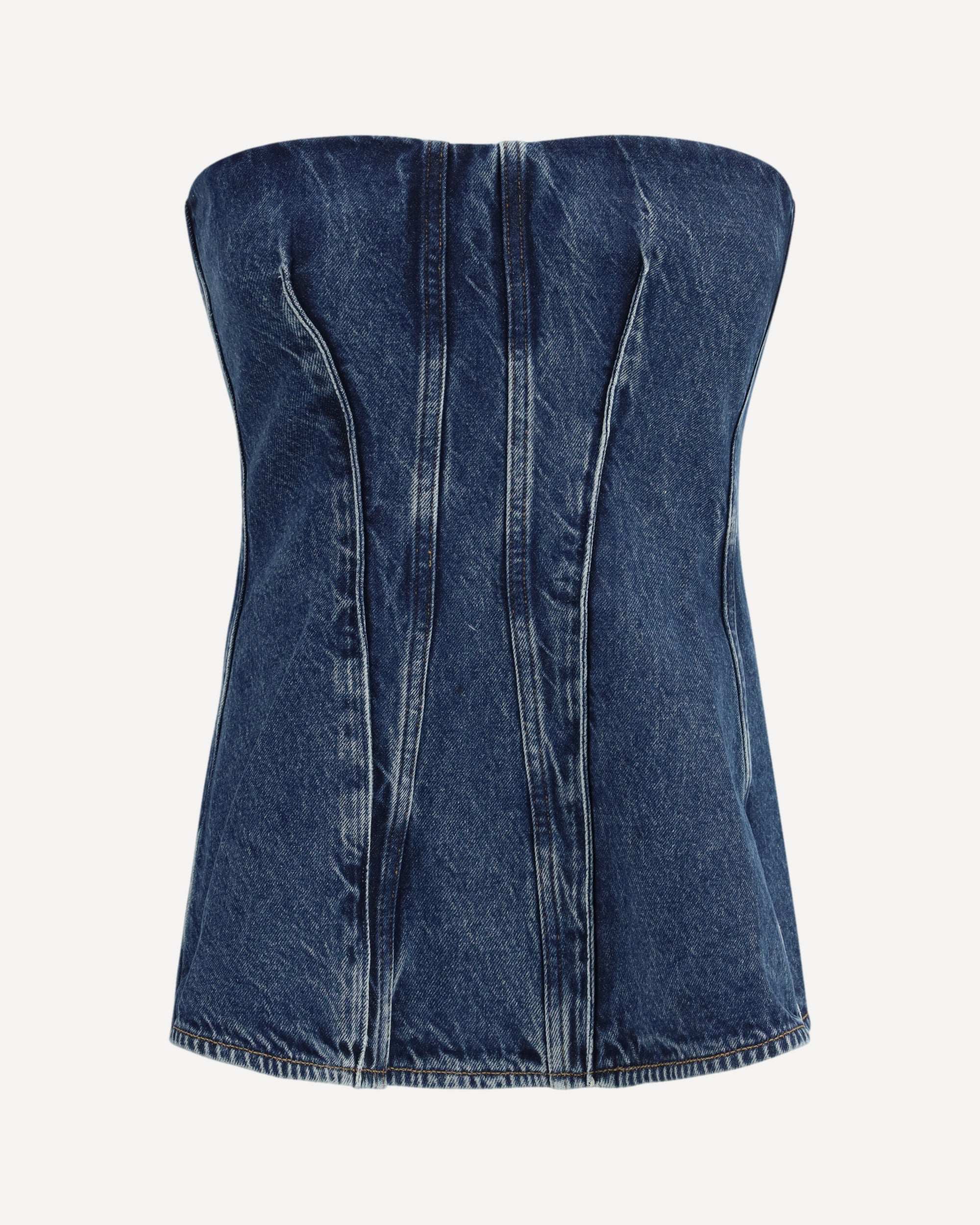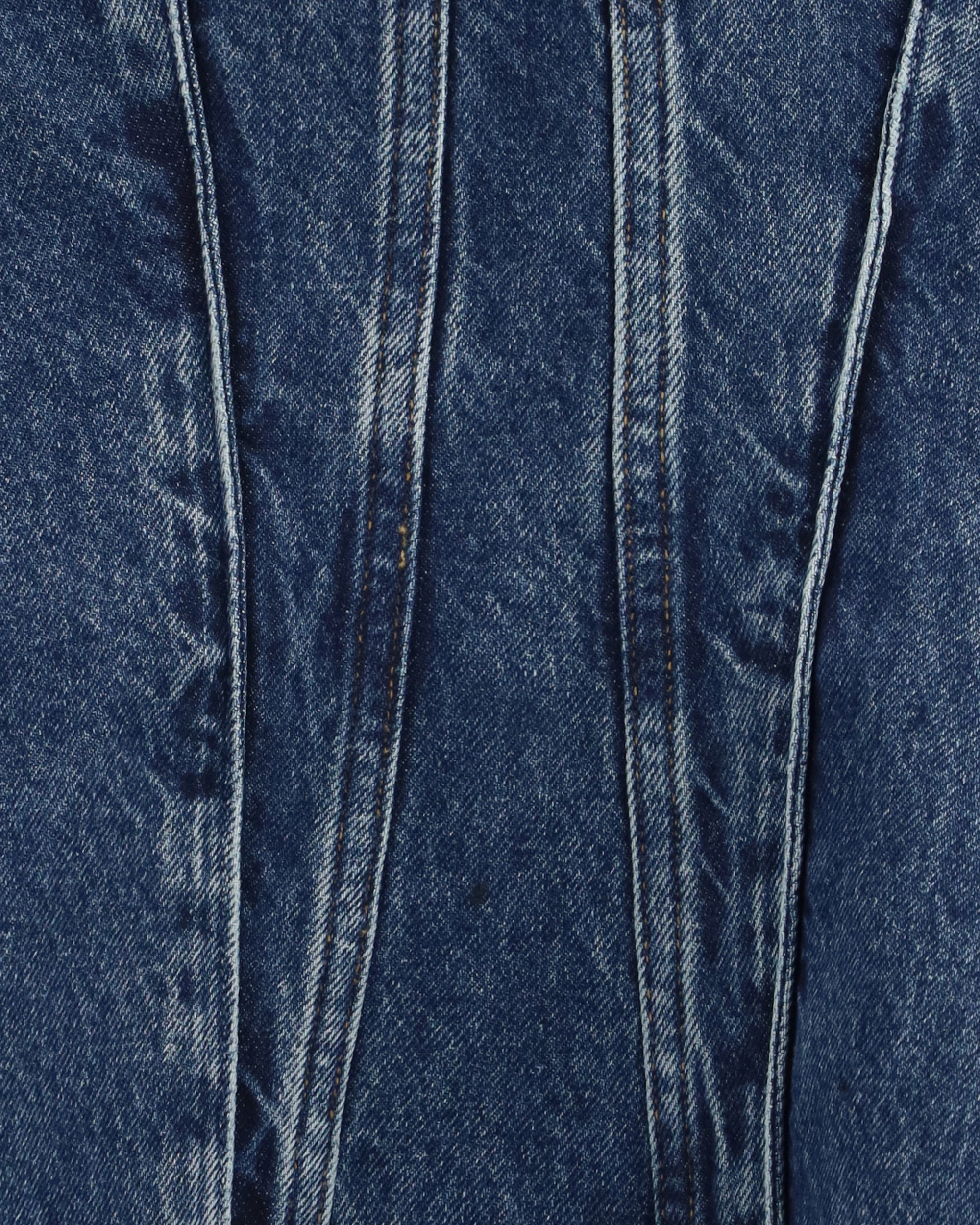 The Lara Corset by Agolde is a sleeveless denim corset top featuring a subtle A-line silhouette. Crafted from weightless regenerative cotton, it offers a soft, lived-in feel. Deep, almost-black marbling adds understated depth, making it perfect for layering or pairing with clean, tailored pieces.