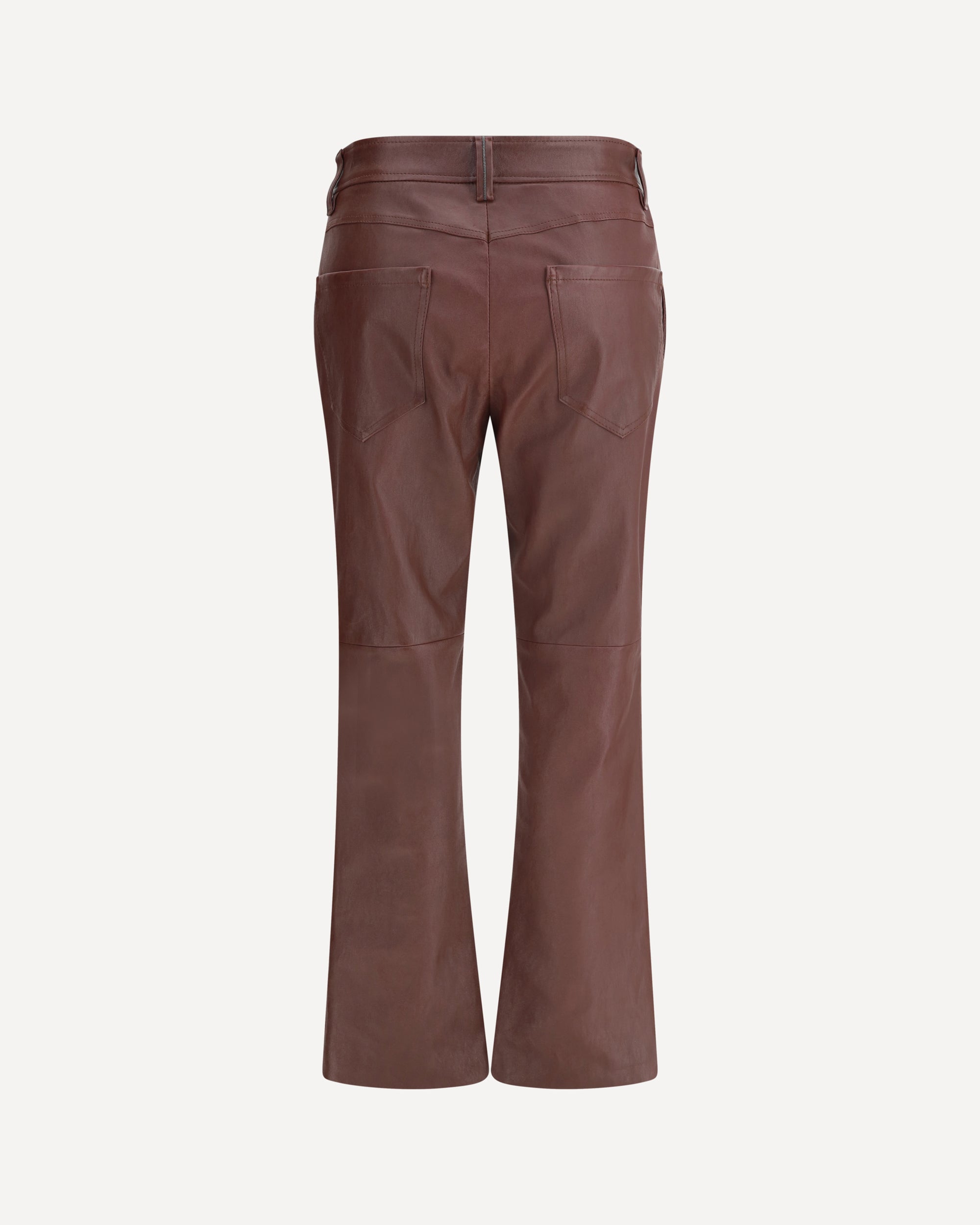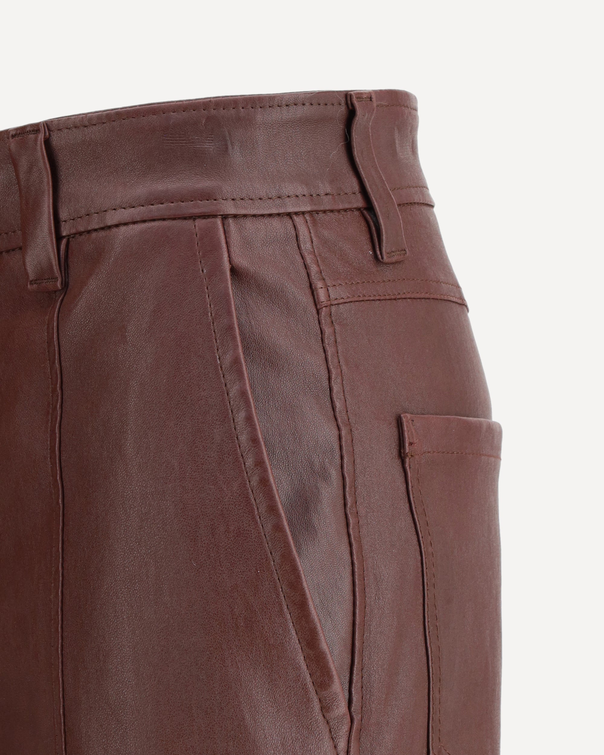 Brunello Cucinelli's leather Pants are a luxurious and sophisticated piece, featuring a mid-rise waist that offers comfort and a sleek silhouette. The front zipper-and-button closure ensures practicality and a perfect fit. The two side slash pockets and two welt patch pockets on the back add functionality and style. The paneled design lends structure to the garment, while waistband loops allow you to customize the fit.