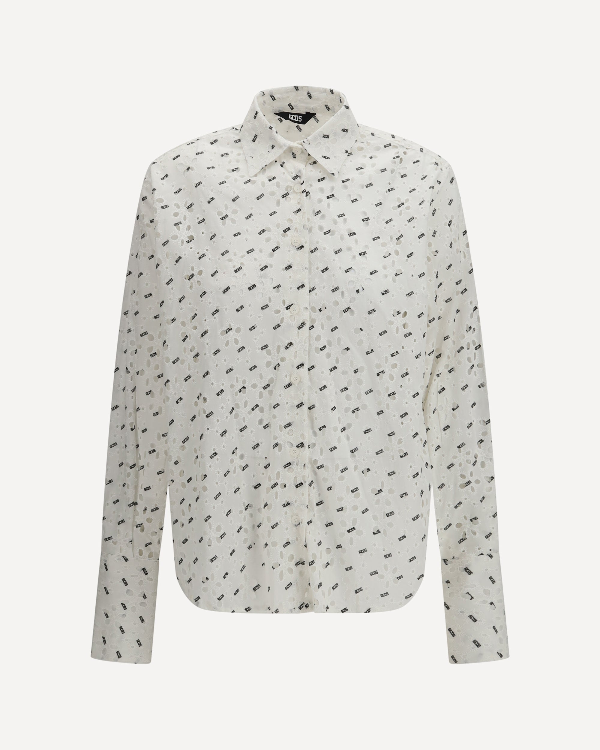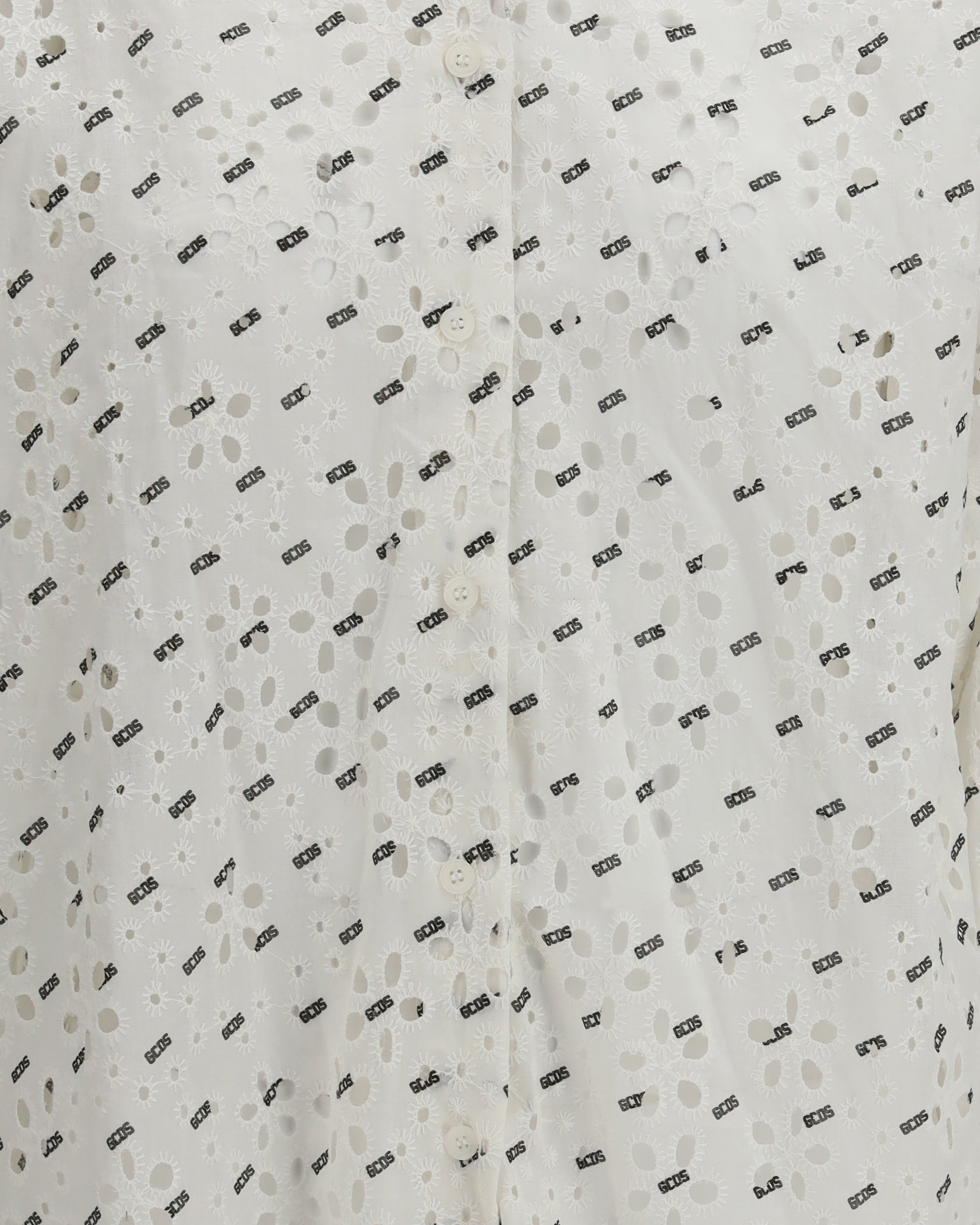 GCDSOversized Cotton Broderie Anglaise Shirt with all-over logo embroidery