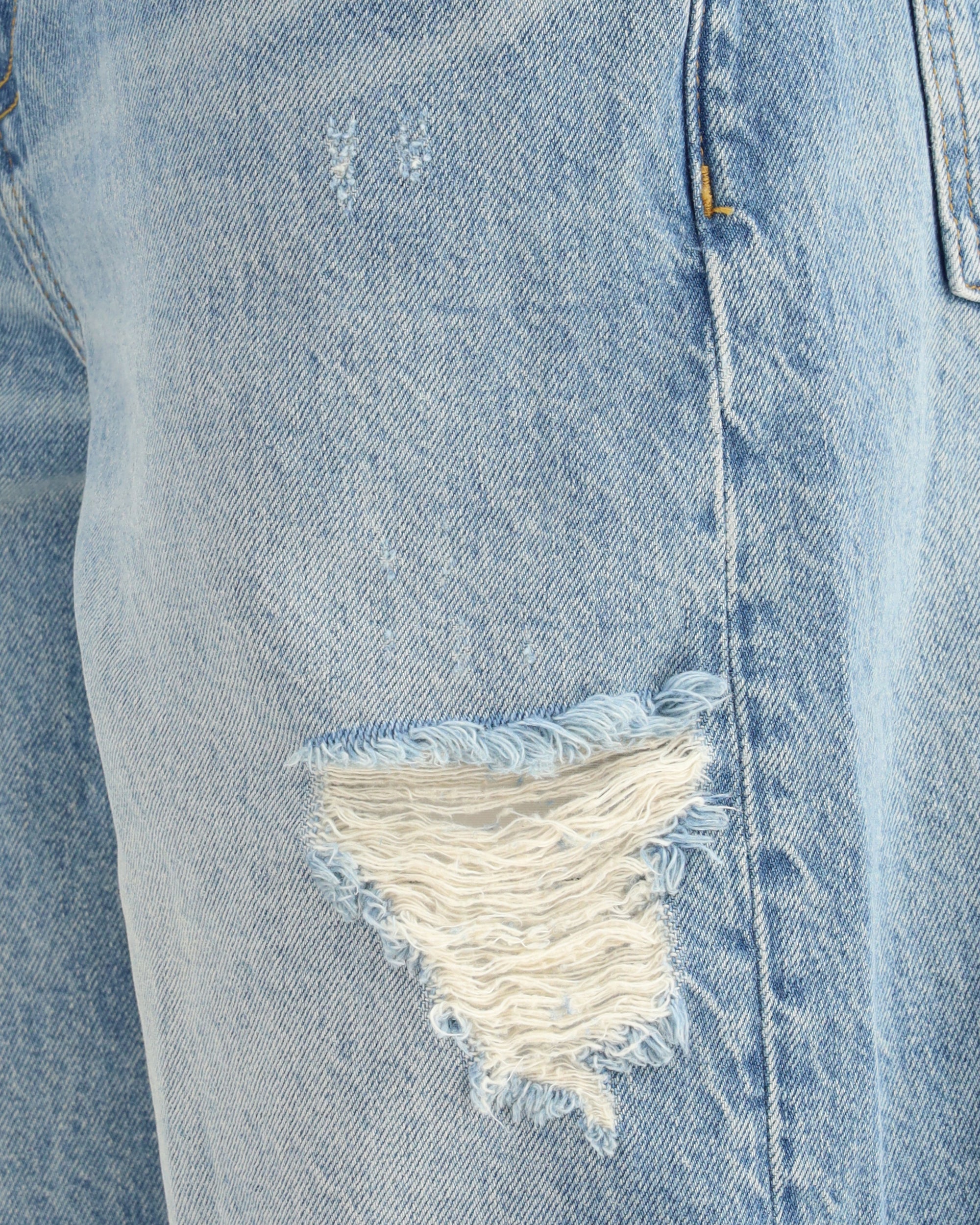 The cotton Lola Shorts by 7For are a denim-designed garment with vintage appeal. They present a five-pocket, typical denim style that offers practicality and classic style. The front closure features a zipper and buttons, while frayed hems add a touch of character and a worn effect. The vintage worn-effect design gives the shorts an authentic, on-trend look. A leather logo patch, applied on the back, completes the garment, adding a distinctive and recognizable detail of the brand. Perfect for a casual and contemporary look.