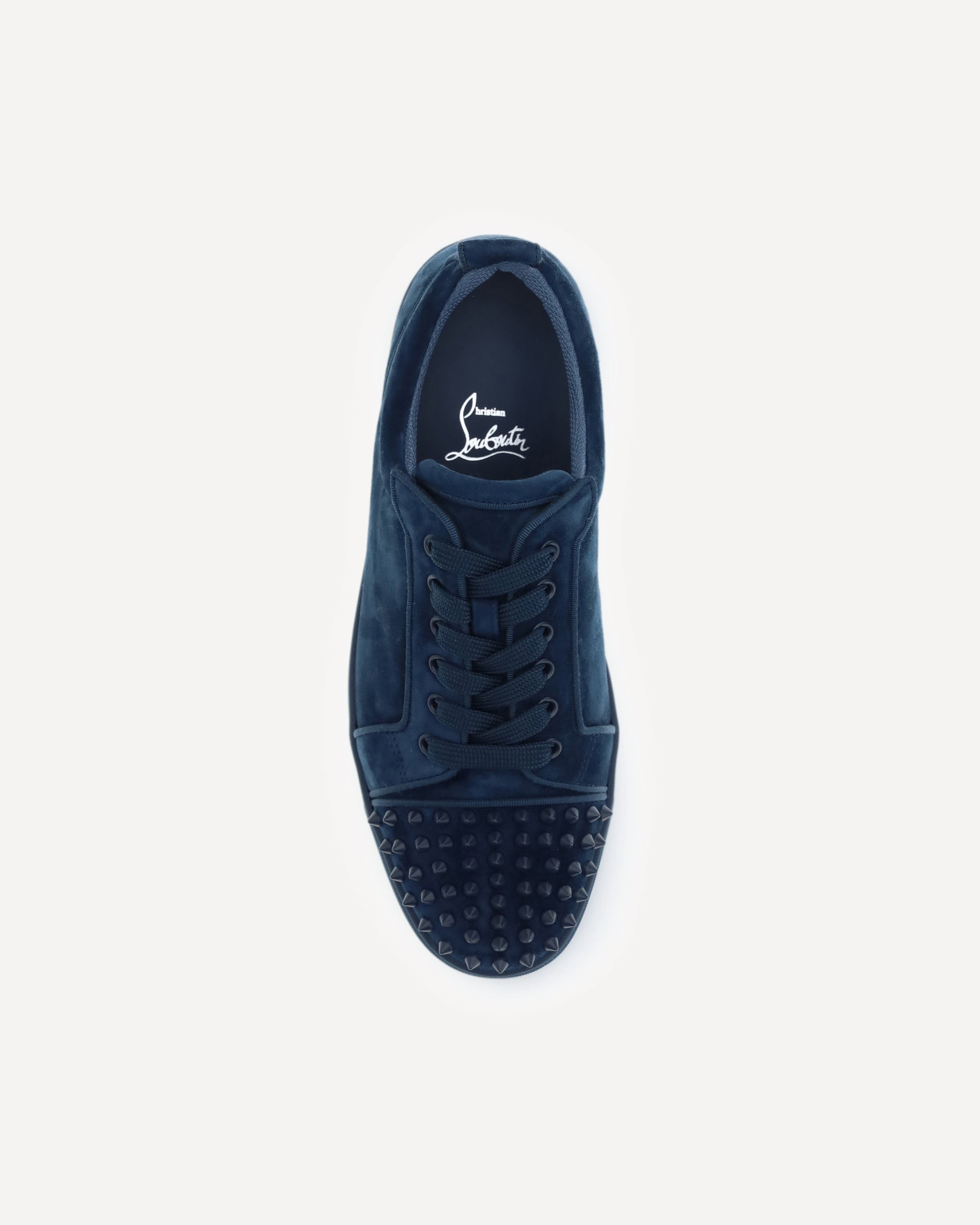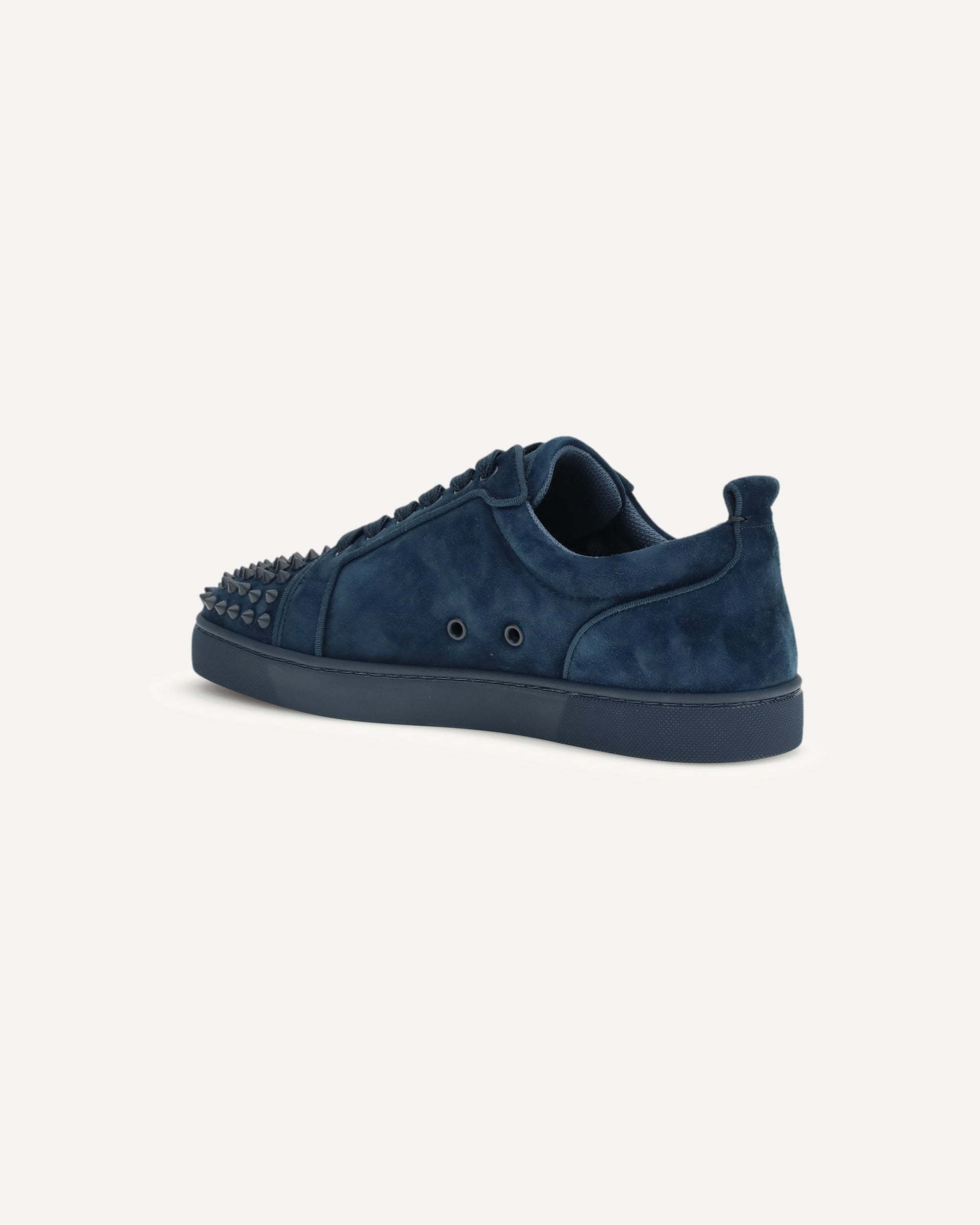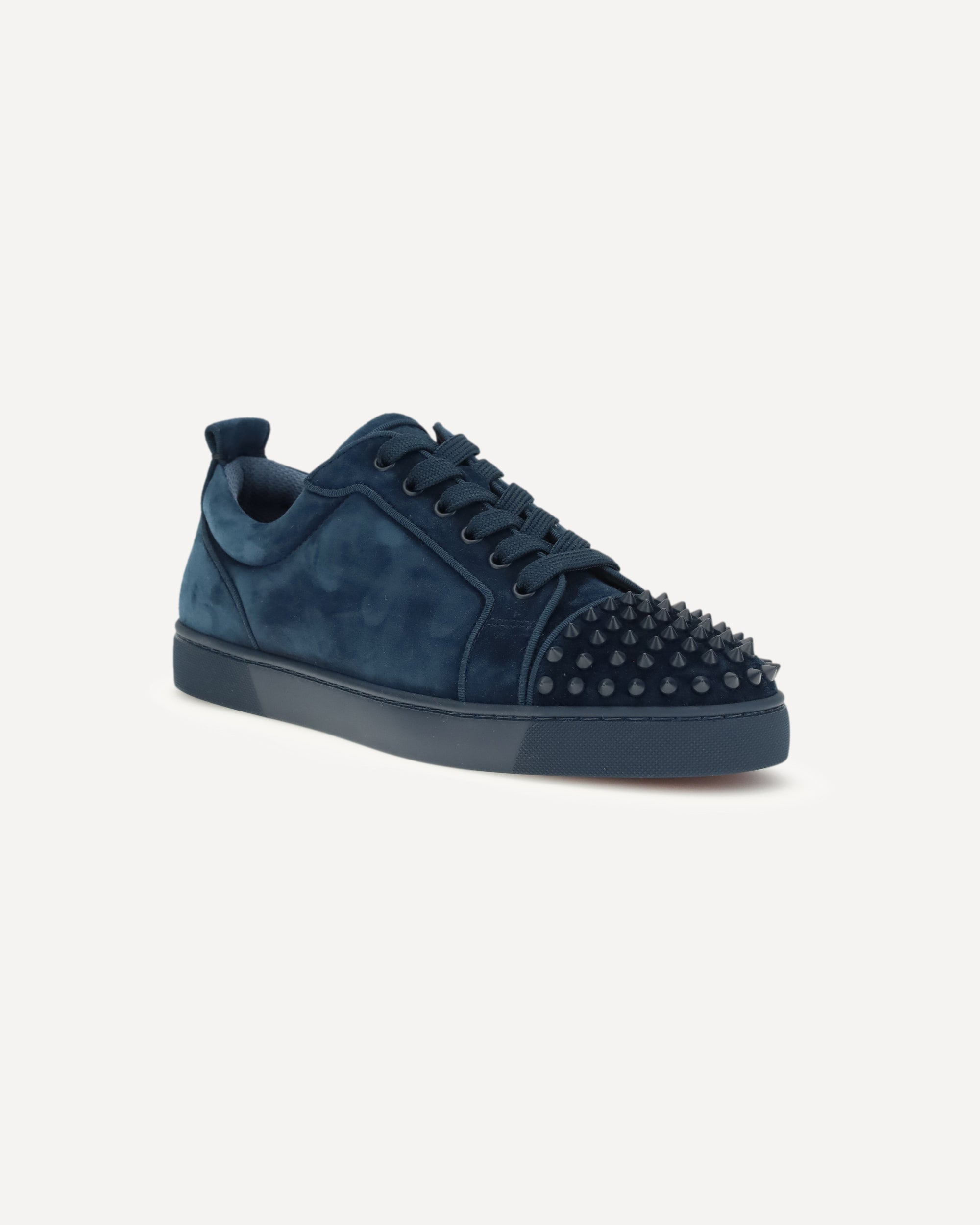 The Louis Junior Spikes Orlato leather Sneakers by Christian Louboutin combine boldness and luxury. The suede design is embellished with tone-on-tone studs on the toe, lending a touch of character and originality. The lace-up front closure and flat sole ensure comfort and practicality, while the round toe offers a comfortable and versatile fit. The branded insole adds a distinctive detail. Perfect for those seeking a casual yet sophisticated look, these sneakers embody the spirit of Christian Louboutin with a rock-chic accent.