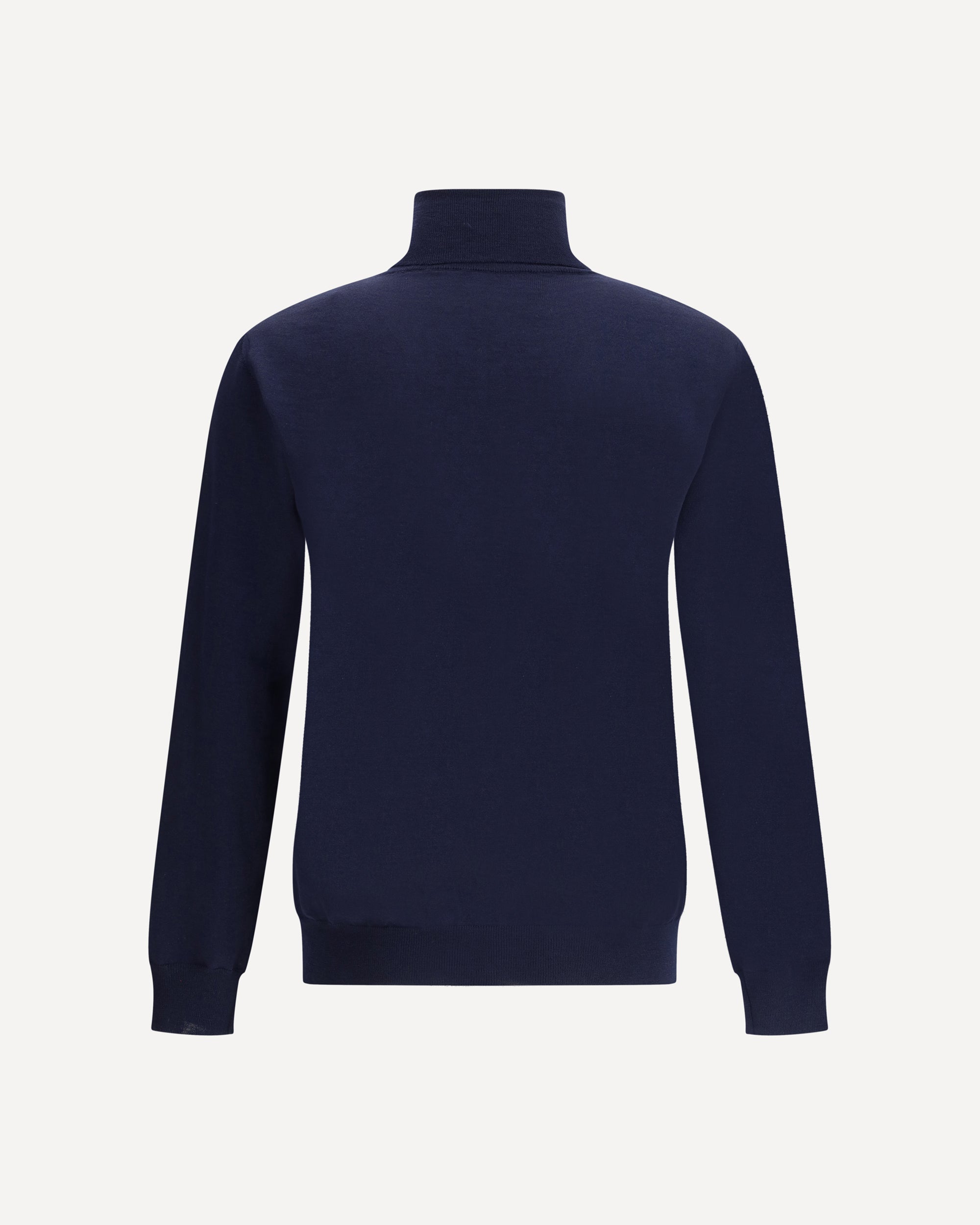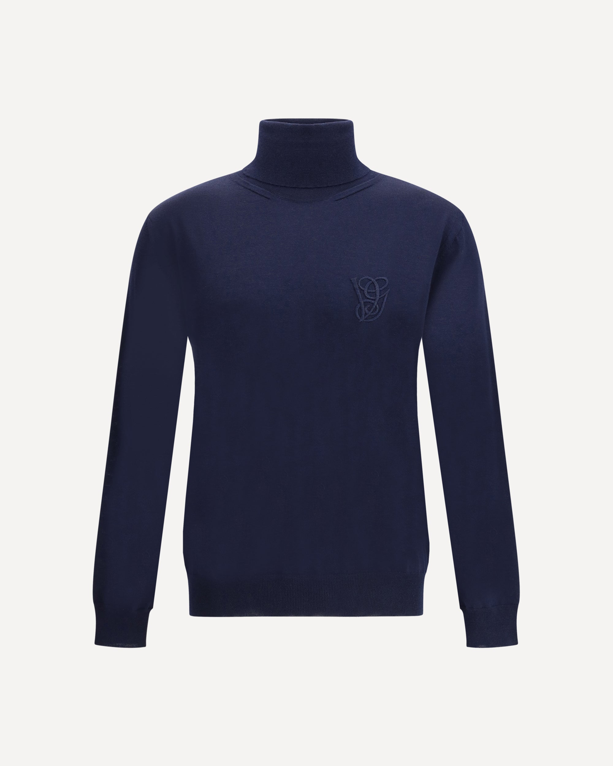 Turtleneck Sweater in virgin wool by Valentino, with a soft high collar that can be turned up at will. The ribbed cuffs and hem ensure a snug and comfortable fit. The front is enriched by the iconic tone-on-tone embroidered logo, for a touch of discreet elegance.