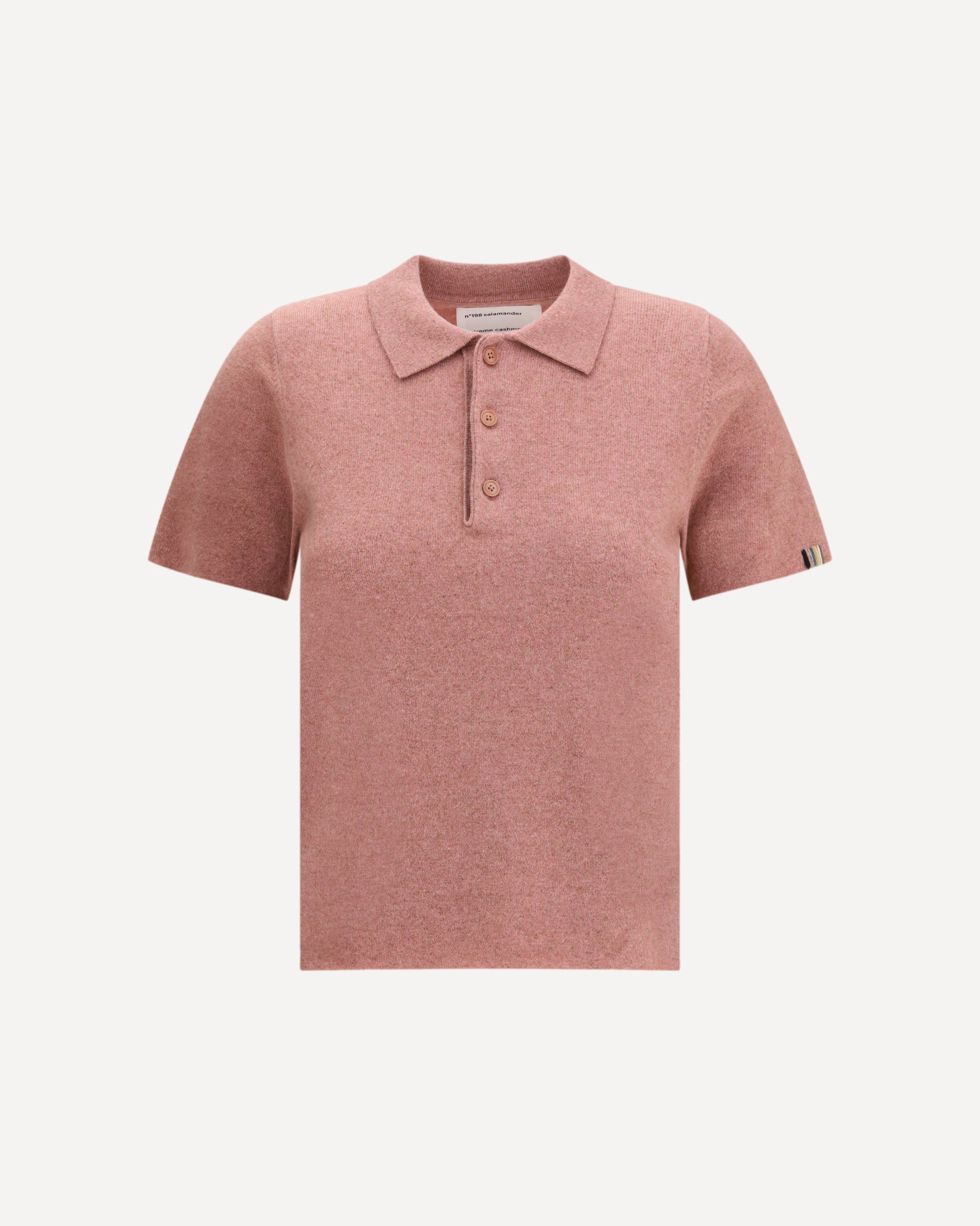 The n°198 Salamander by Extreme Cashmere is a refined cashmere polo sweater designed in a petite fit, ideal for smaller frames. Its short sleeves and clean, understated lines highlight the brand’s minimalist aesthetic. The design features a polished polo collar with three corozo buttons, raw-cut cuffs and hem, and two subtle side slits that add comfort and movement while preserving its elegant simplicity.
