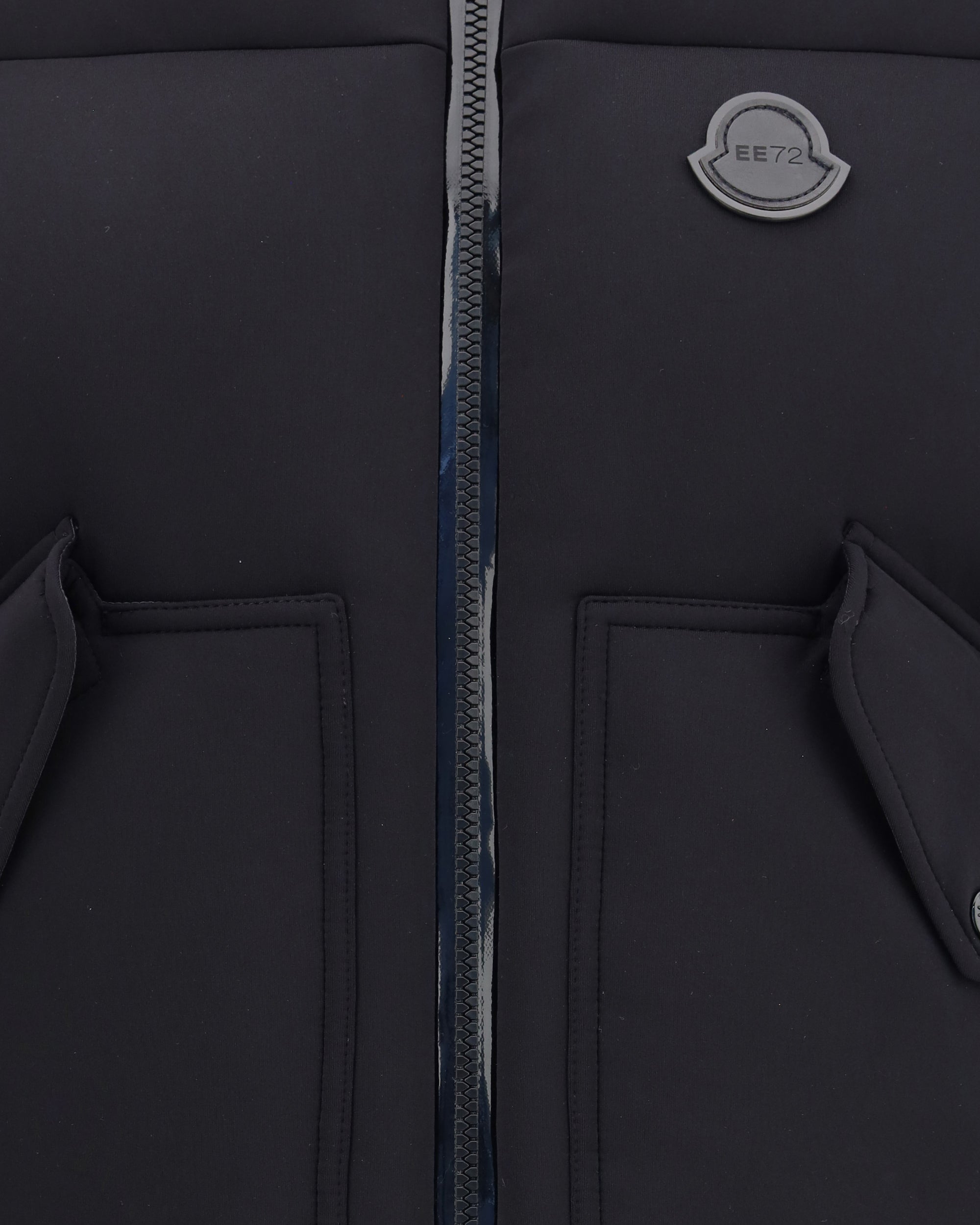 The Otis Padded Gilet from Moncler x EE72 by Edward Enninful blends style with functionality. Made from stretch cotton-blend technical jersey and nylon with a nylon laqué lining, it offers a lightweight yet durable structure. The padded design ensures warmth and comfort, while the zip closure and side vents with snap buttons add practicality. Snap-button pockets and a drawstring hem complete the look, finished with the iconic logo patch, a signature detail of Moncler Genius.