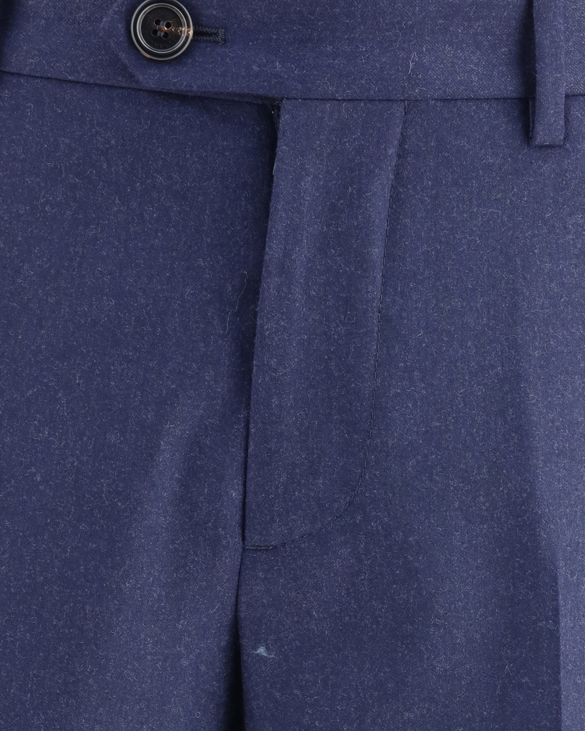Fleece Wool Pants by Brunello Cucinelli, front closure by hook-and-eye zipper and button, waistband loops, two side slash pockets, monochrome design, two welt pockets with button closure applied at back.