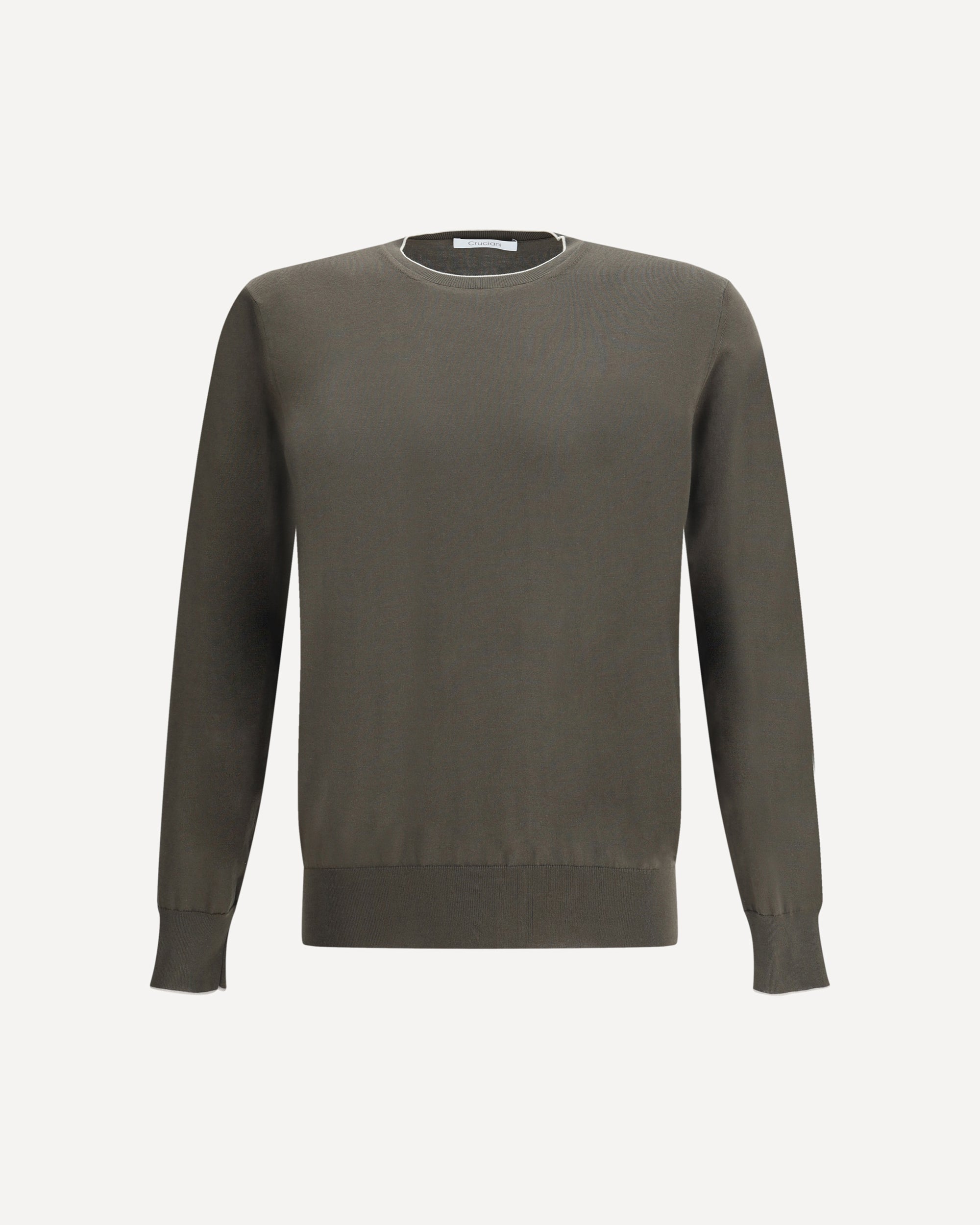 Cruciani's cotton Sweater expresses understated elegance through essential workmanship and thoughtful details. Made of pure cotton, it features a monochrome pattern enhanced by ribbed trim on the crew neck, cuffs and hem. The contrasting ribbed crew neck adds a distinctive touch to a garment perfect for everyday elegance between classic style and modern comfort.