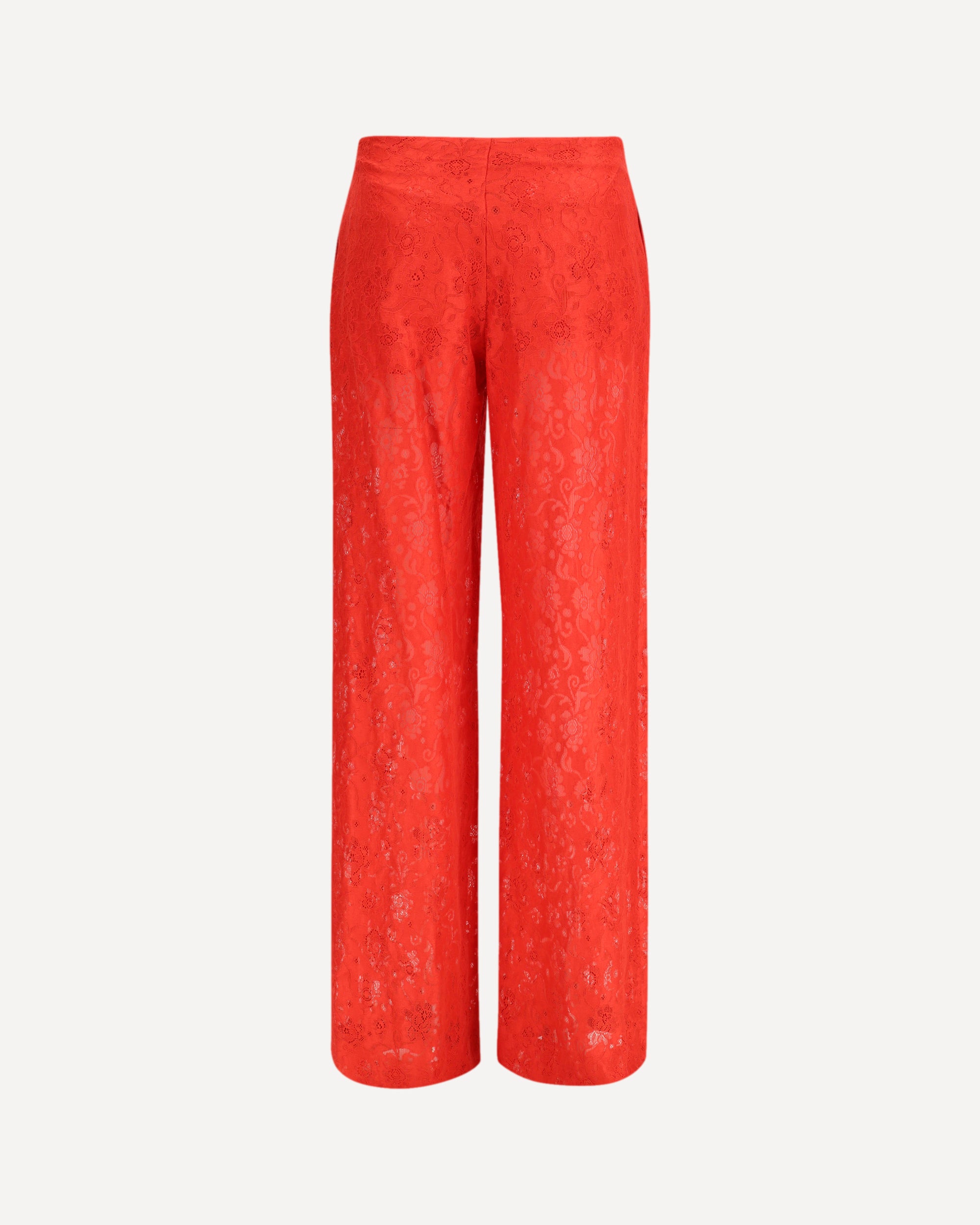 The sheer Trousers by Ermanno Scervino embody a refined and sensual aesthetic, balancing lightness with thoughtful construction. The lace-effect workmanship creates an elegant play of transparency, complemented by a shorter underlayer that ensures coverage and wearability. The silhouette is finished with a drawstring waist that adjusts the fit effortlessly, without zippers or buttons, preserving a clean and fluid line. A striking editorial piece designed for a modern, sophisticated wardrobe.