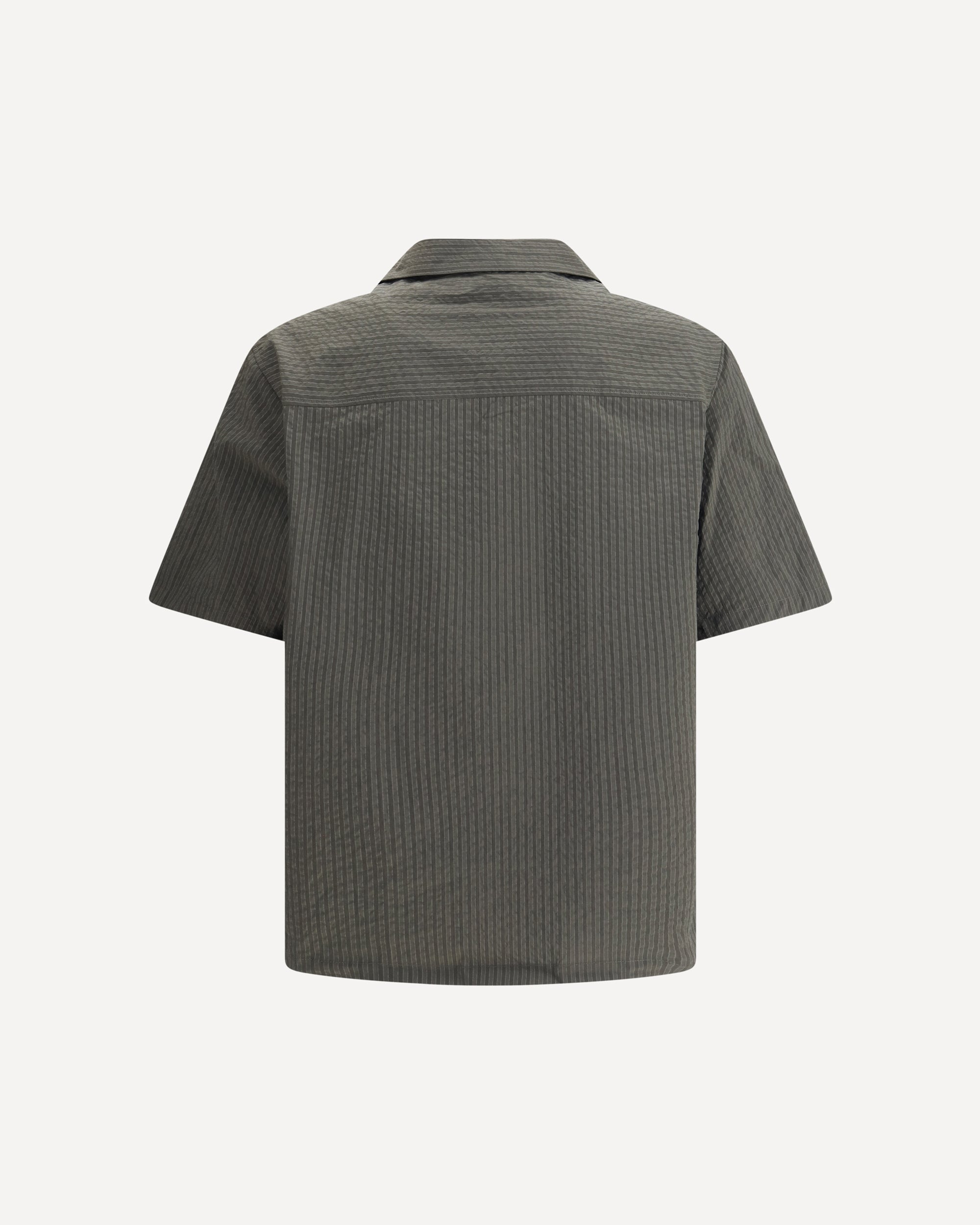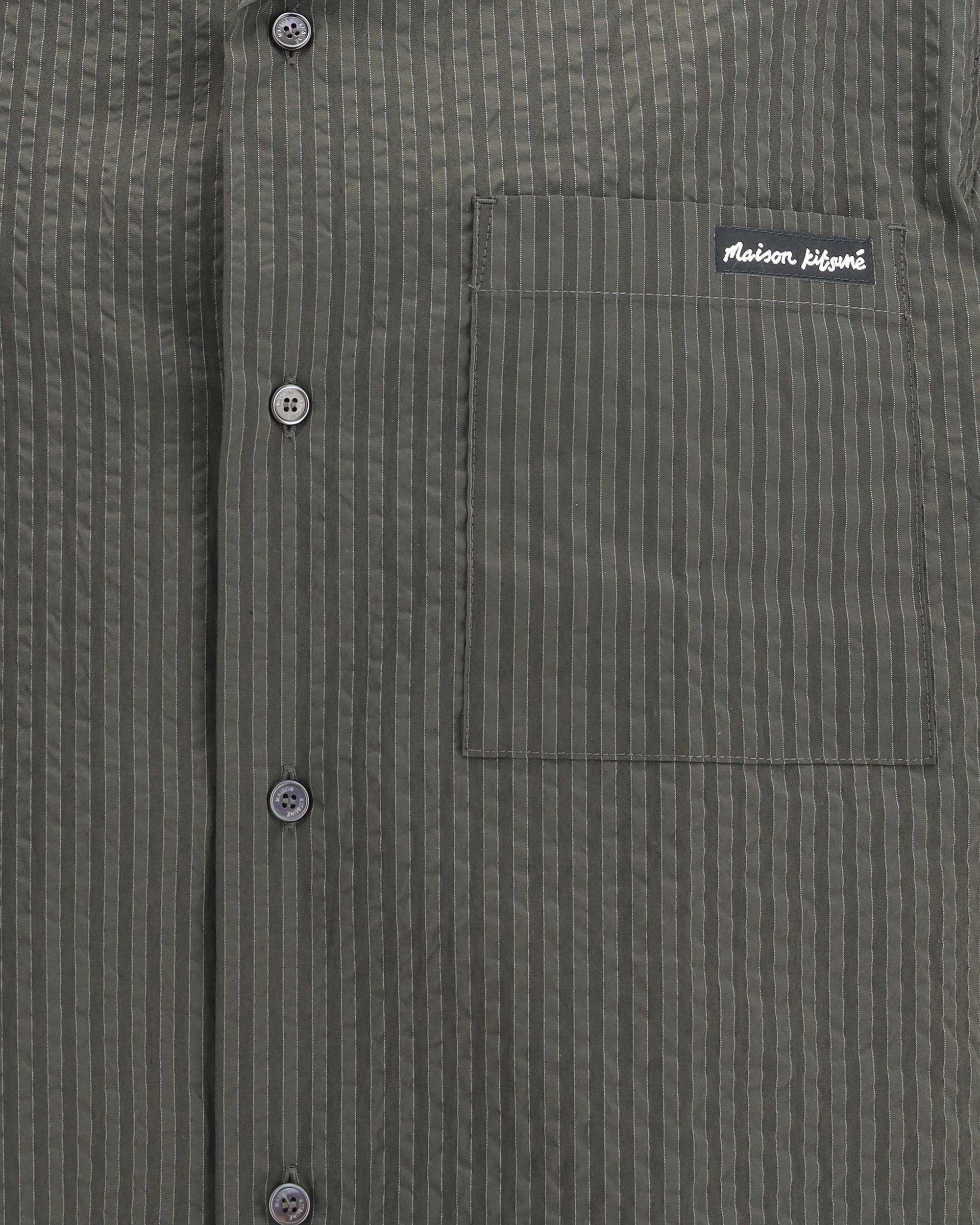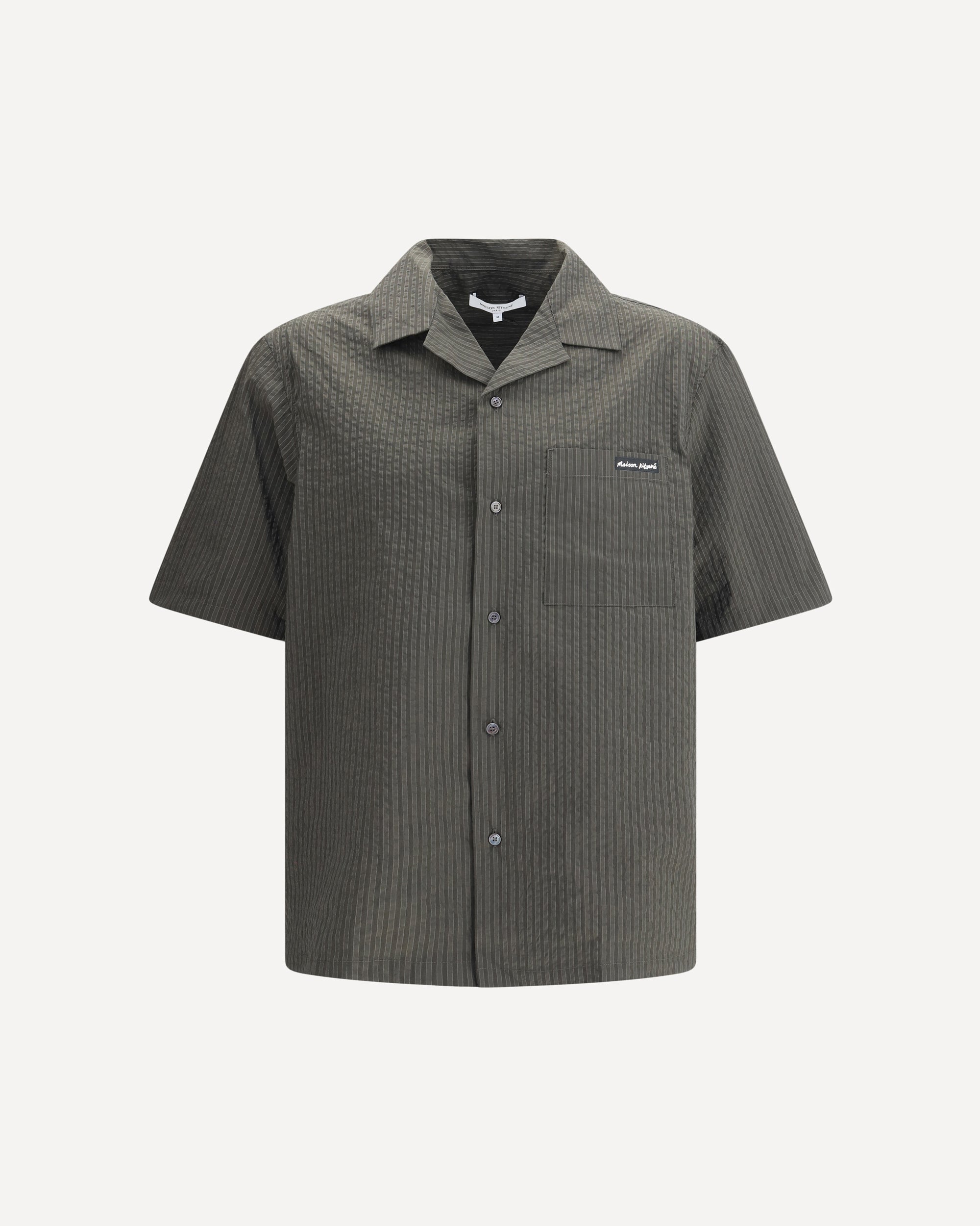 Resort Shirt by Maison Kitsuné, a summer garment with a fresh and sophisticated style. The short-sleeved design is embellished with a Cuban collar and a front button closure. The patch welt pocket on the chest features the brand's iconic monogram, adding a distinctive detail. The striped pattern lends a dynamic and versatile touch, perfect for casual and relaxed looks.